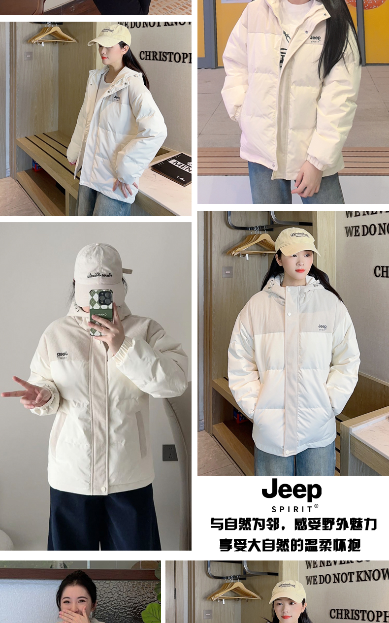 JEEP羽絨服女冬季2025新款連帽小個子短款女士加厚鴨絨保暖外套
