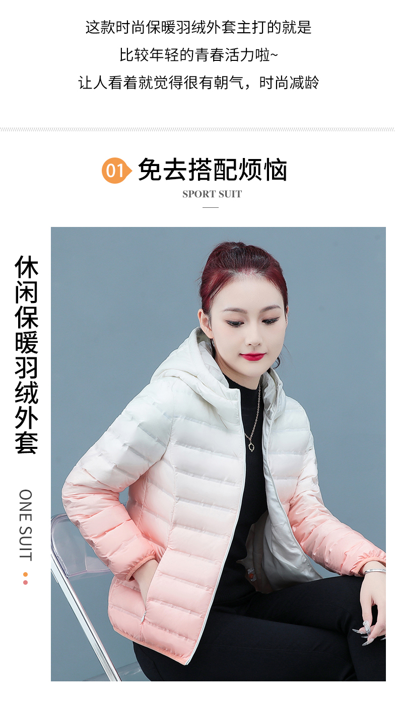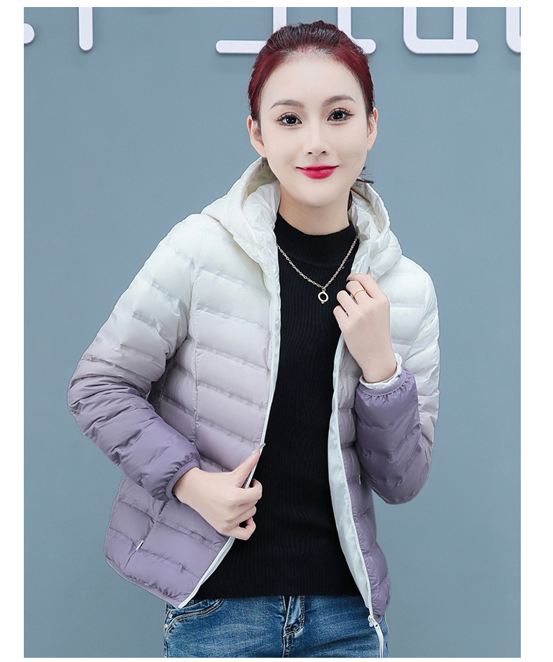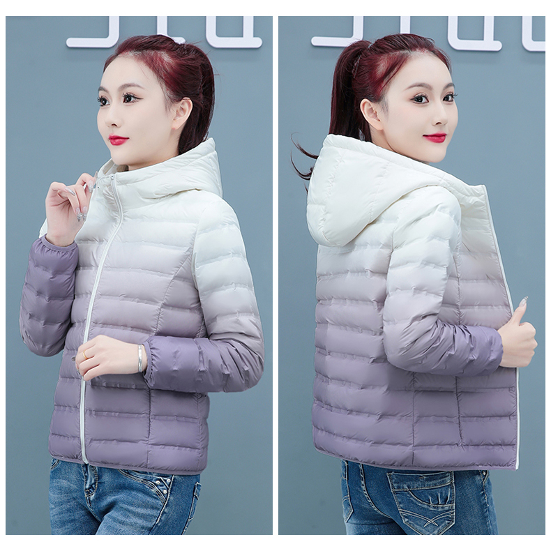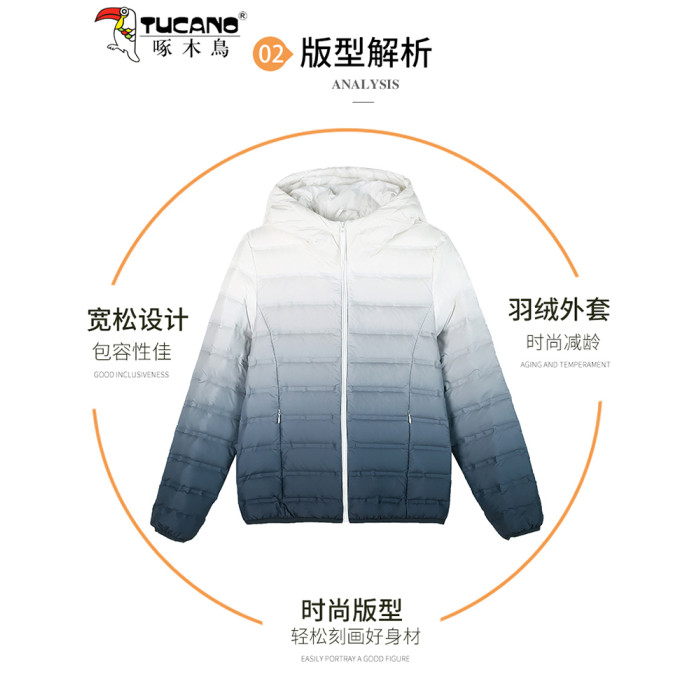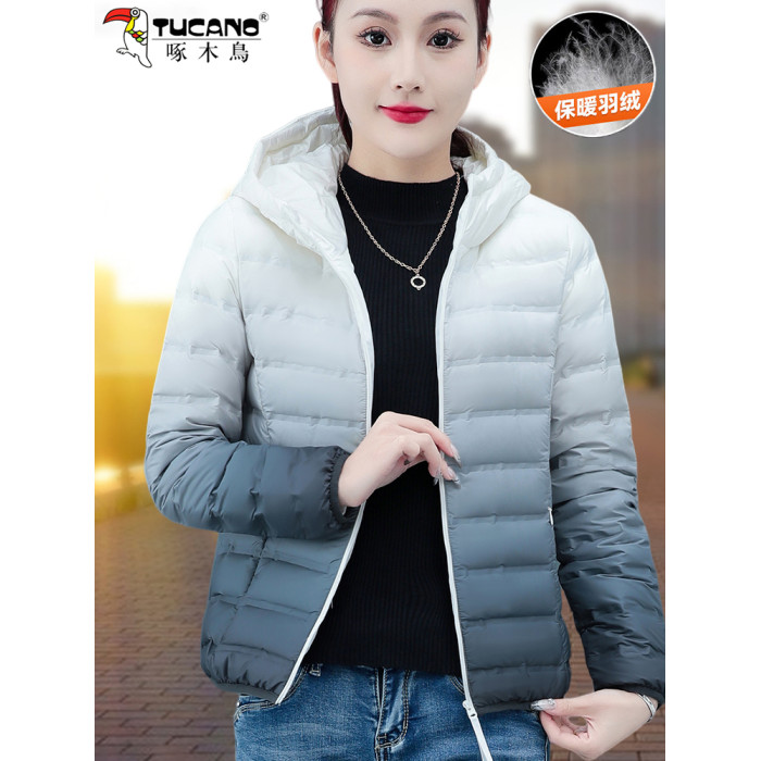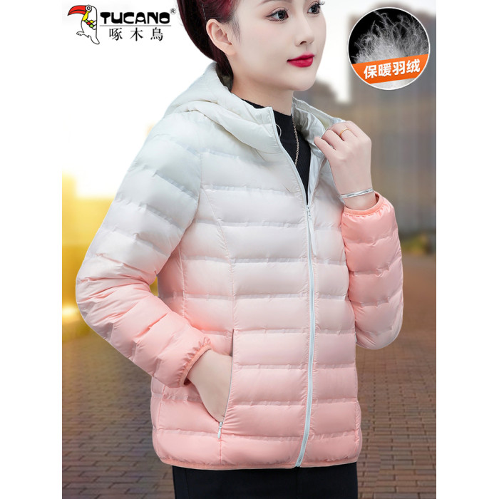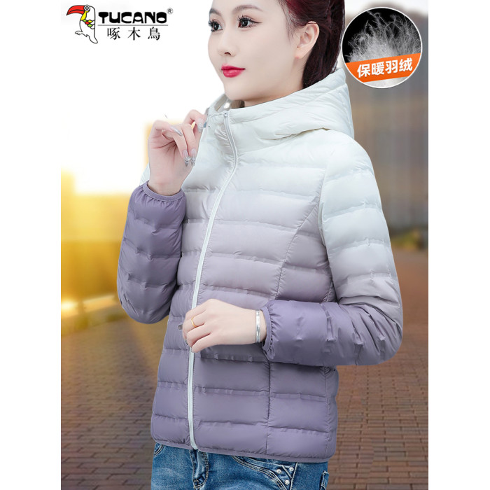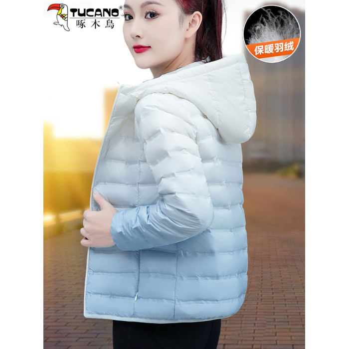 啄木鳥輕薄款羽絨服女短款冬季2025年新款白鴨絨大碼漸變色外套
