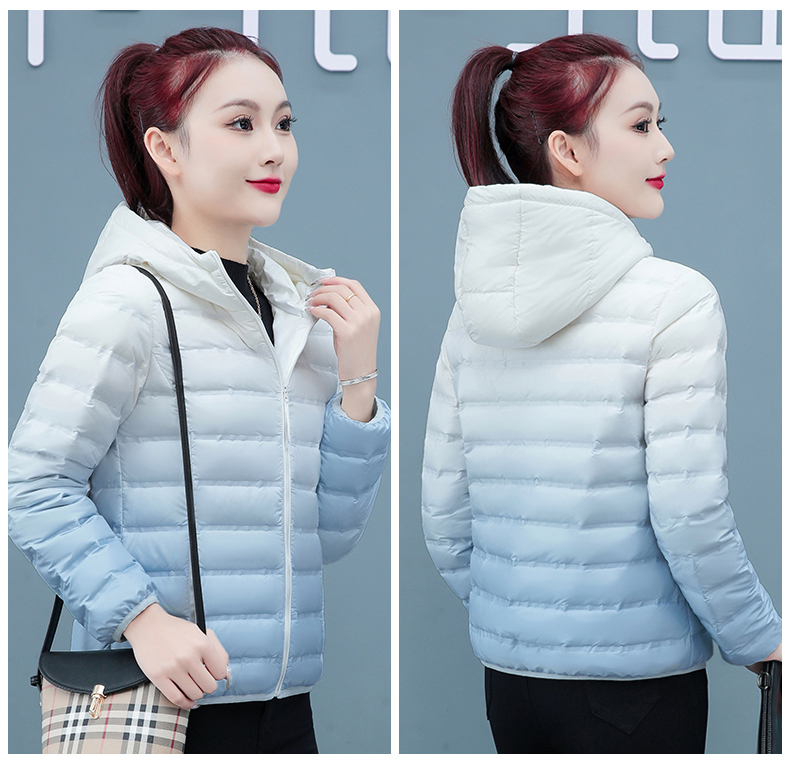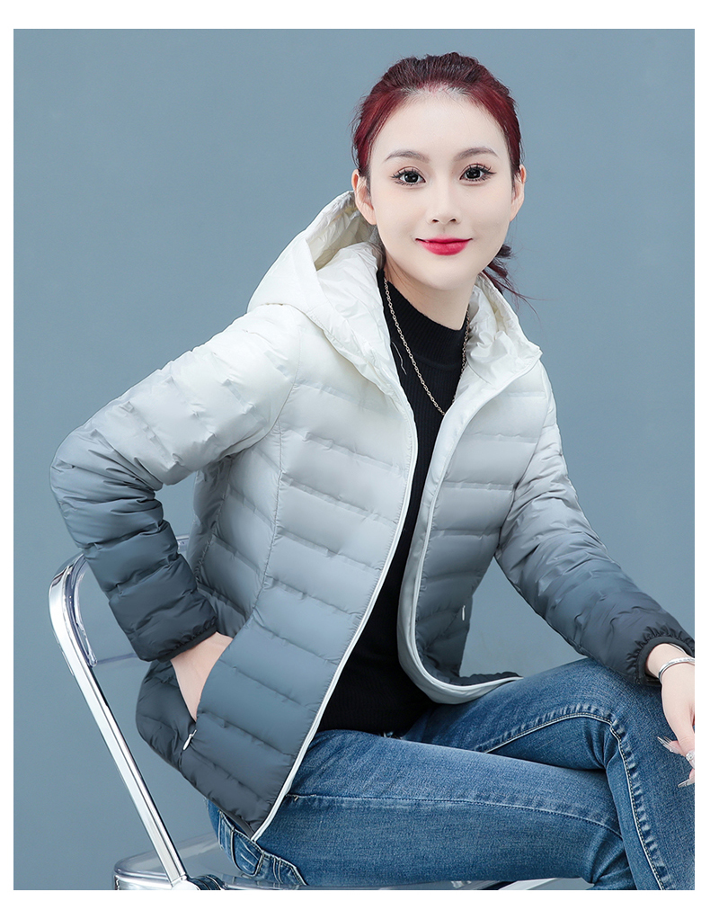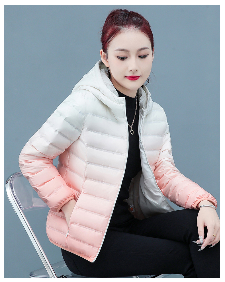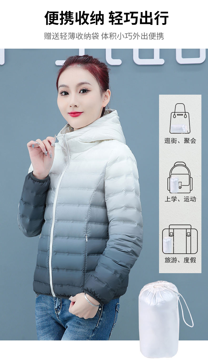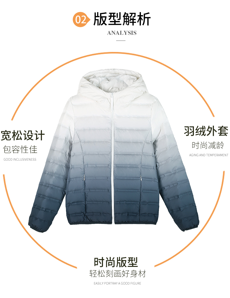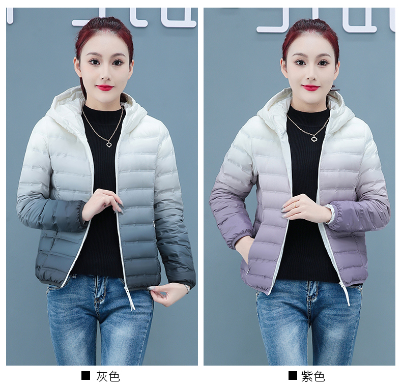 啄木鳥輕薄款羽絨服女短款冬季2025年新款白鴨絨大碼漸變色外套