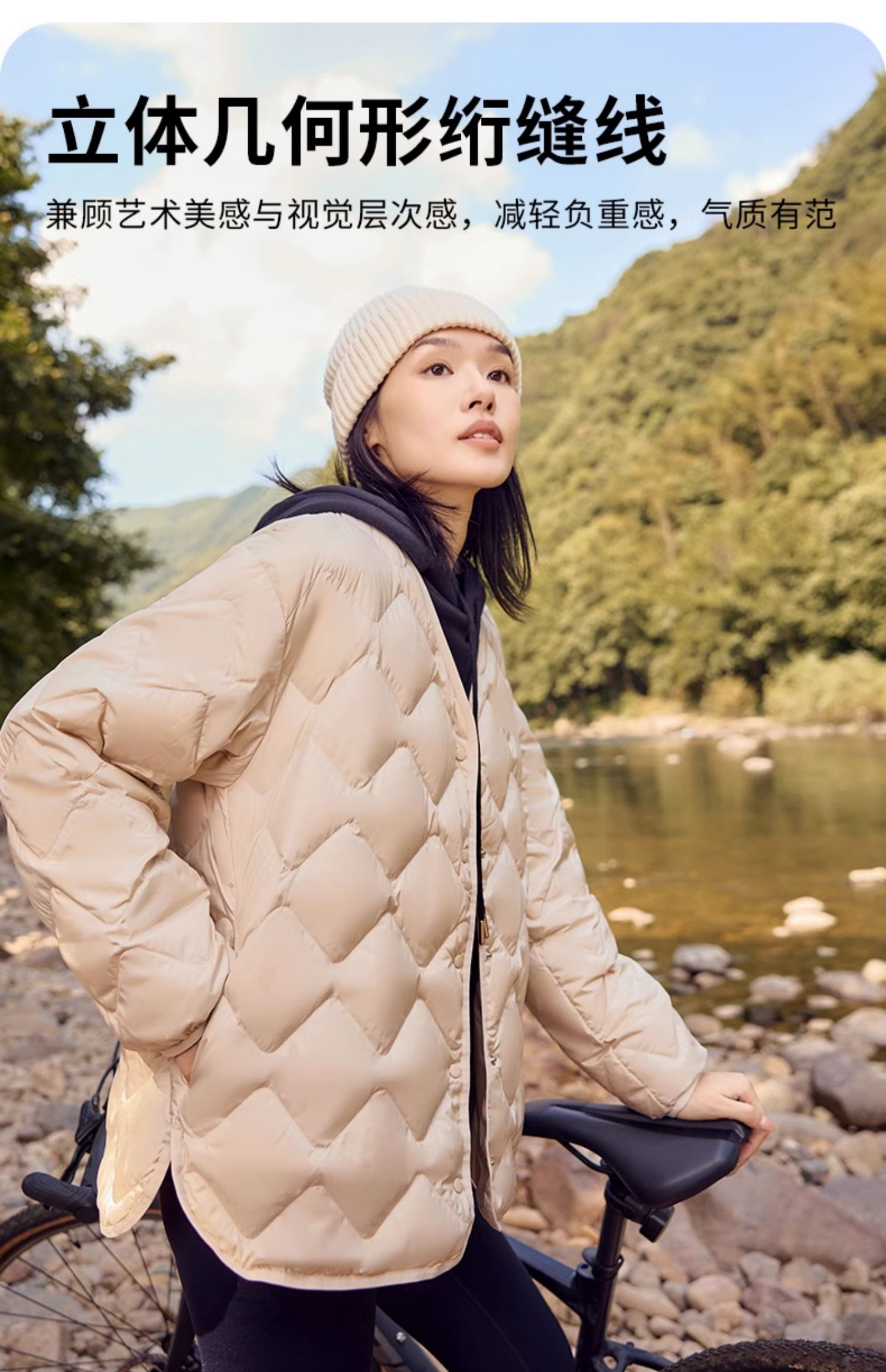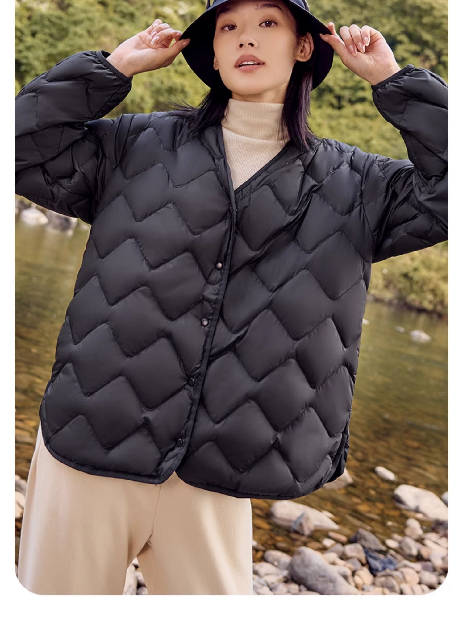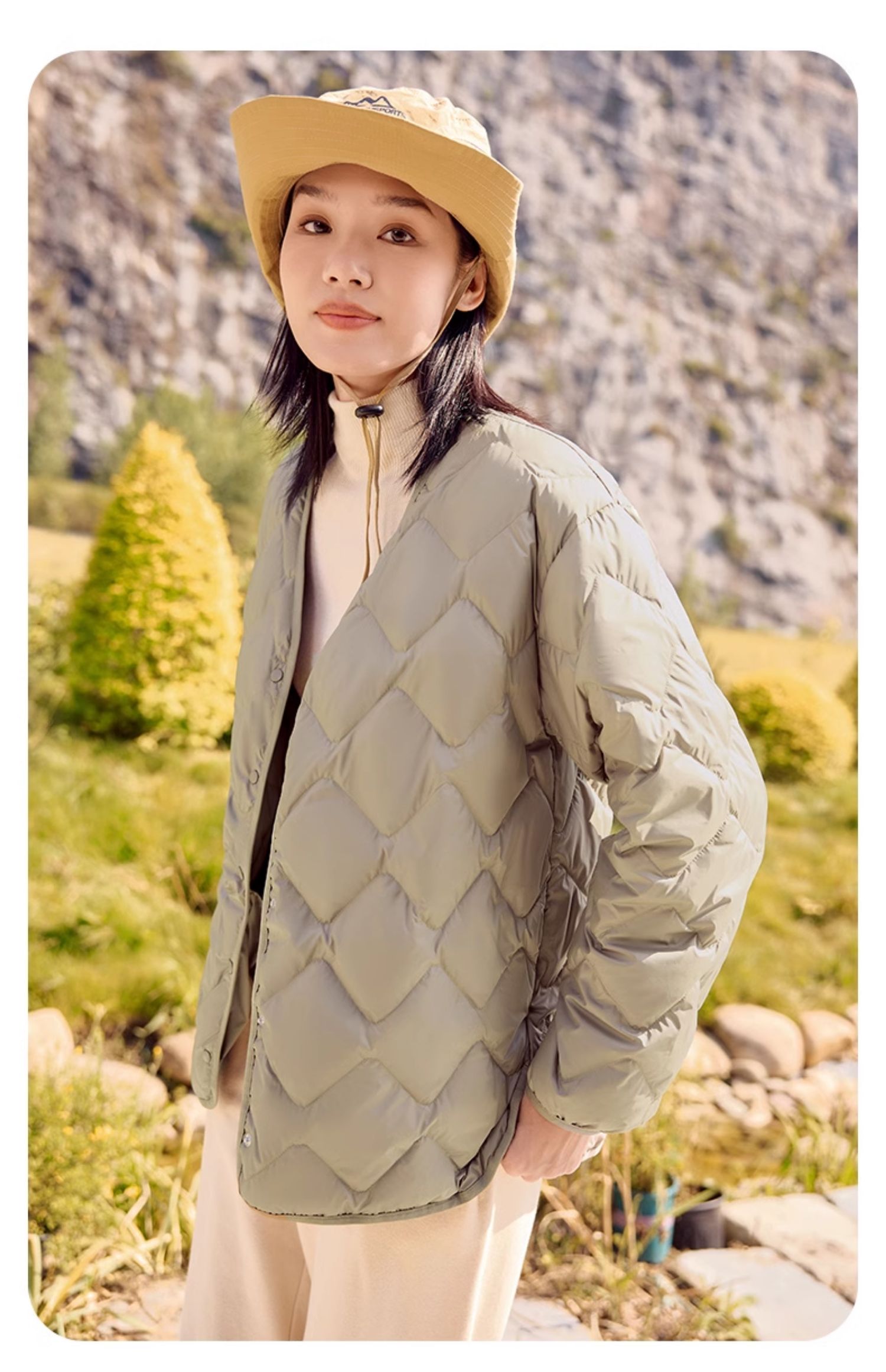 雅鹿輕薄羽絨服女內膽2025新款時尚短款休閒保暖菱形格薄外套