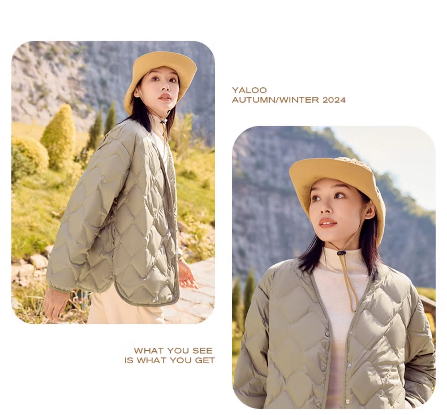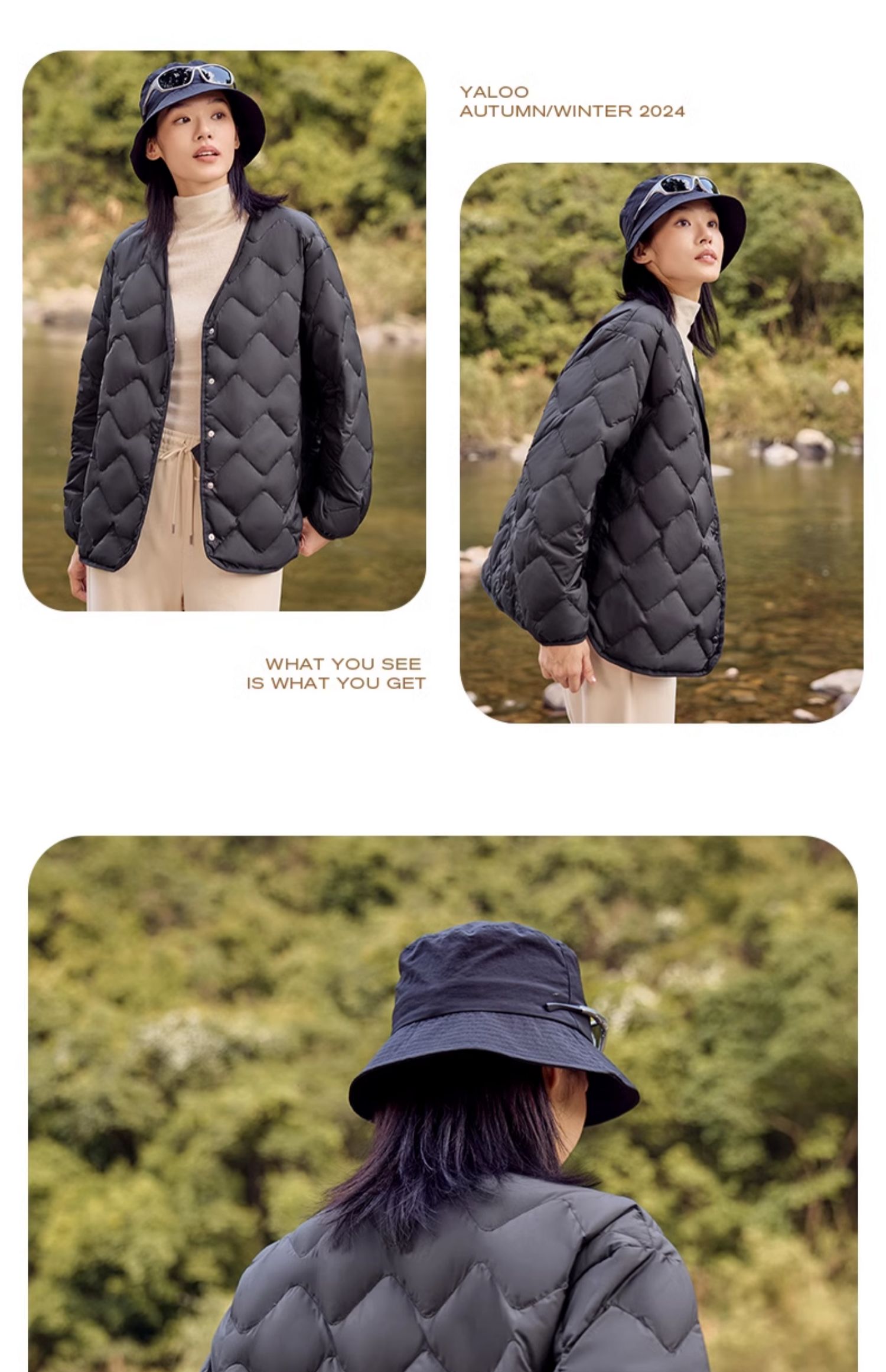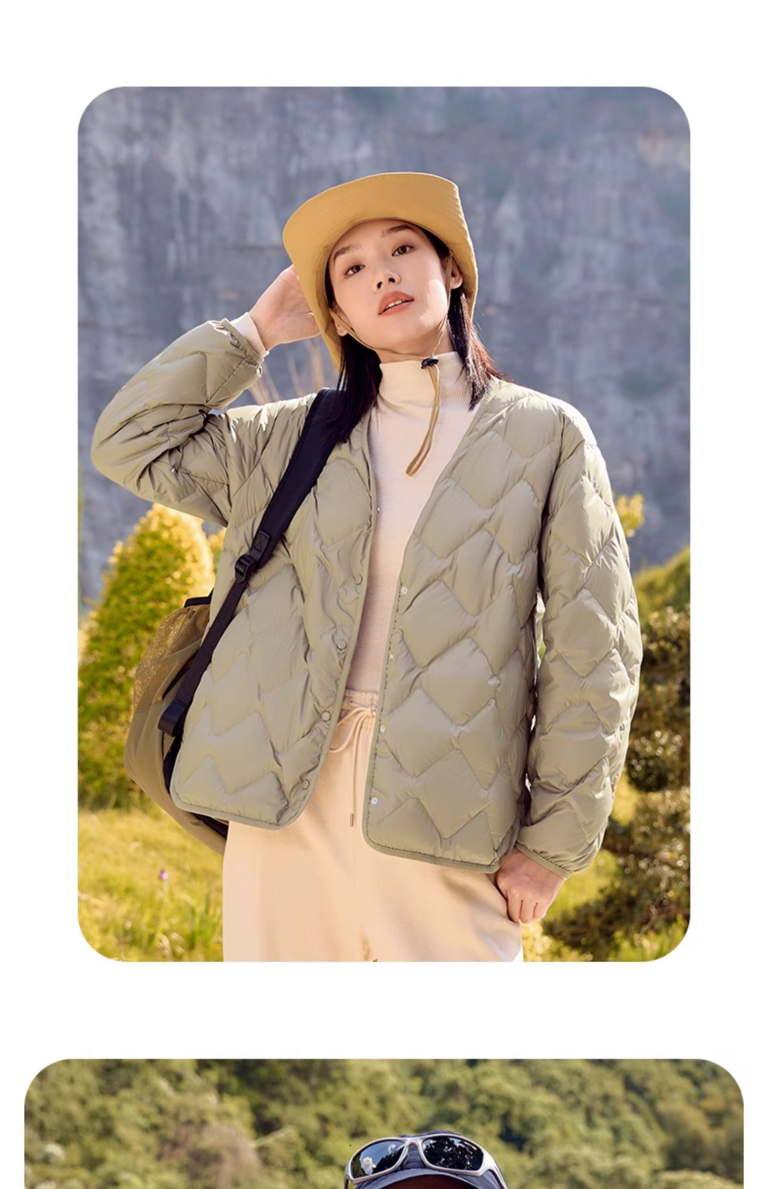雅鹿輕薄羽絨服女內膽2025新款時尚短款休閒保暖菱形格薄外套