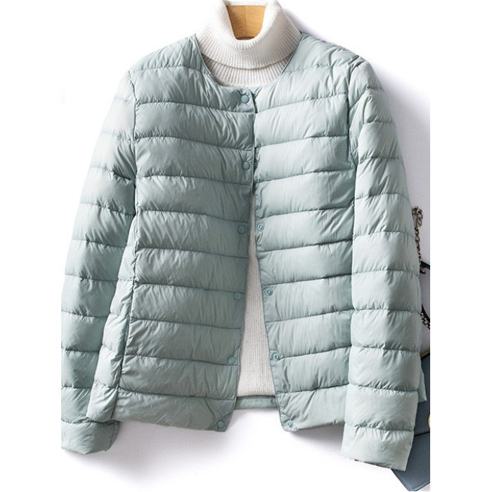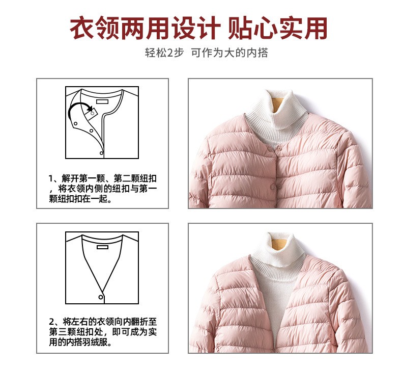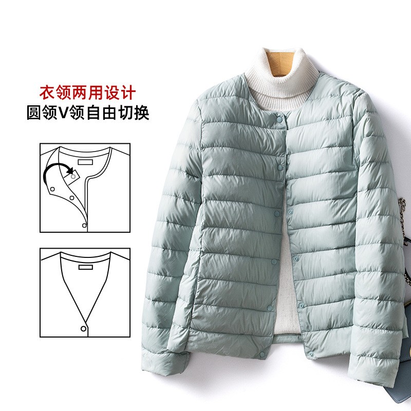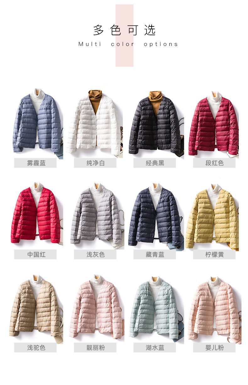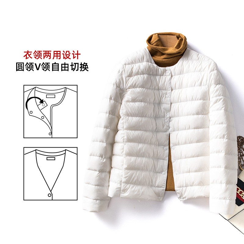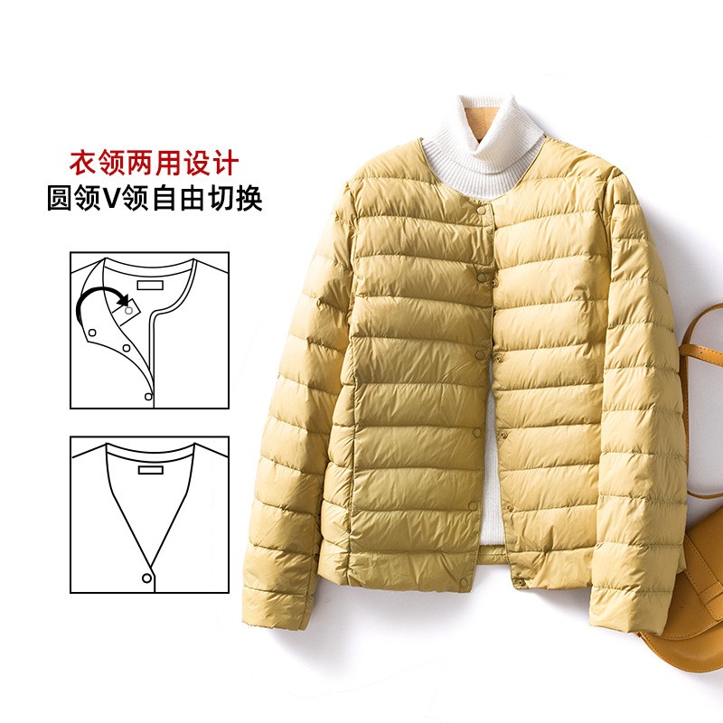 優品新款輕薄羽絨服女短款圓領v領保暖內膽無領修身大碼外套通勤
