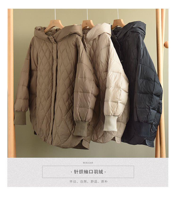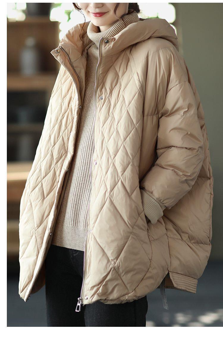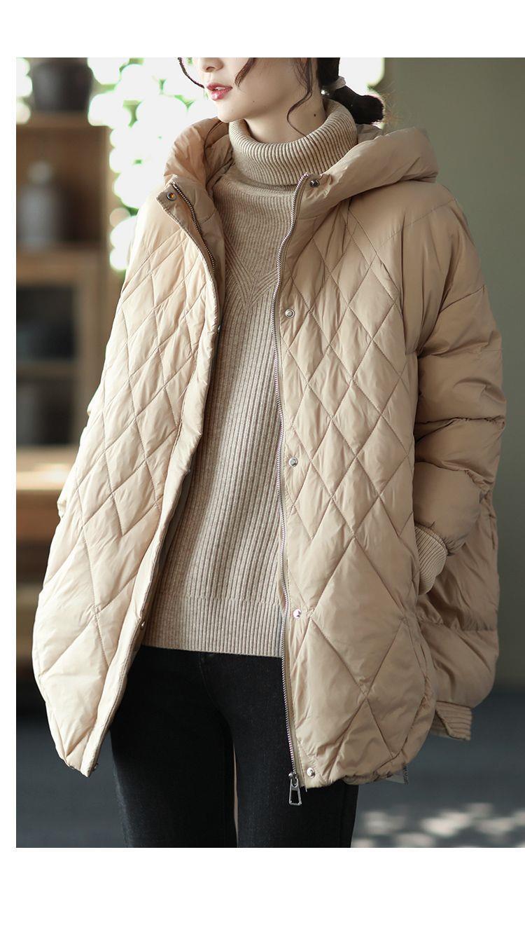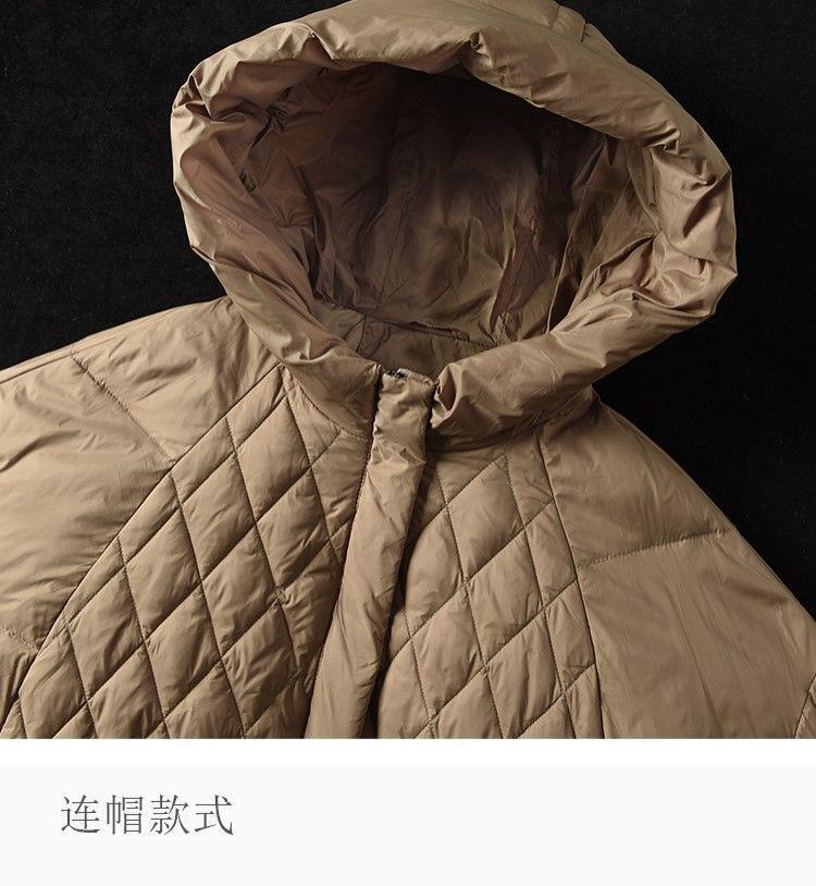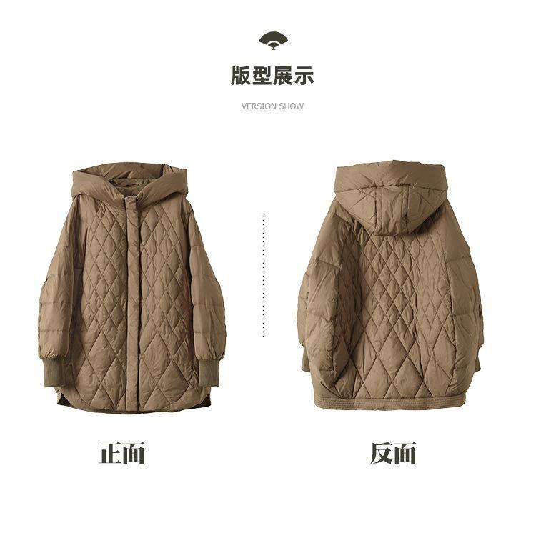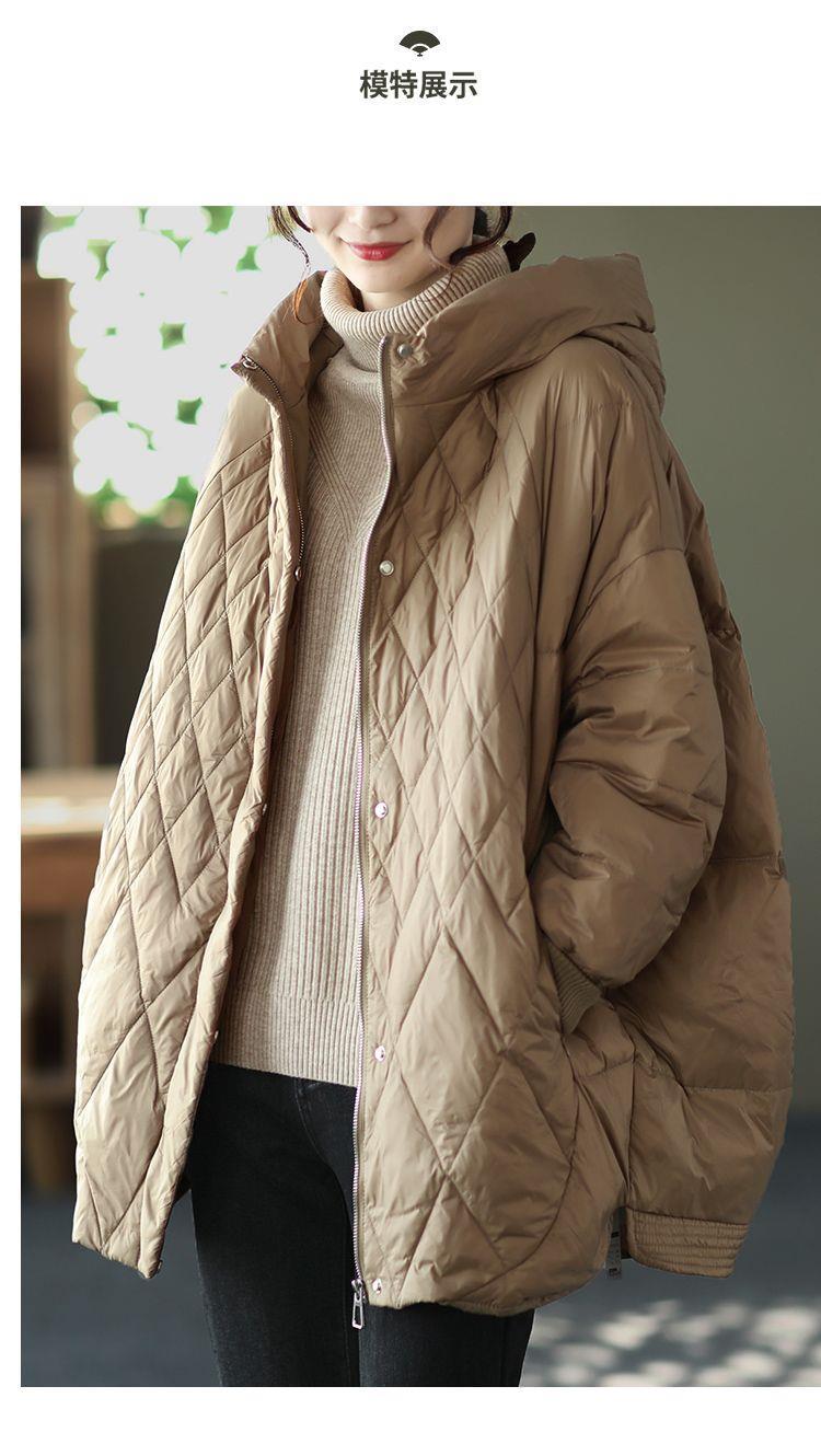 200斤自製連帽白鴨羽絨服女菱格文藝休閒保暖寬松保暖大碼外套