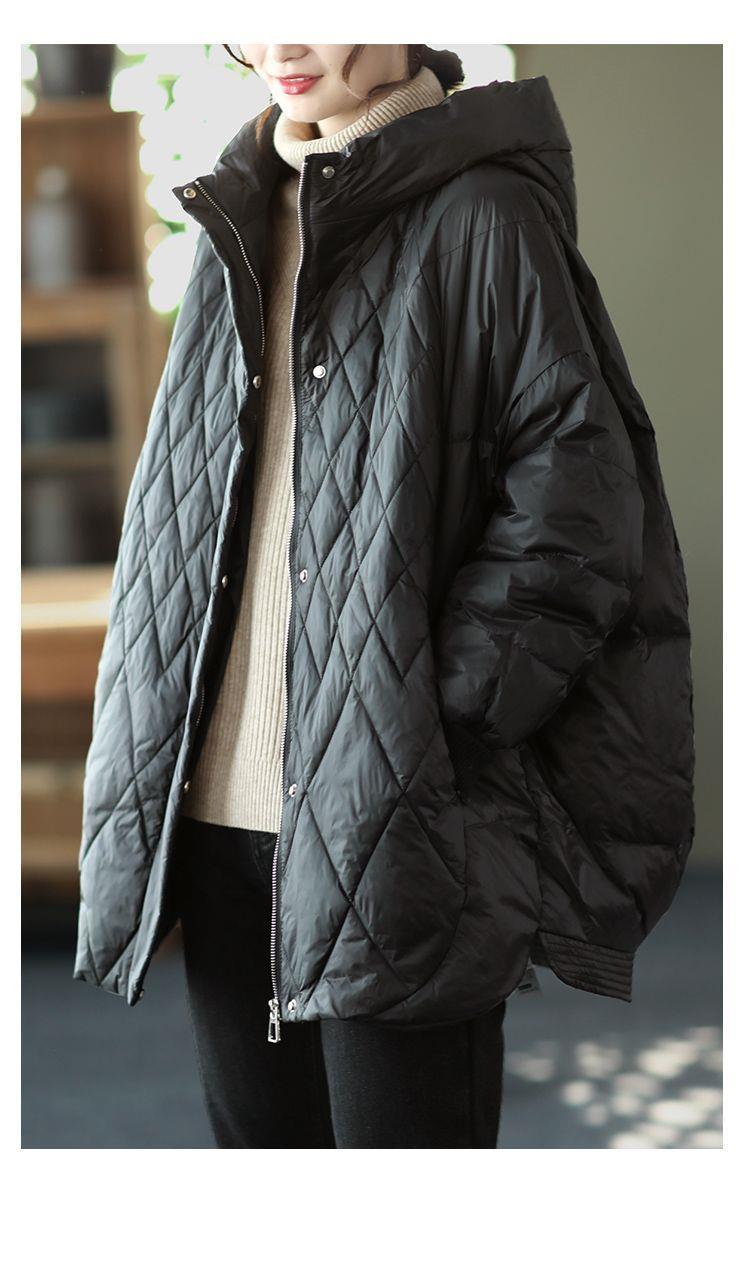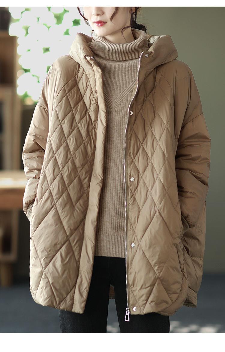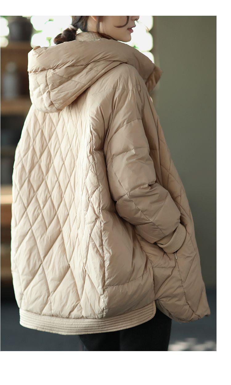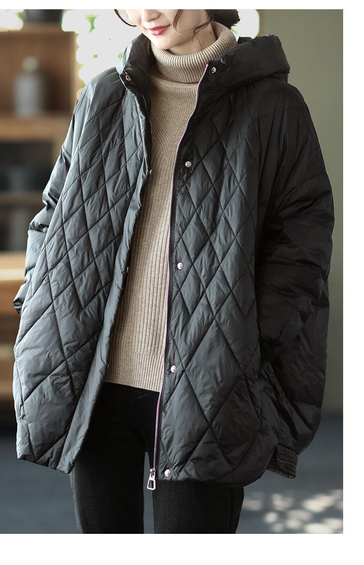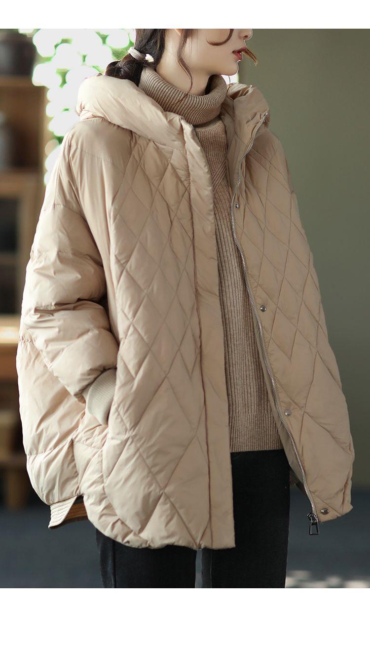 200斤自製連帽白鴨羽絨服女菱格文藝休閒保暖寬松保暖大碼外套