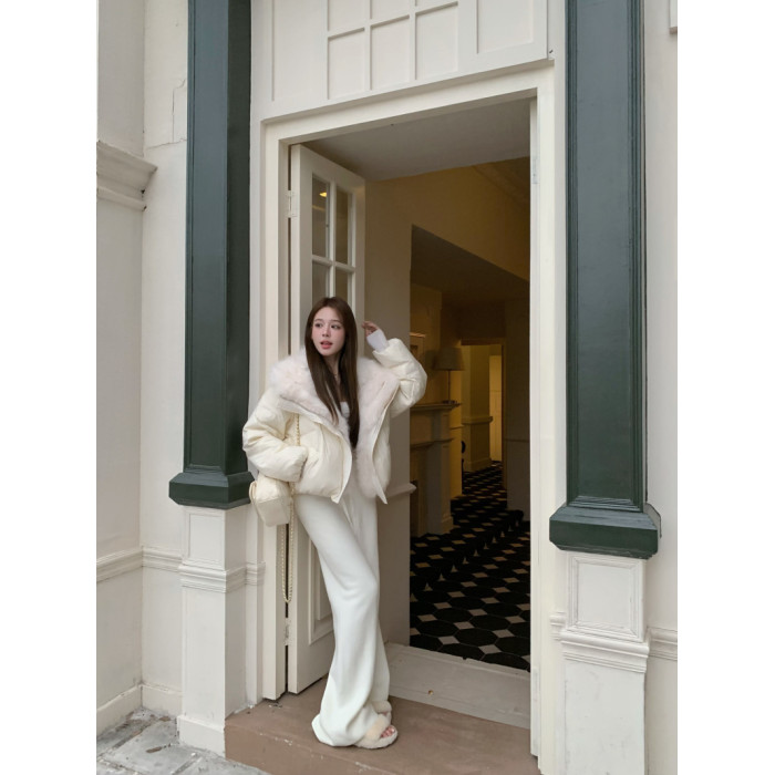 千金風白色大毛領羽絨服棉衣女冬季加厚保暖寬鬆百搭棉襖棉服外套