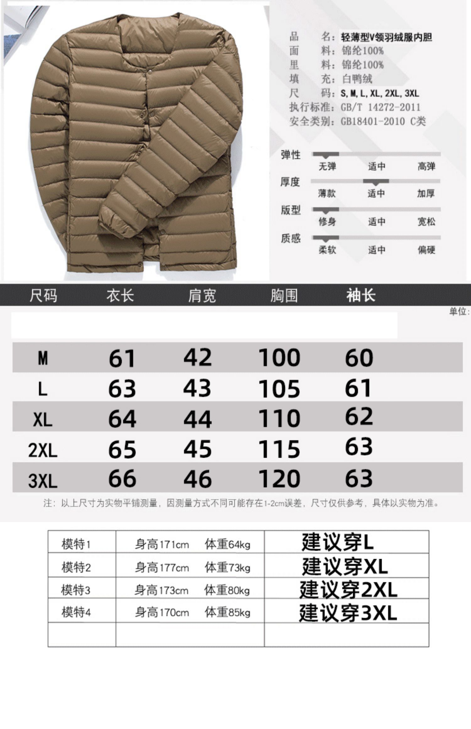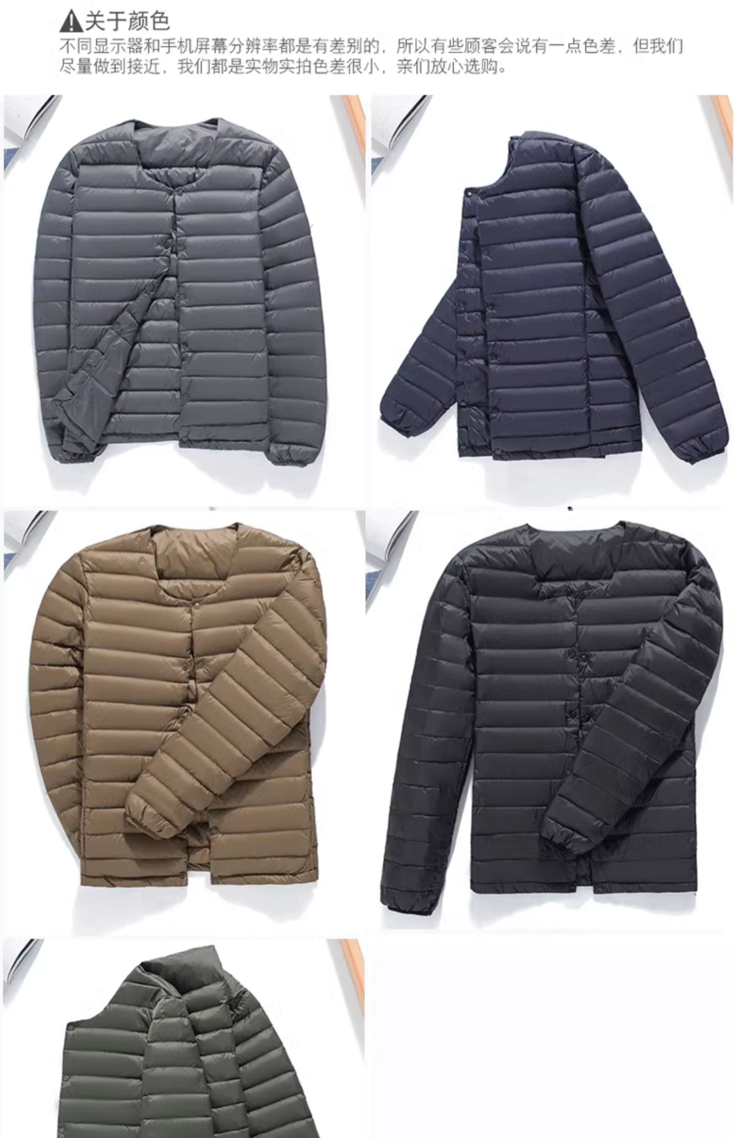 秋冬新款輕薄羽絨服男士無領V領羽絨內膽大碼內穿圓領輕薄款外套
