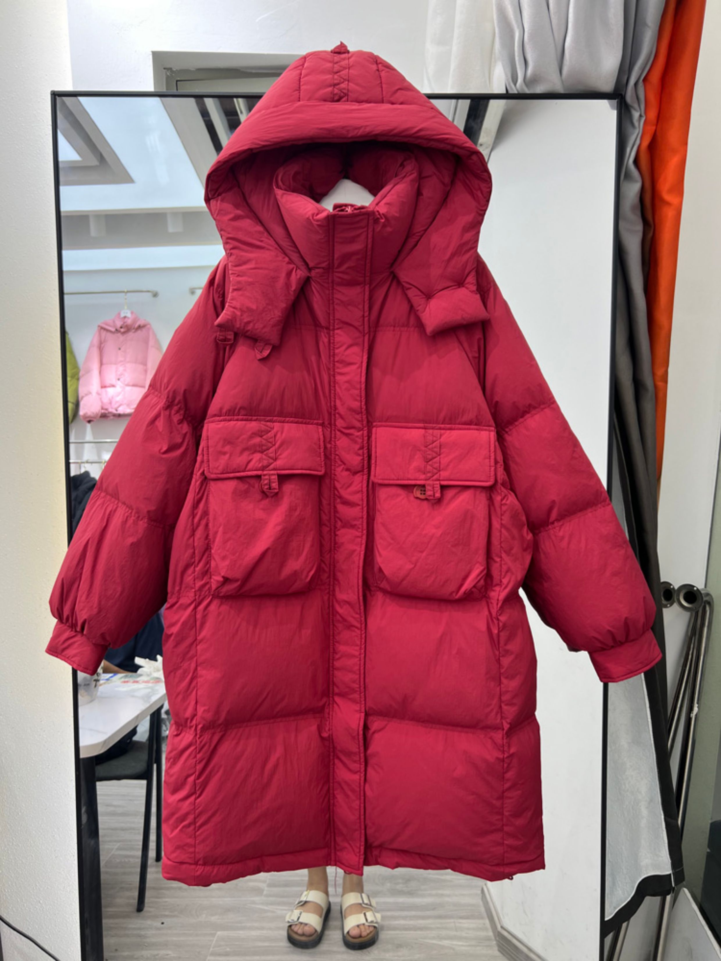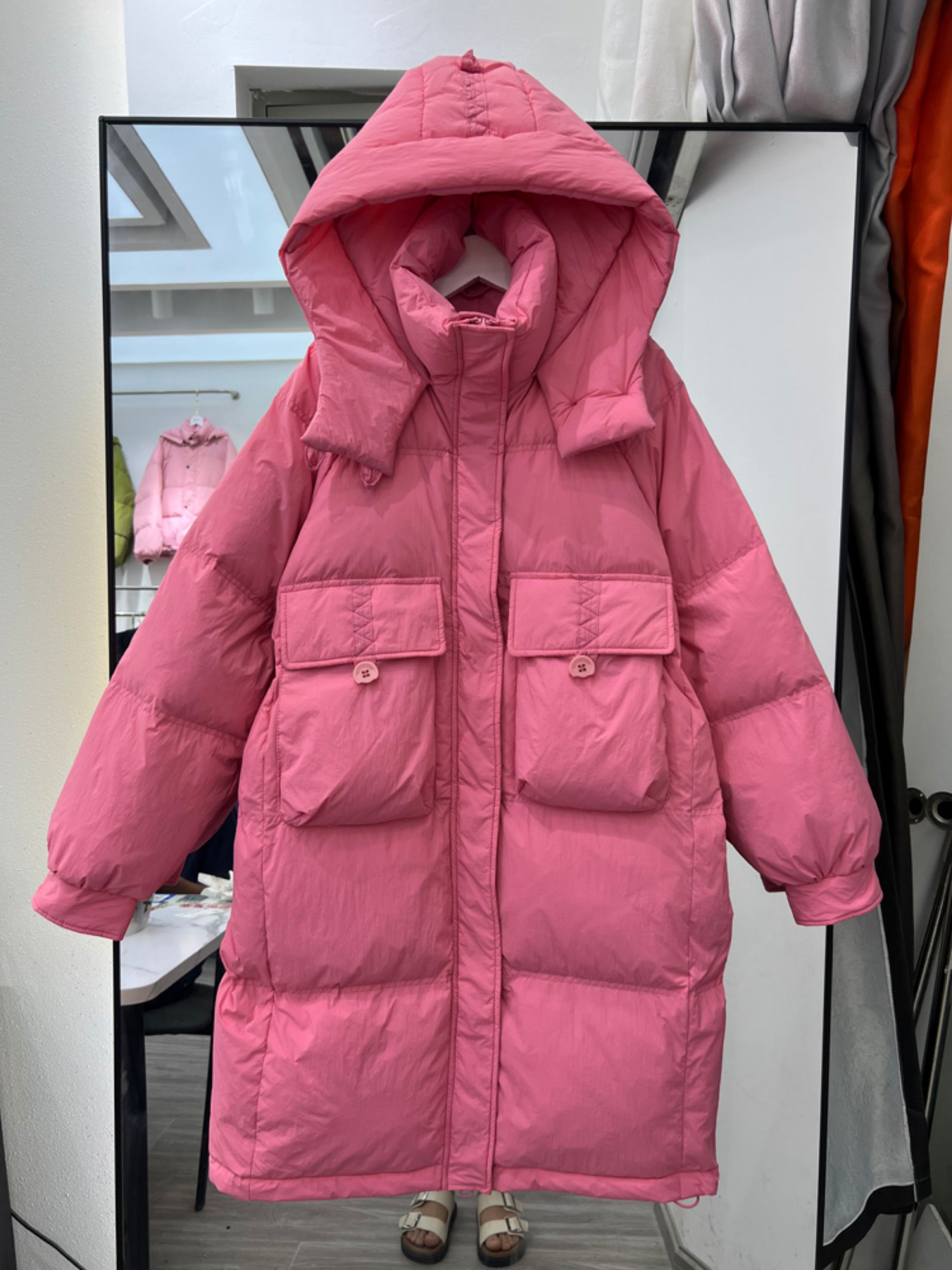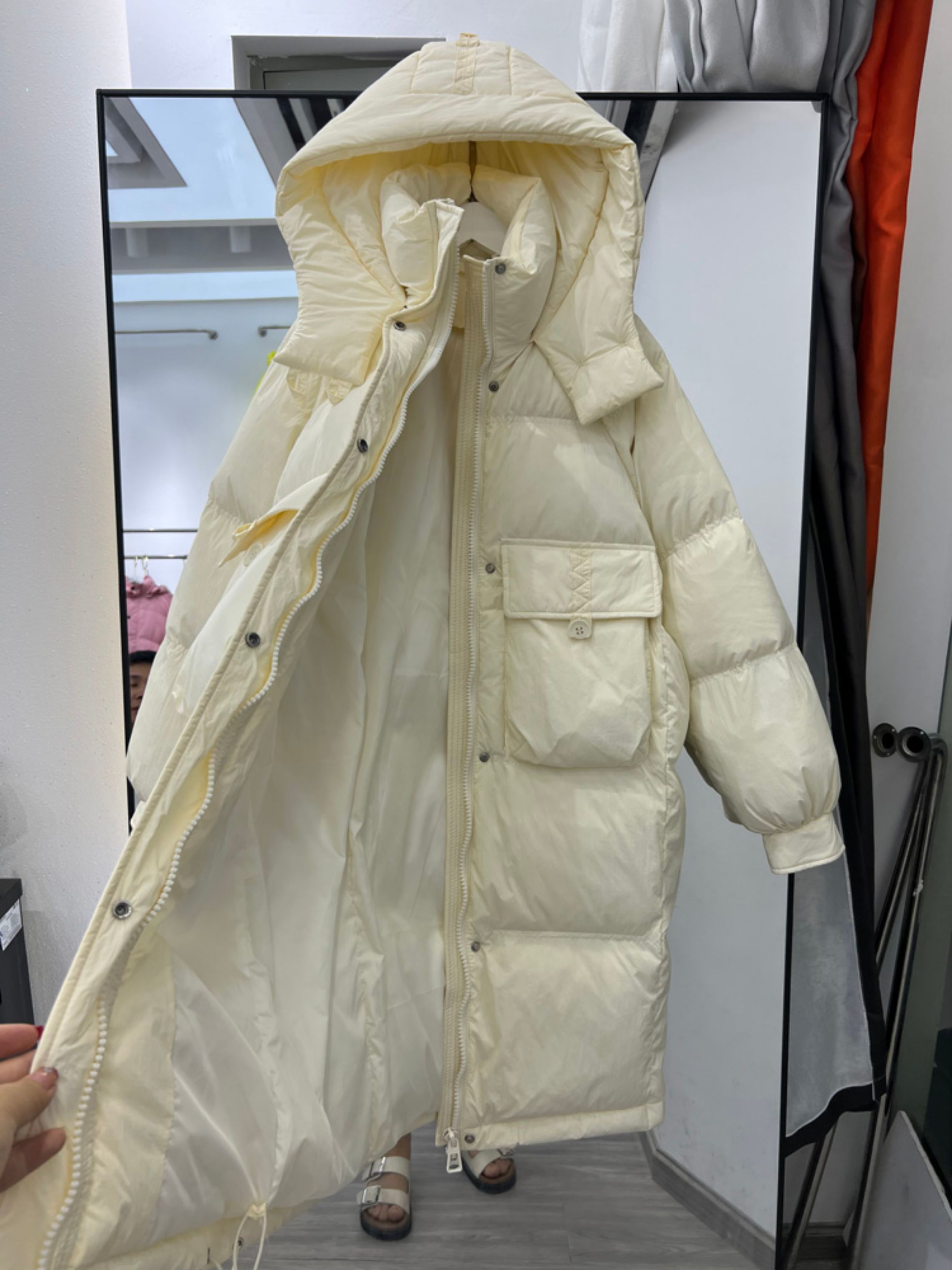 2025年秋冬新款韓版羽絨服女中長款連帽白鴨絨過膝加厚寬松外套潮