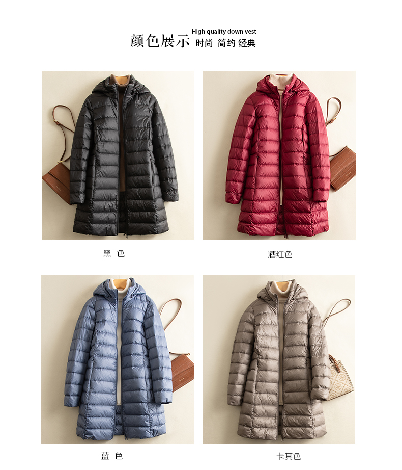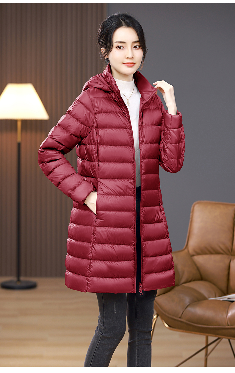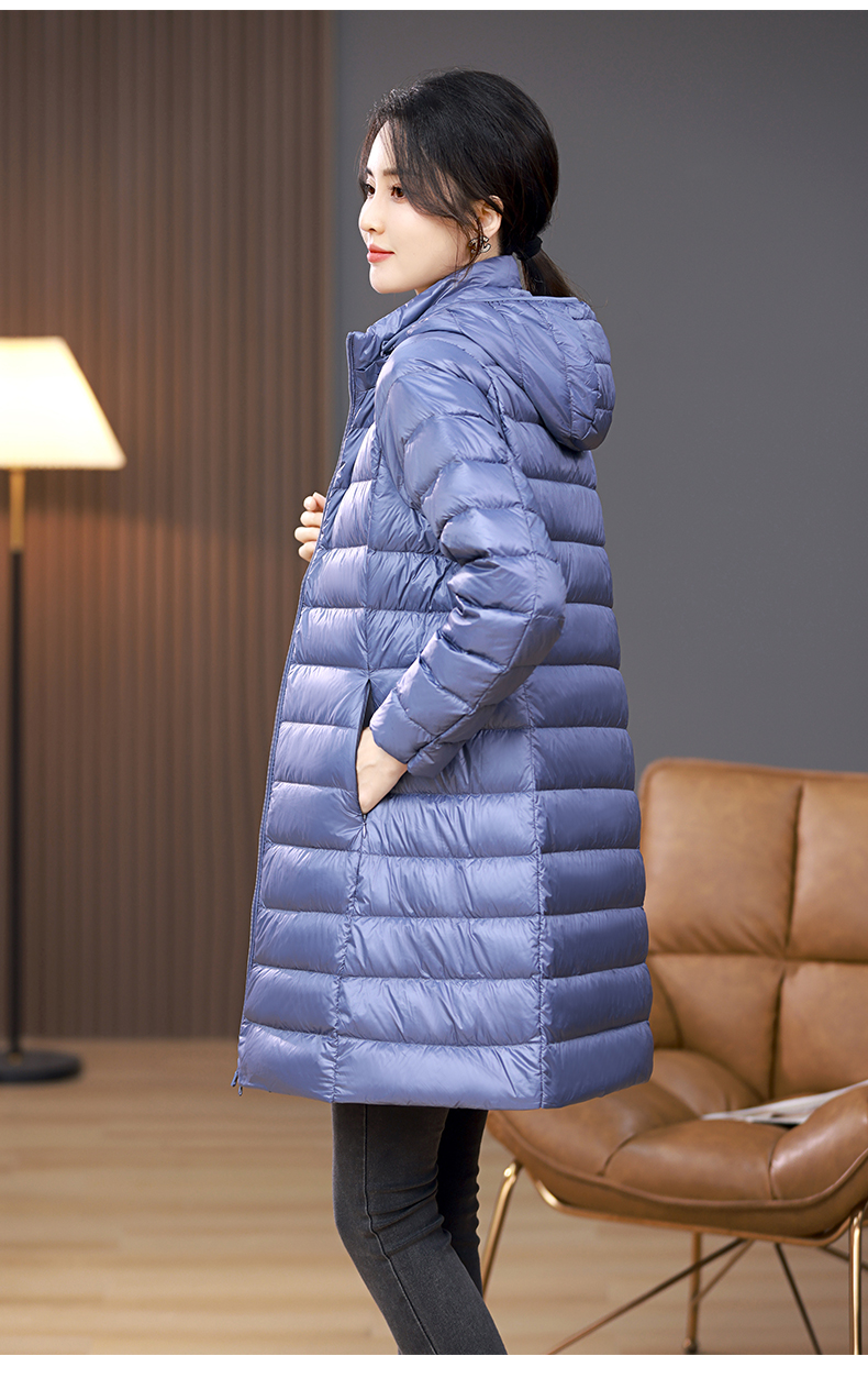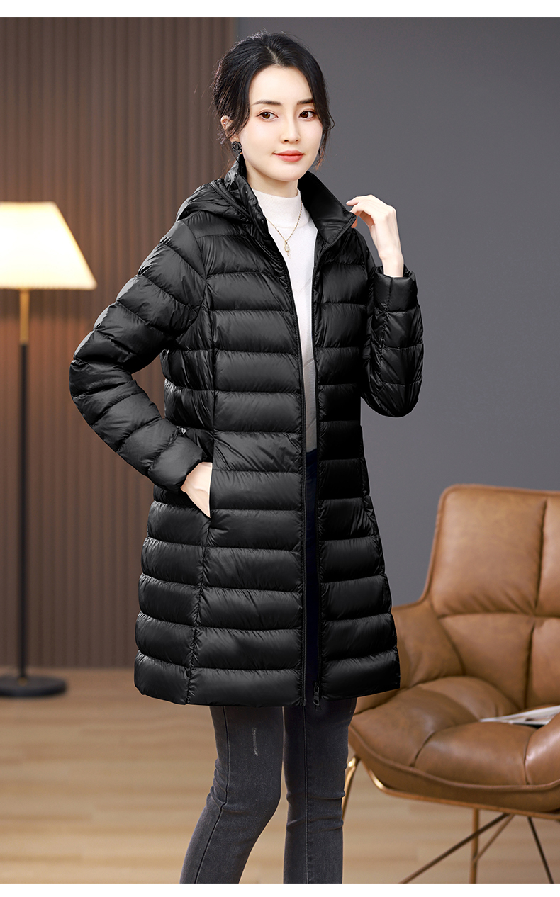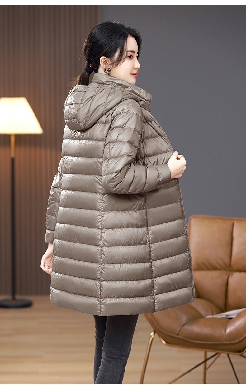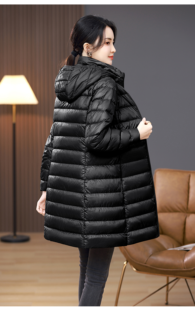 輕薄羽絨服女中長款2025新款中年媽媽大碼休閒連帽白鴨絨羽絨外套