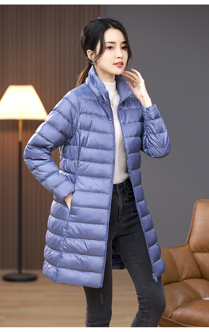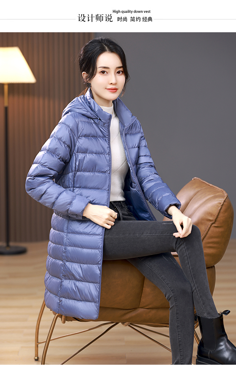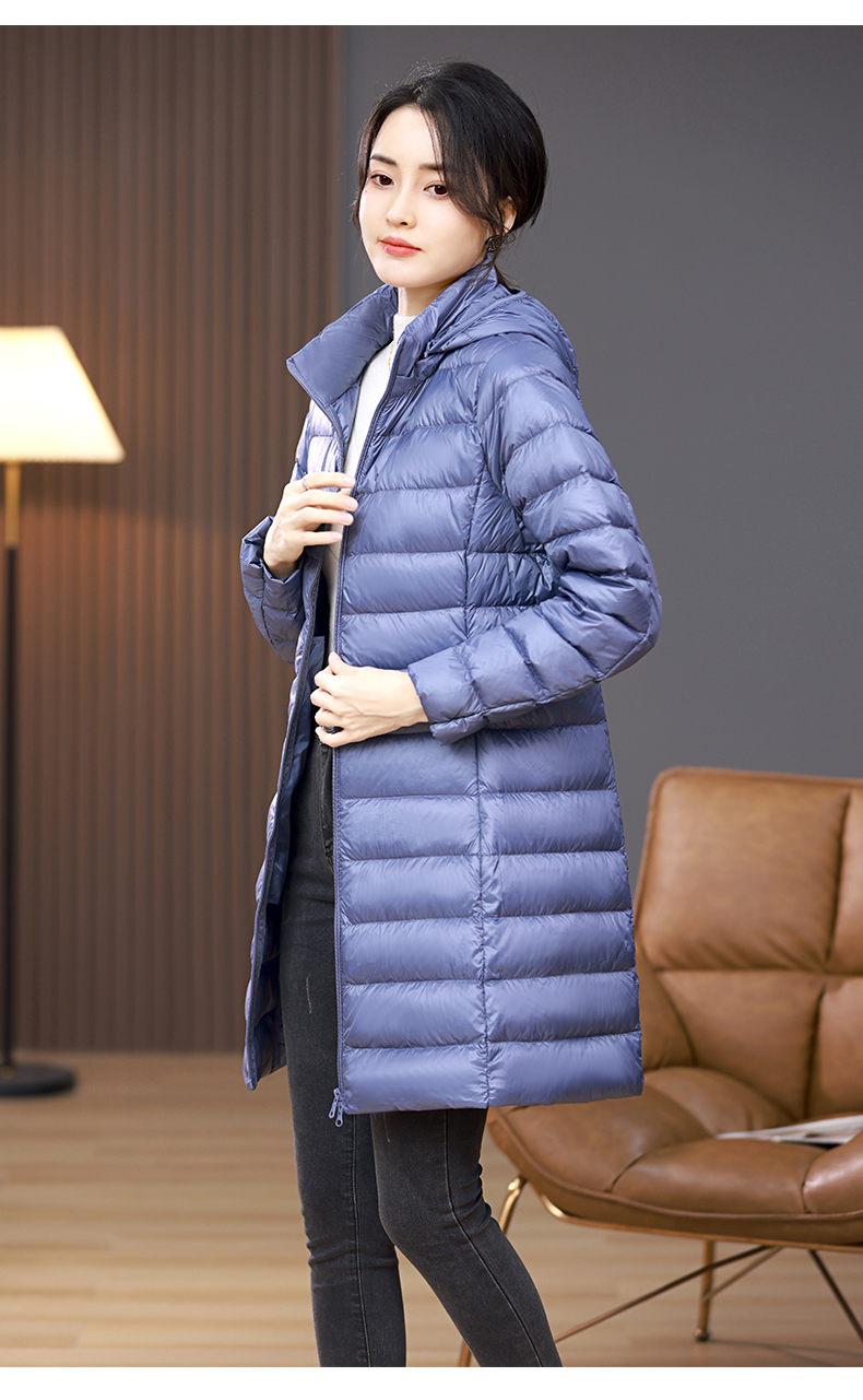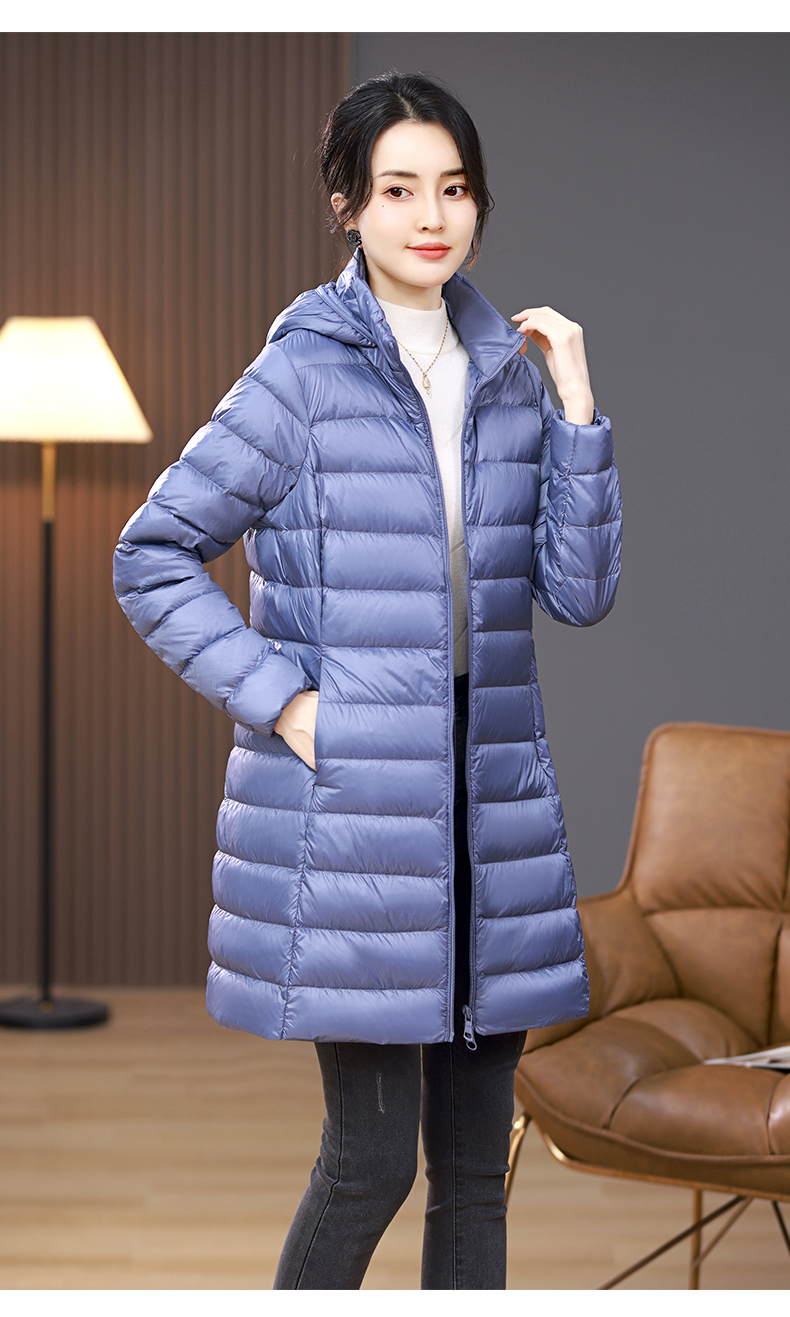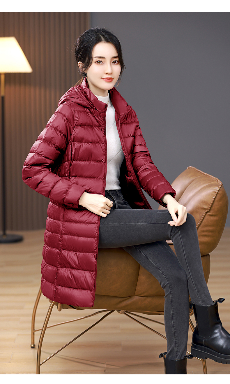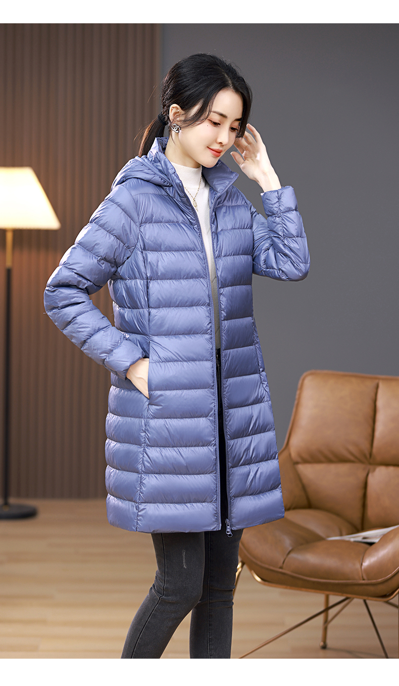 輕薄羽絨服女中長款2025新款中年媽媽大碼休閒連帽白鴨絨羽絨外套