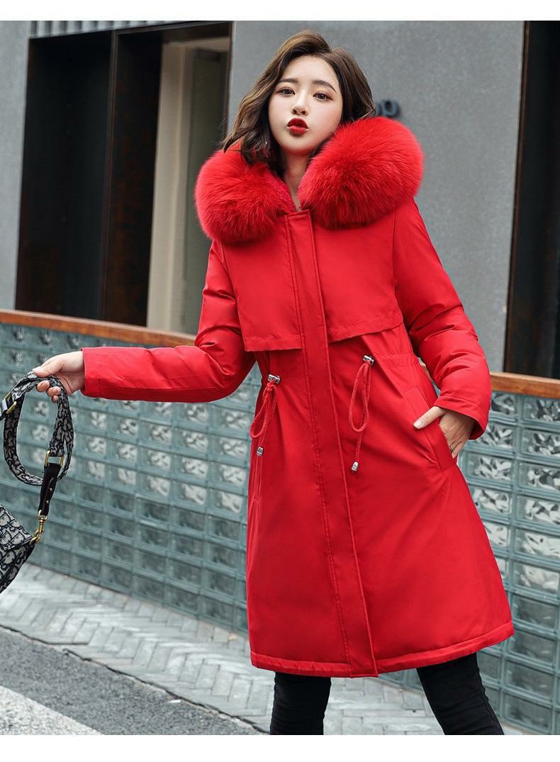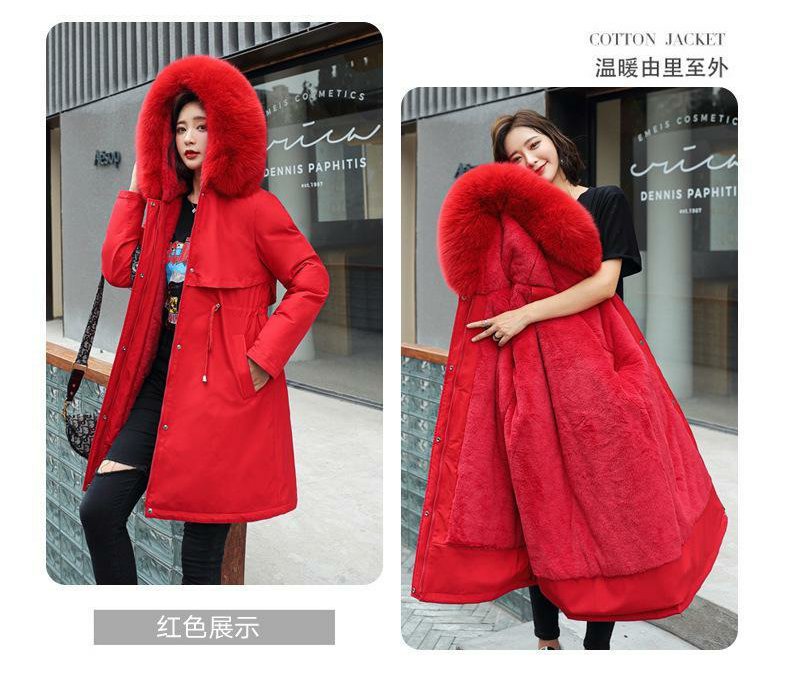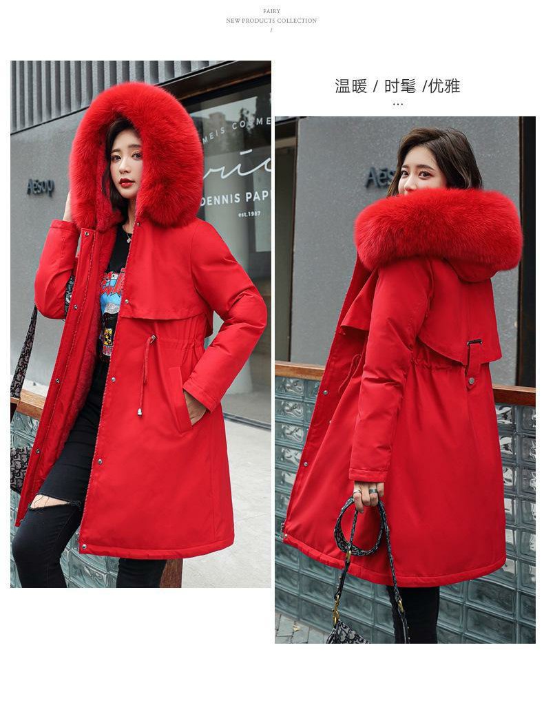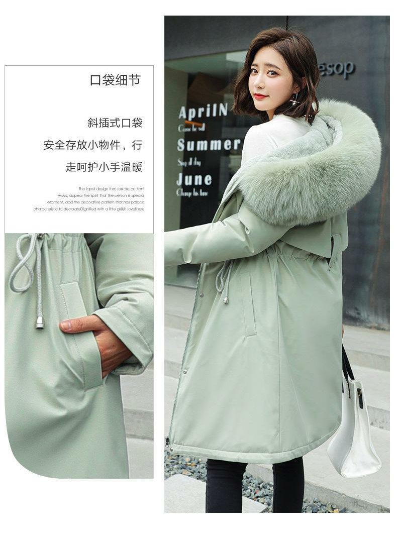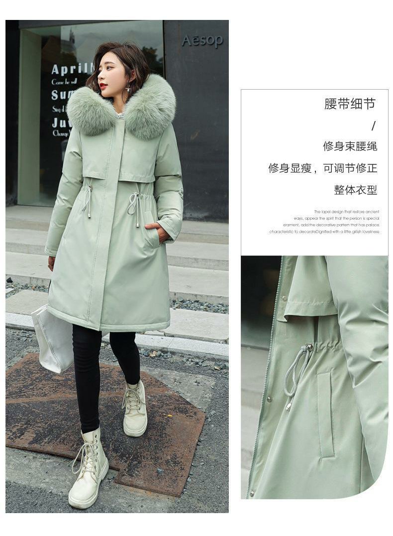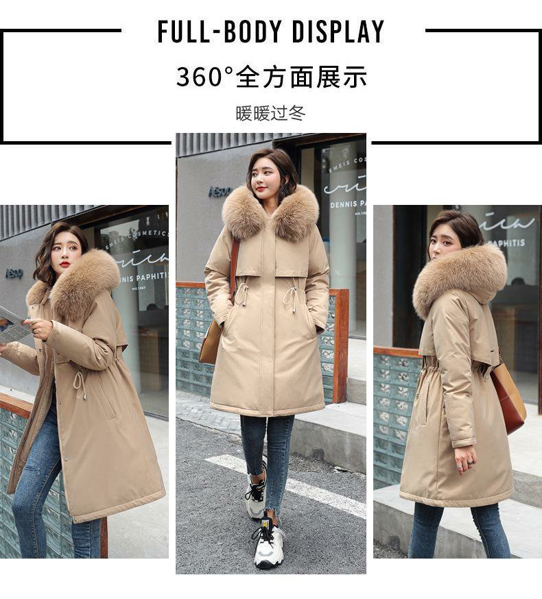 新款派克服加絨加厚羽絨棉服女中長款韓版秋冬季收腰連帽棉衣棉襖