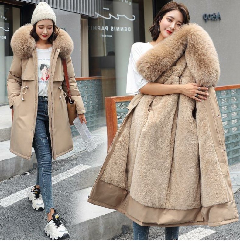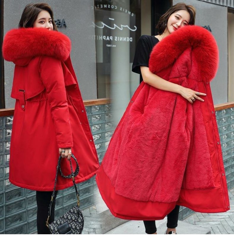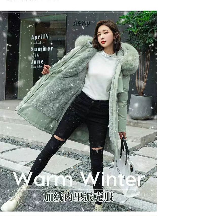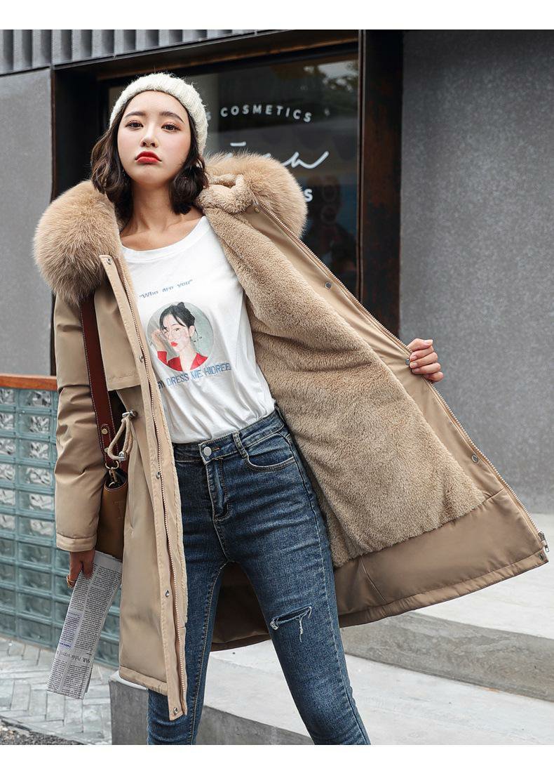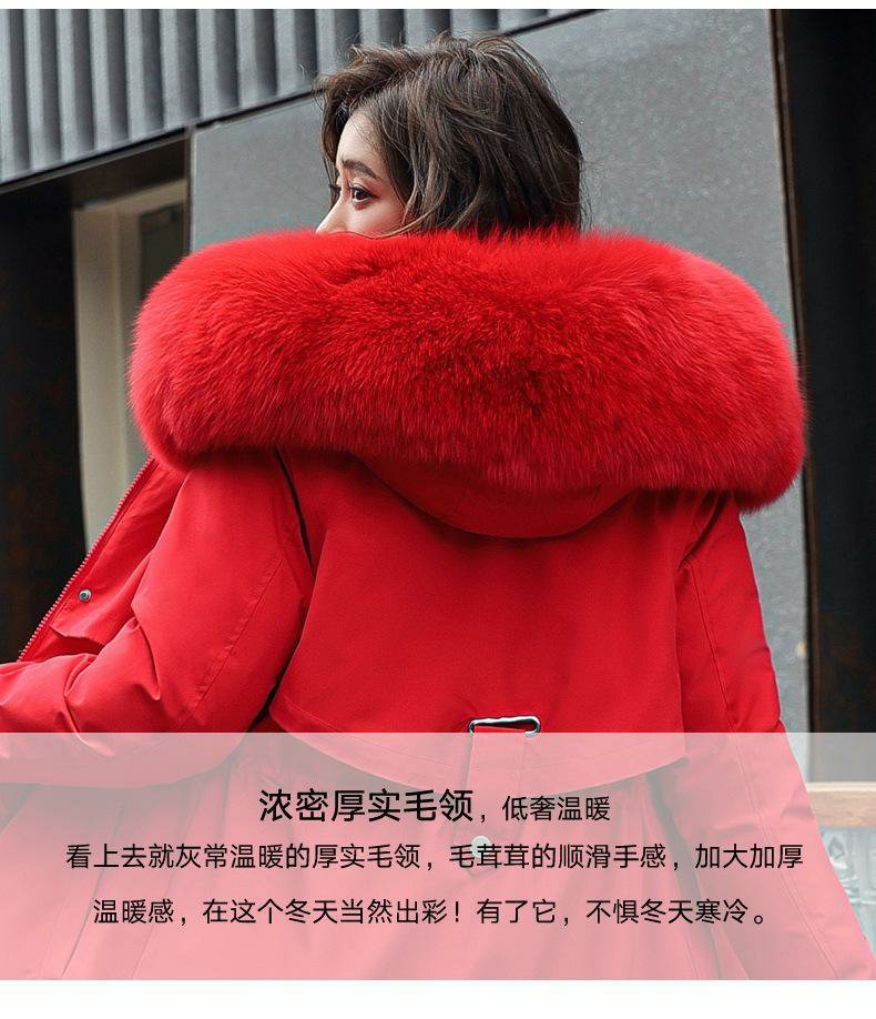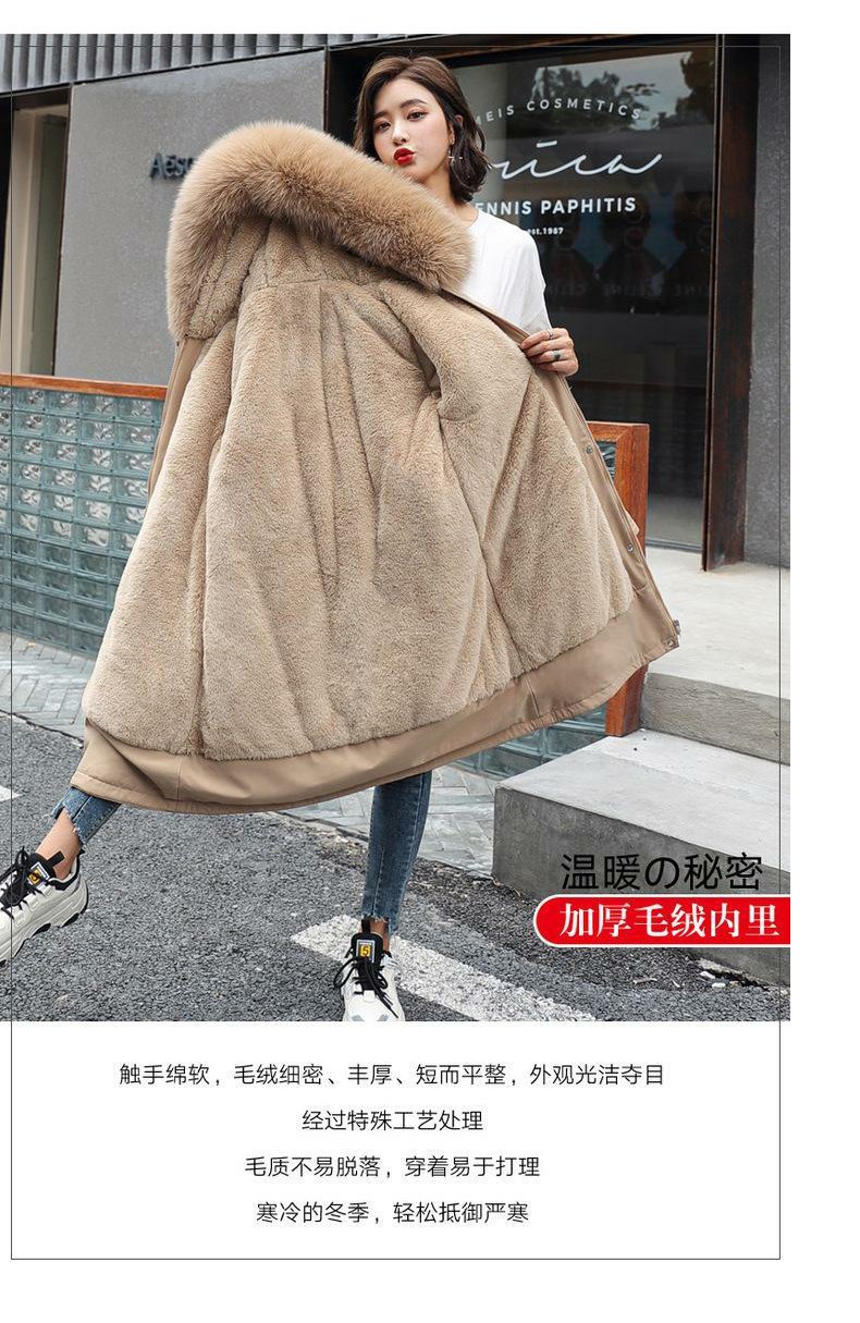 新款派克服加絨加厚羽絨棉服女中長款韓版秋冬季收腰連帽棉衣棉襖