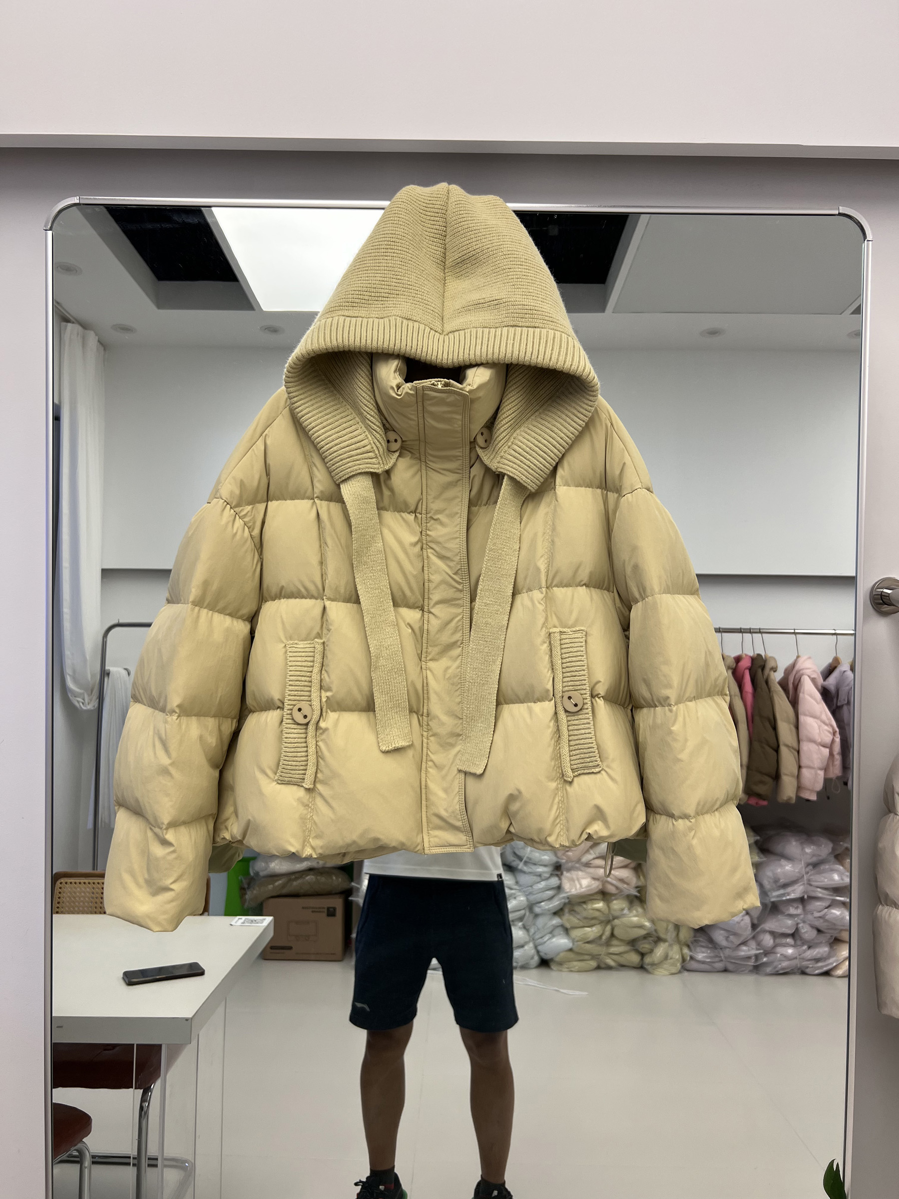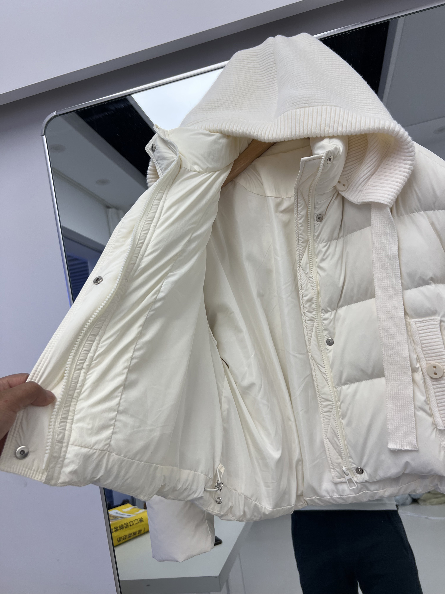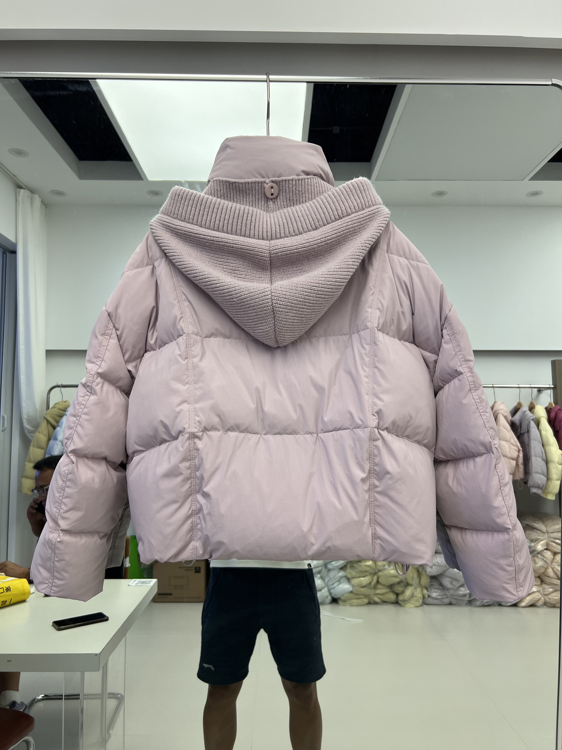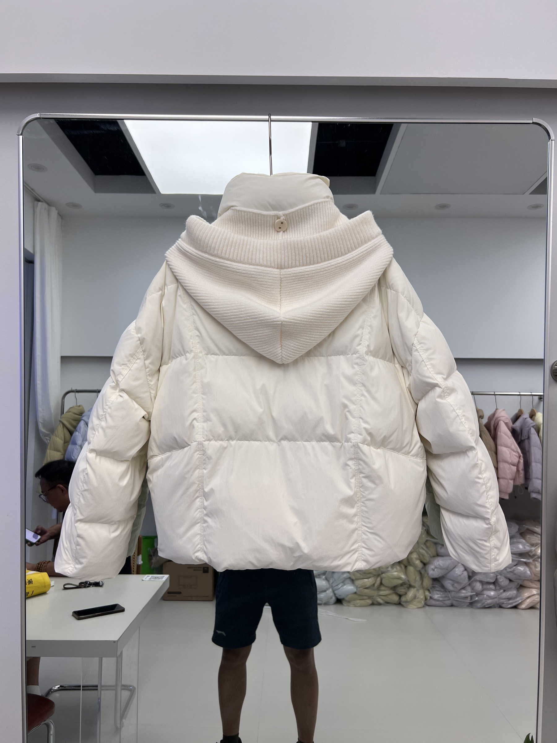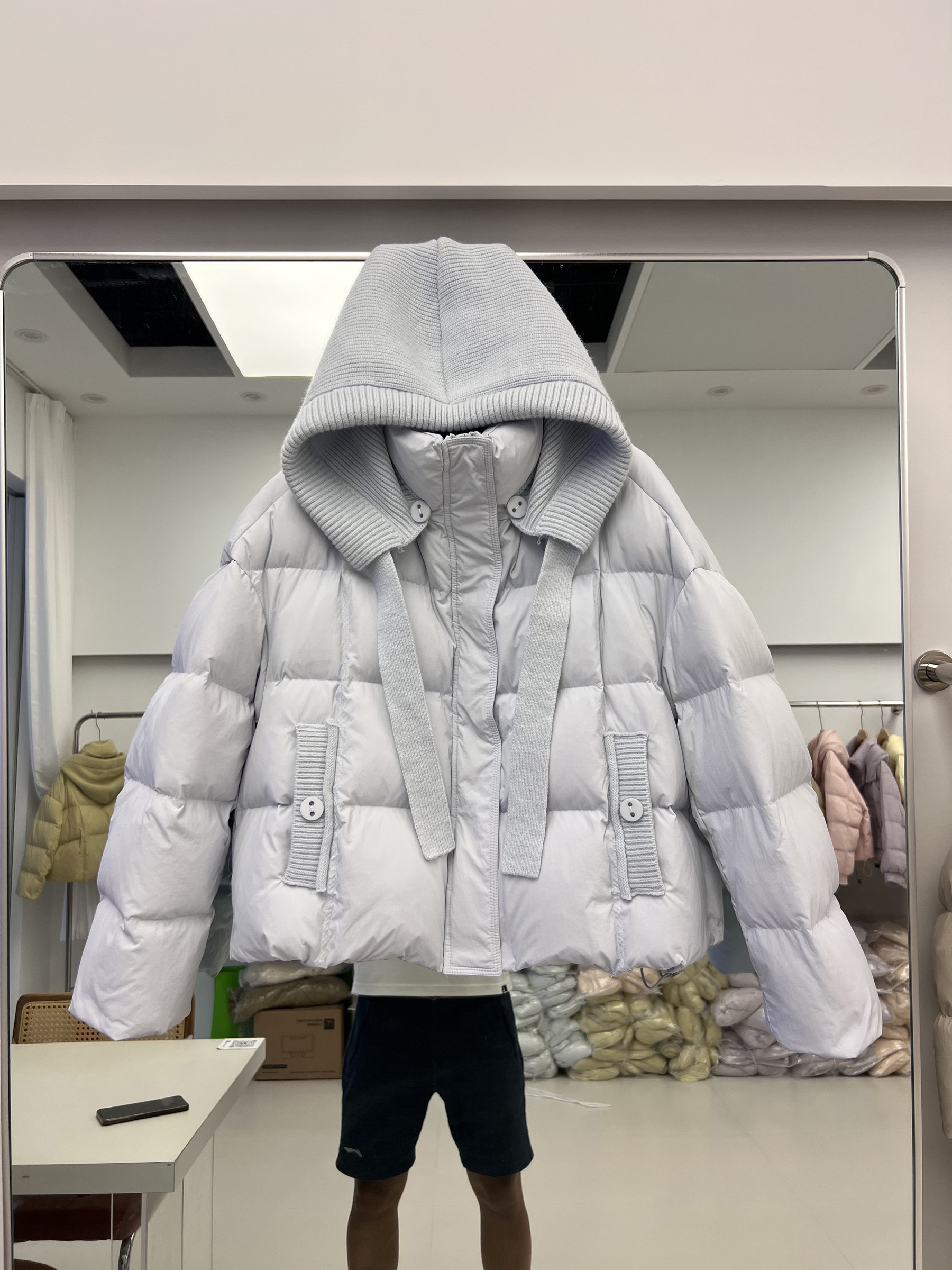 2025年新款羽絨服女短款韓版連帽時尚針織拼接白鴨絨外套潮