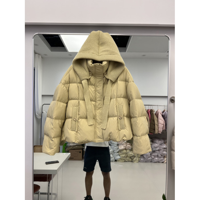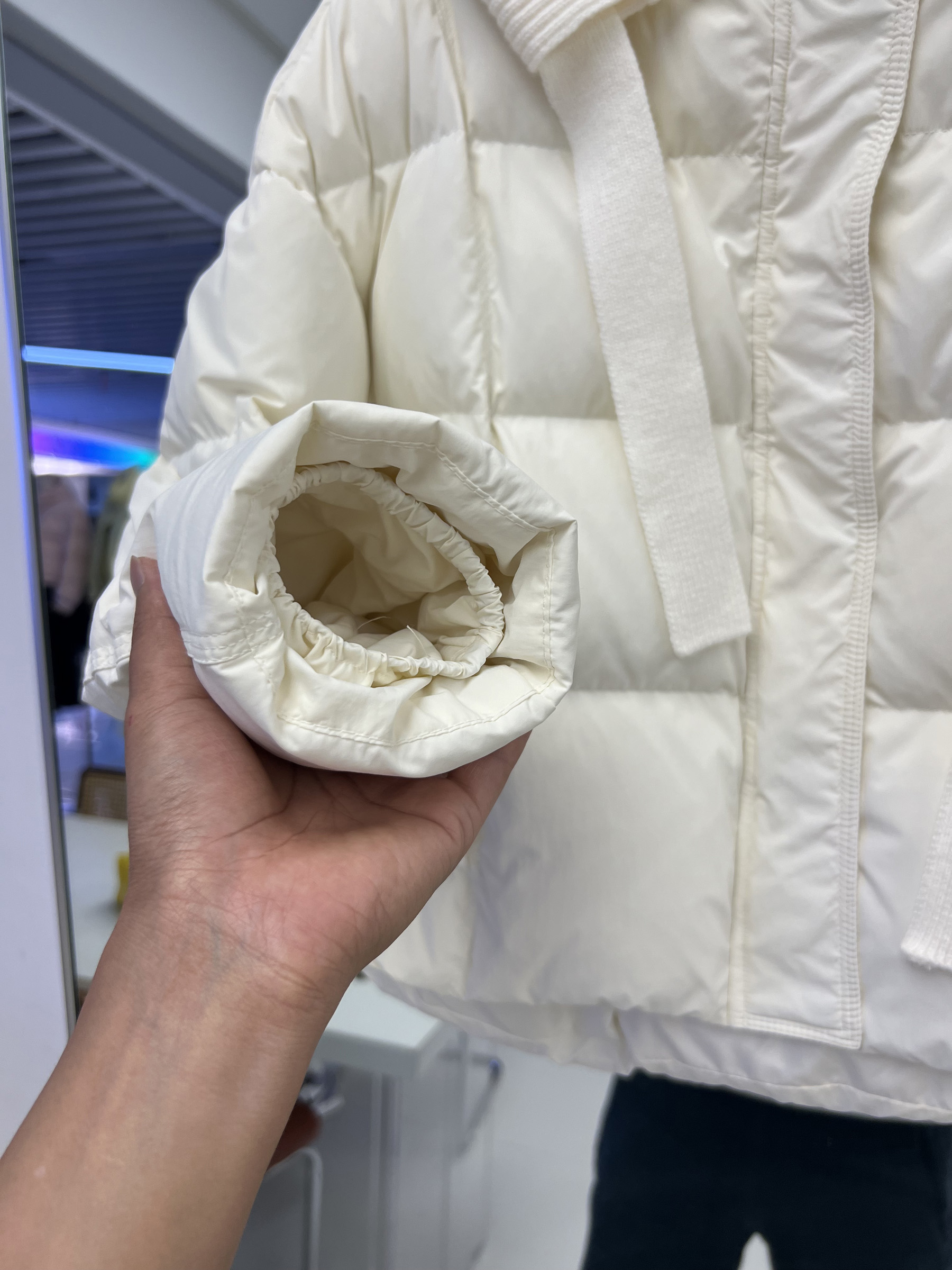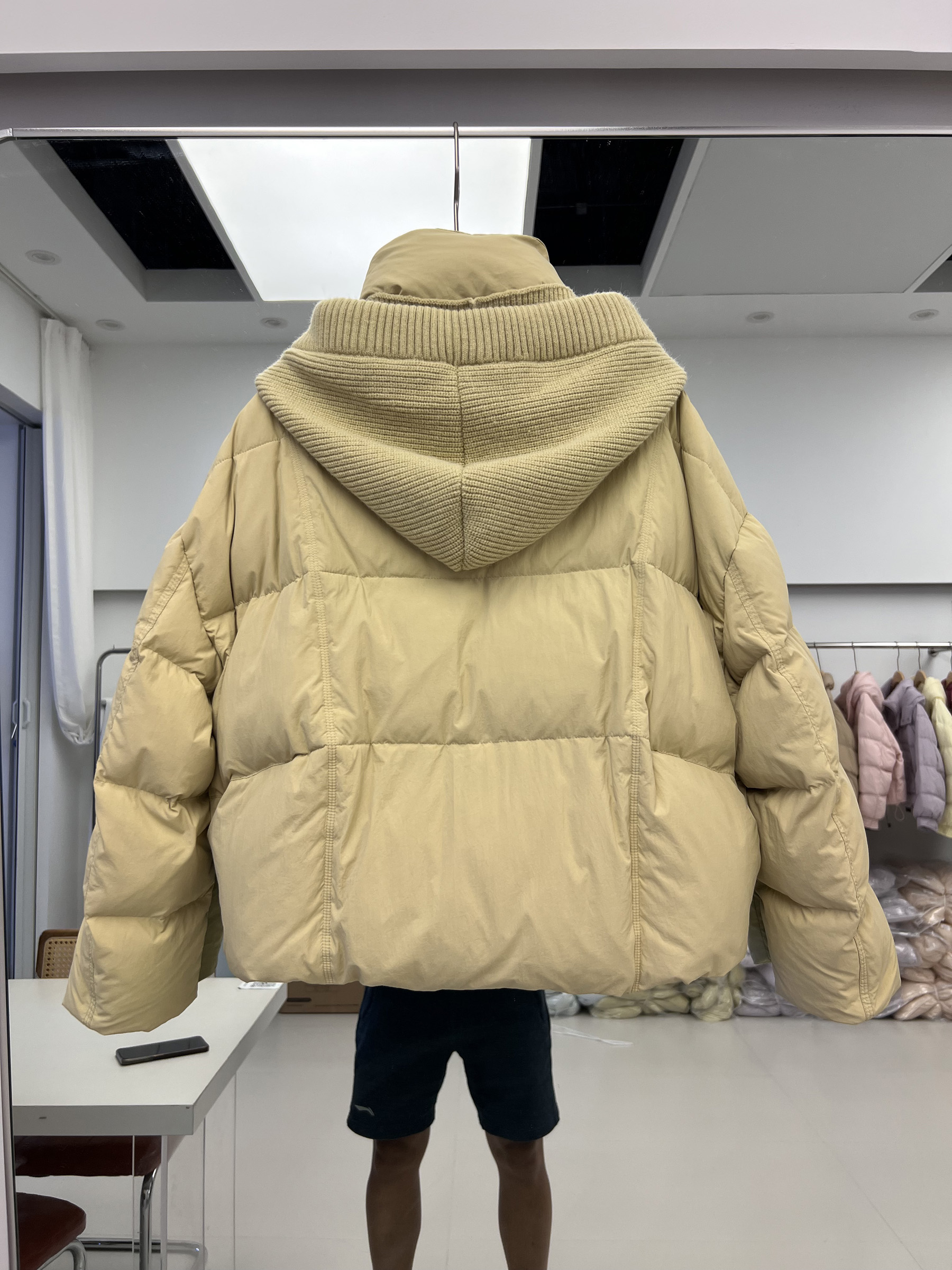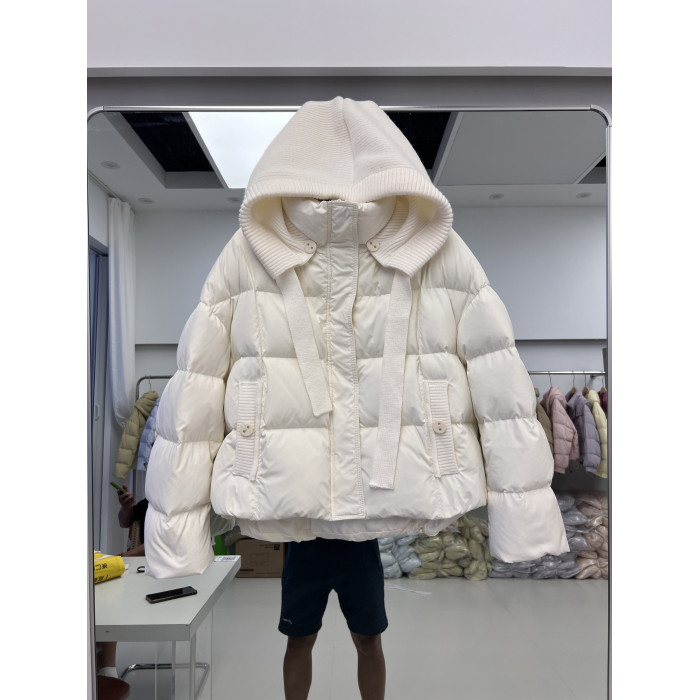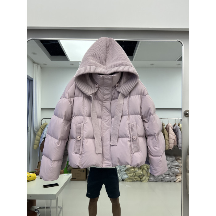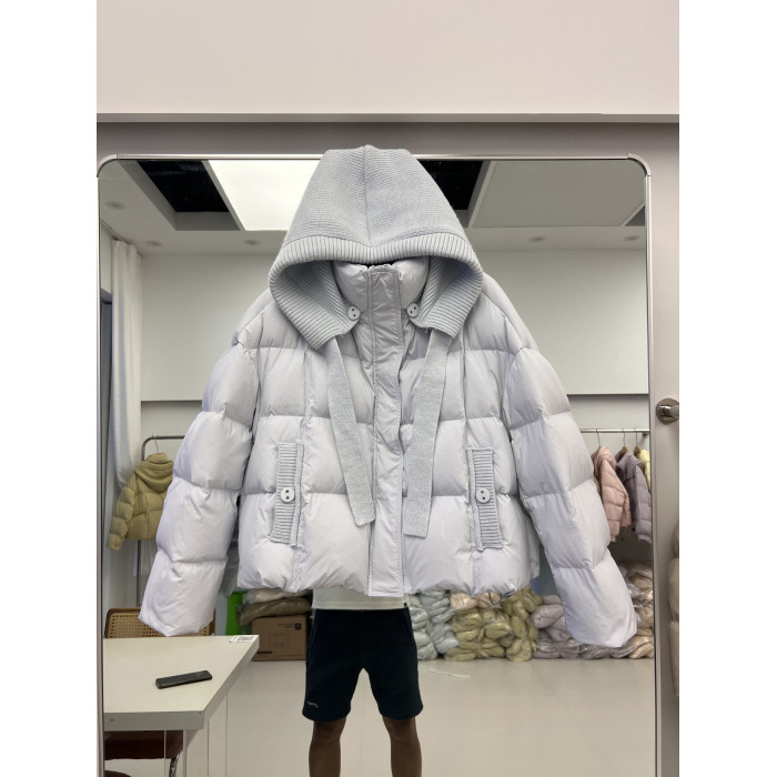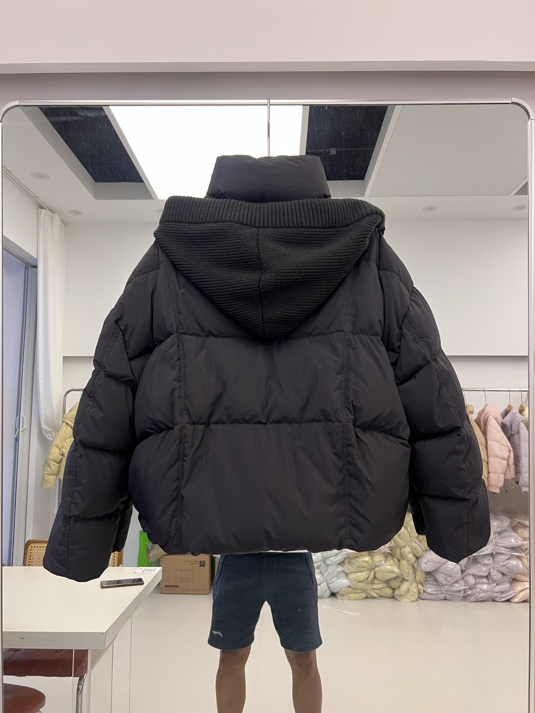 2025年新款羽絨服女短款韓版連帽時尚針織拼接白鴨絨外套潮