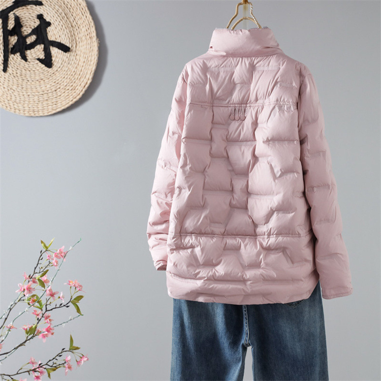 2025年秋冬新款立領休閒白鴨絨輕薄壓膠羽絨服女短款寬松百搭外套