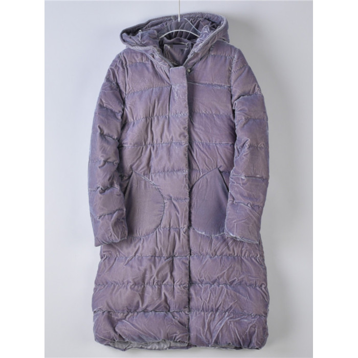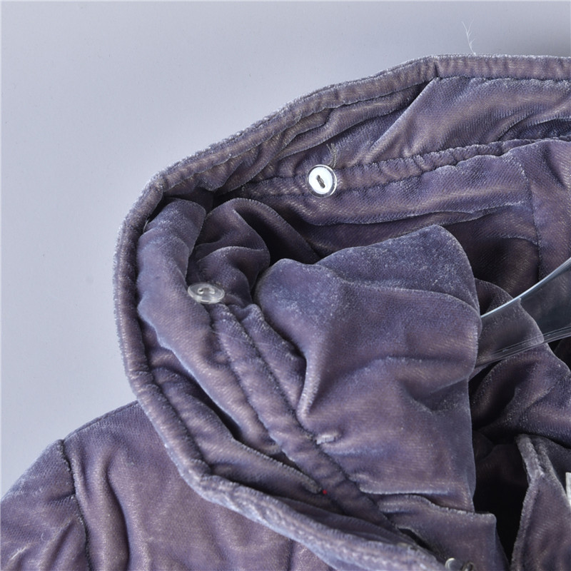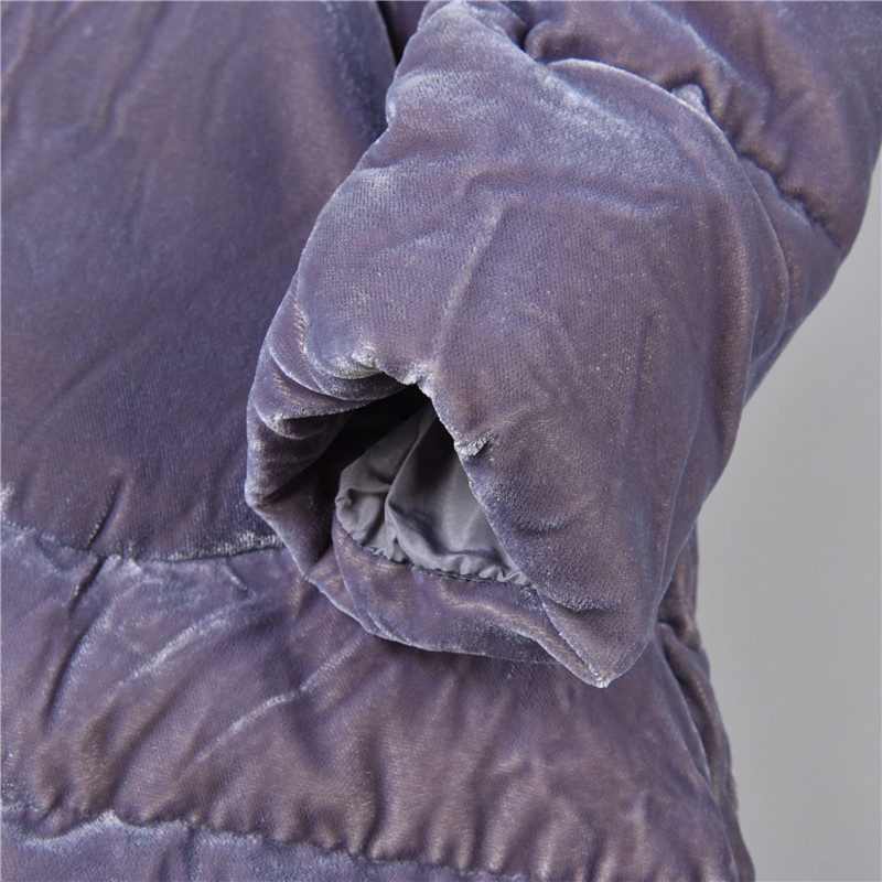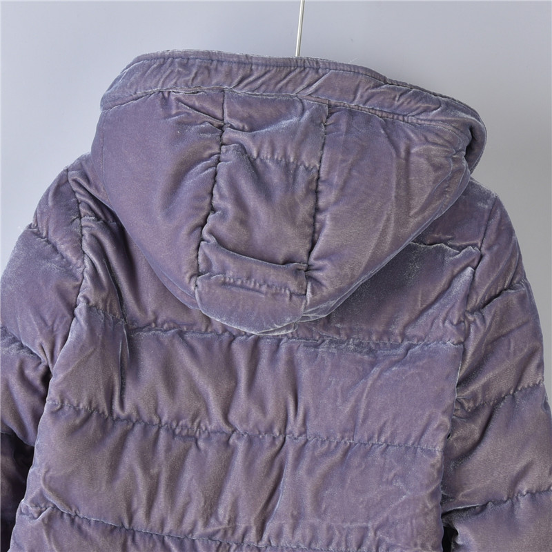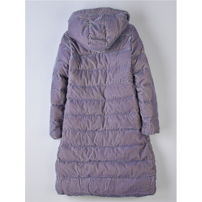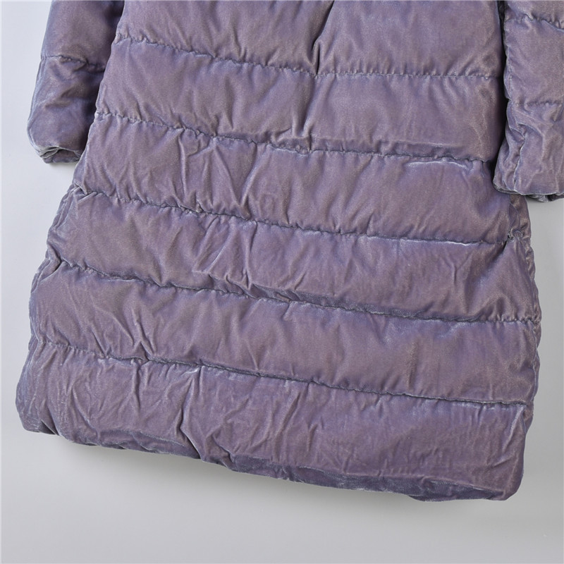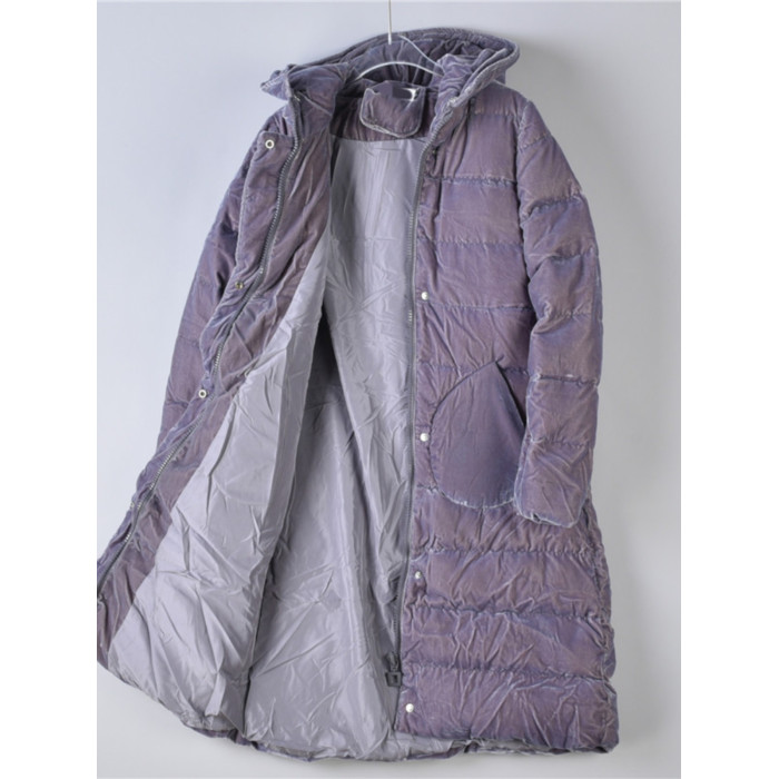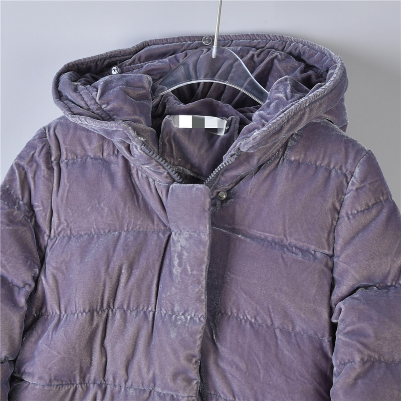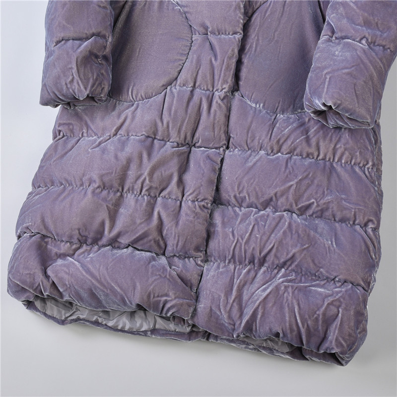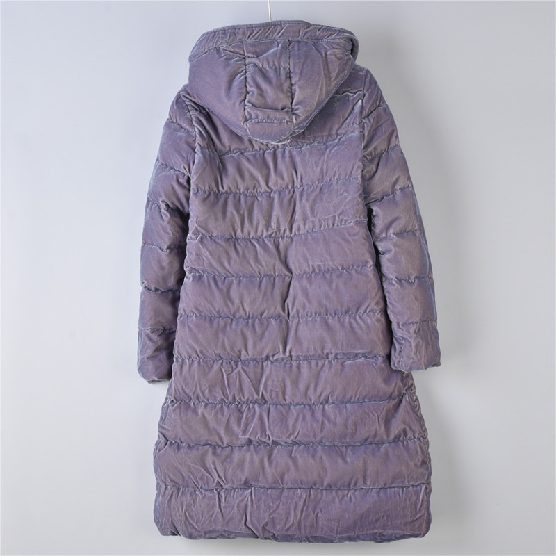 522韓版修身長款羽絨服女67099復古過膝連帽金絲絨白鴨絨中長外套