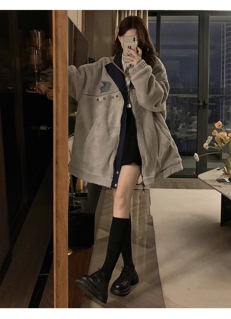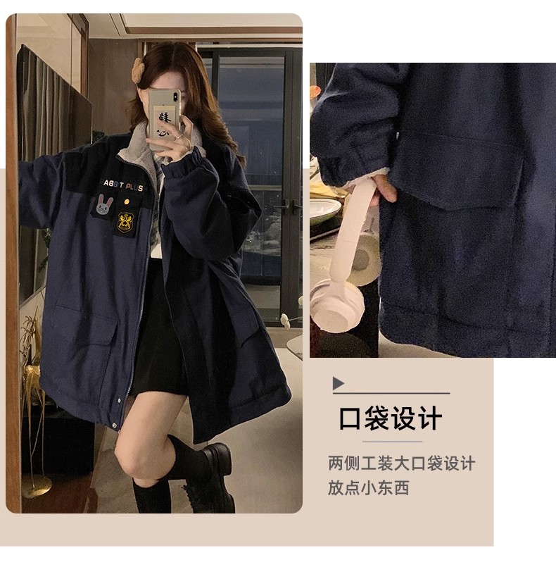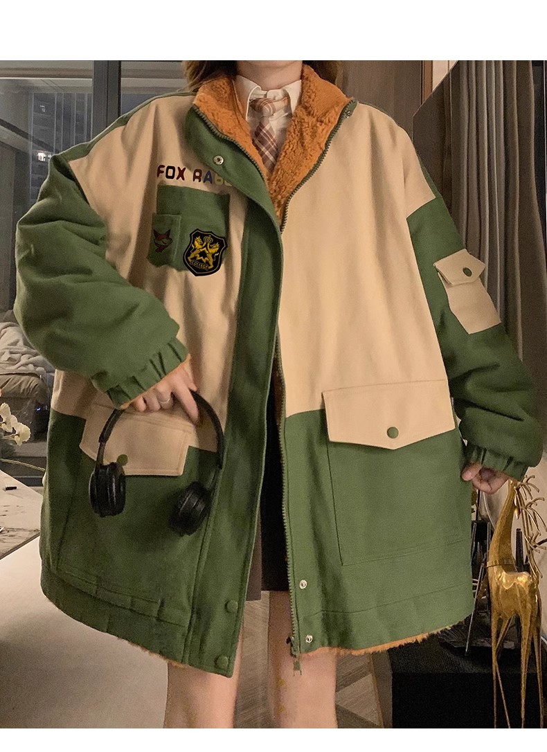羽絨棉服女冬季新款雙面穿撞色設計感ins棉衣寬松加絨學生外套潮