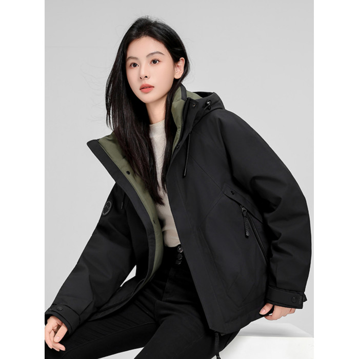 鴨鴨羽絨服男女款2025冬季短款白鴨絨休閒工裝沖鋒衣防寒大碼外套