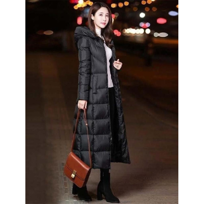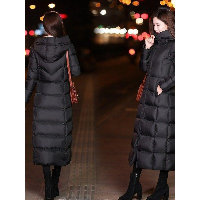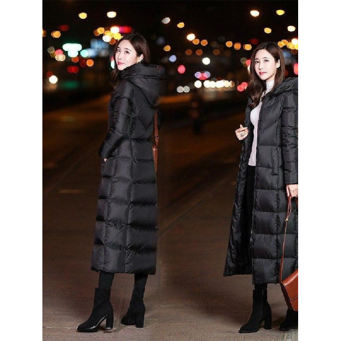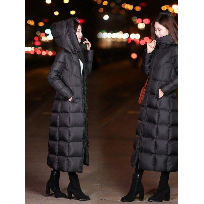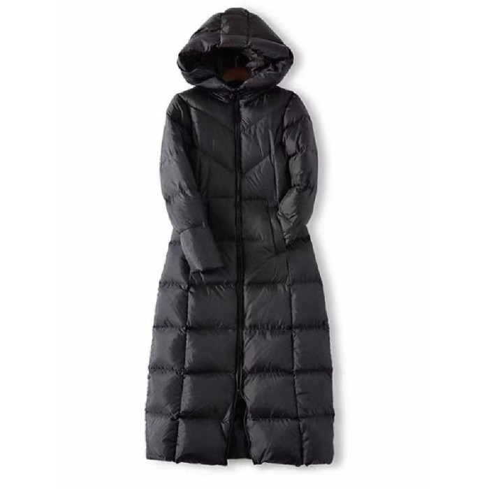 輕薄羽絨服女長款連帽過膝輕便修身大碼黑色超輕薄保暖女式外套