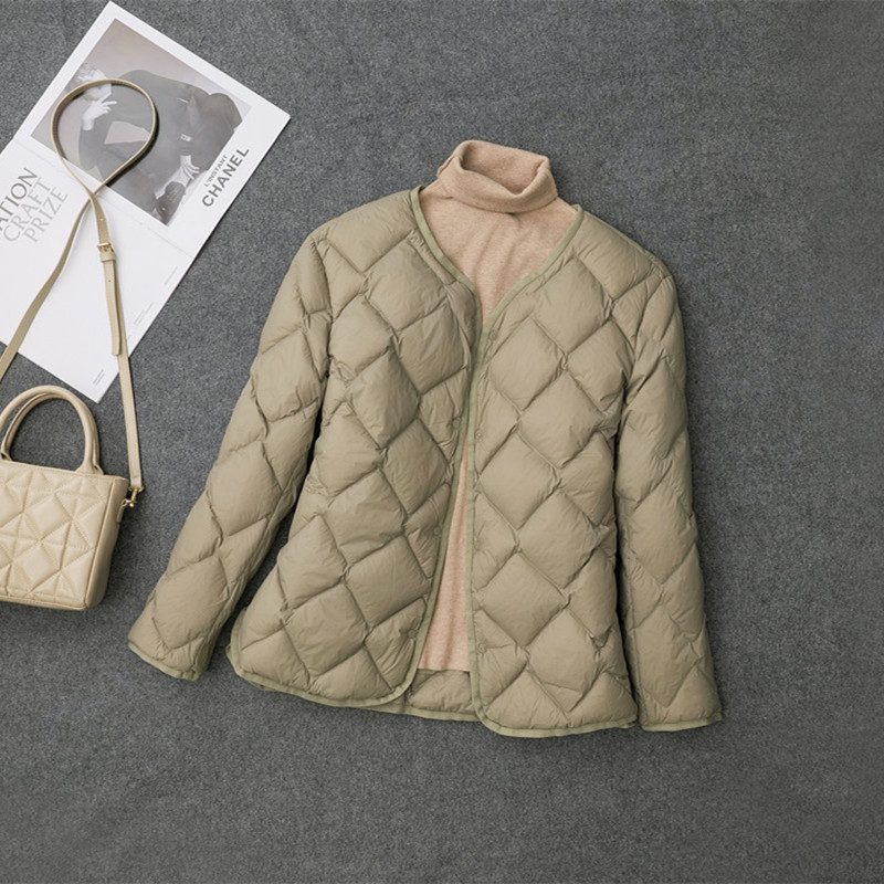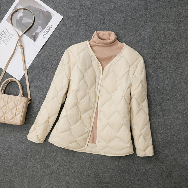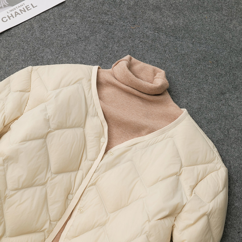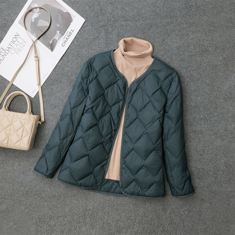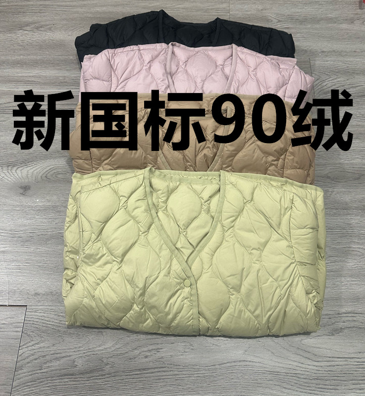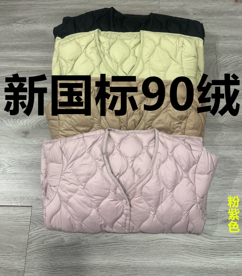 V領輕薄羽絨服女無領菱格200斤媽媽薄款內膽內穿中老年加肥加大碼