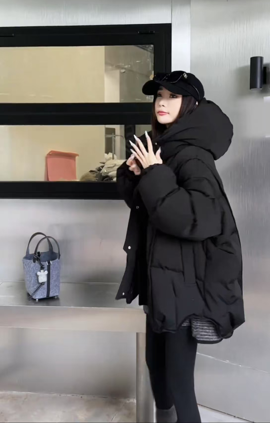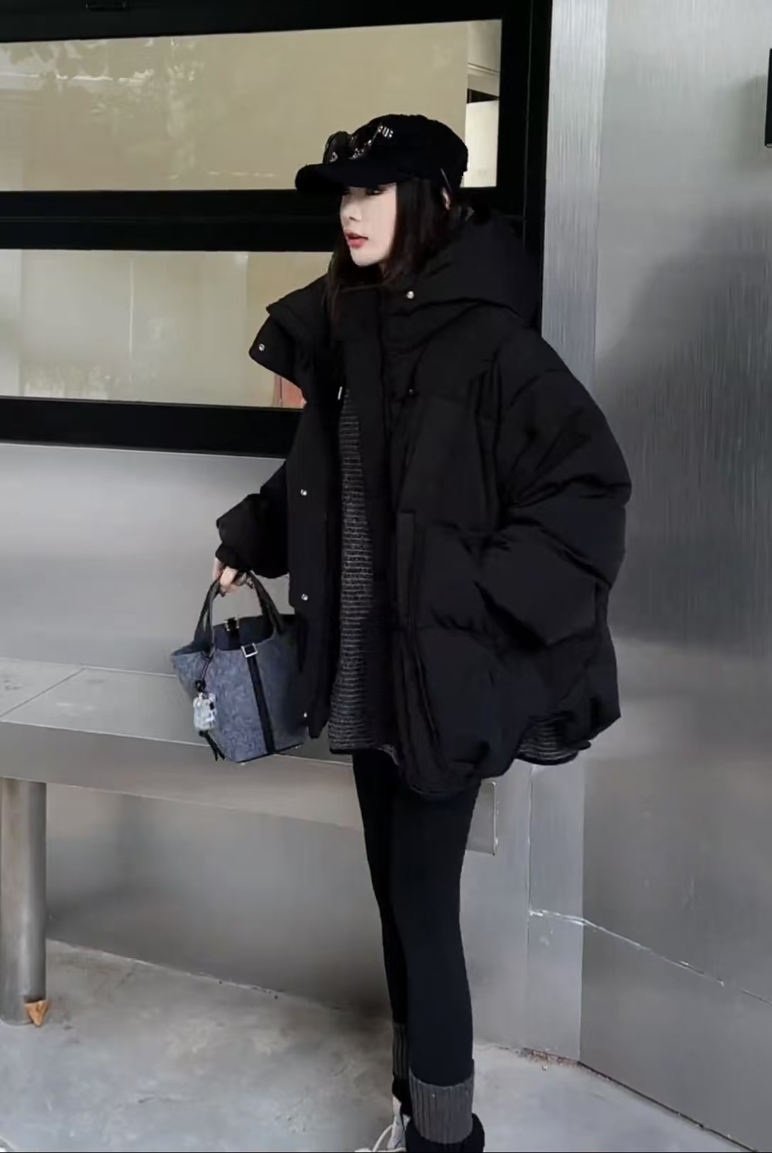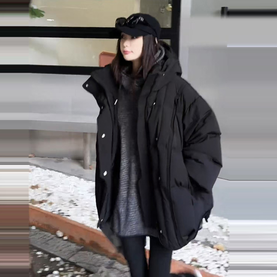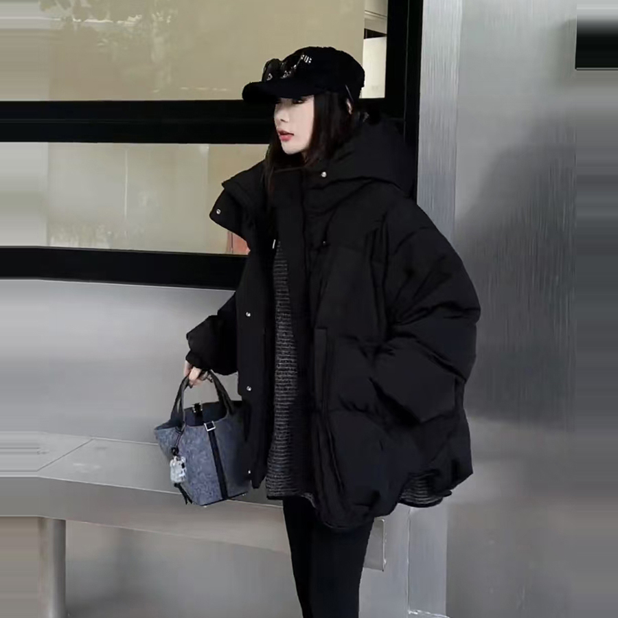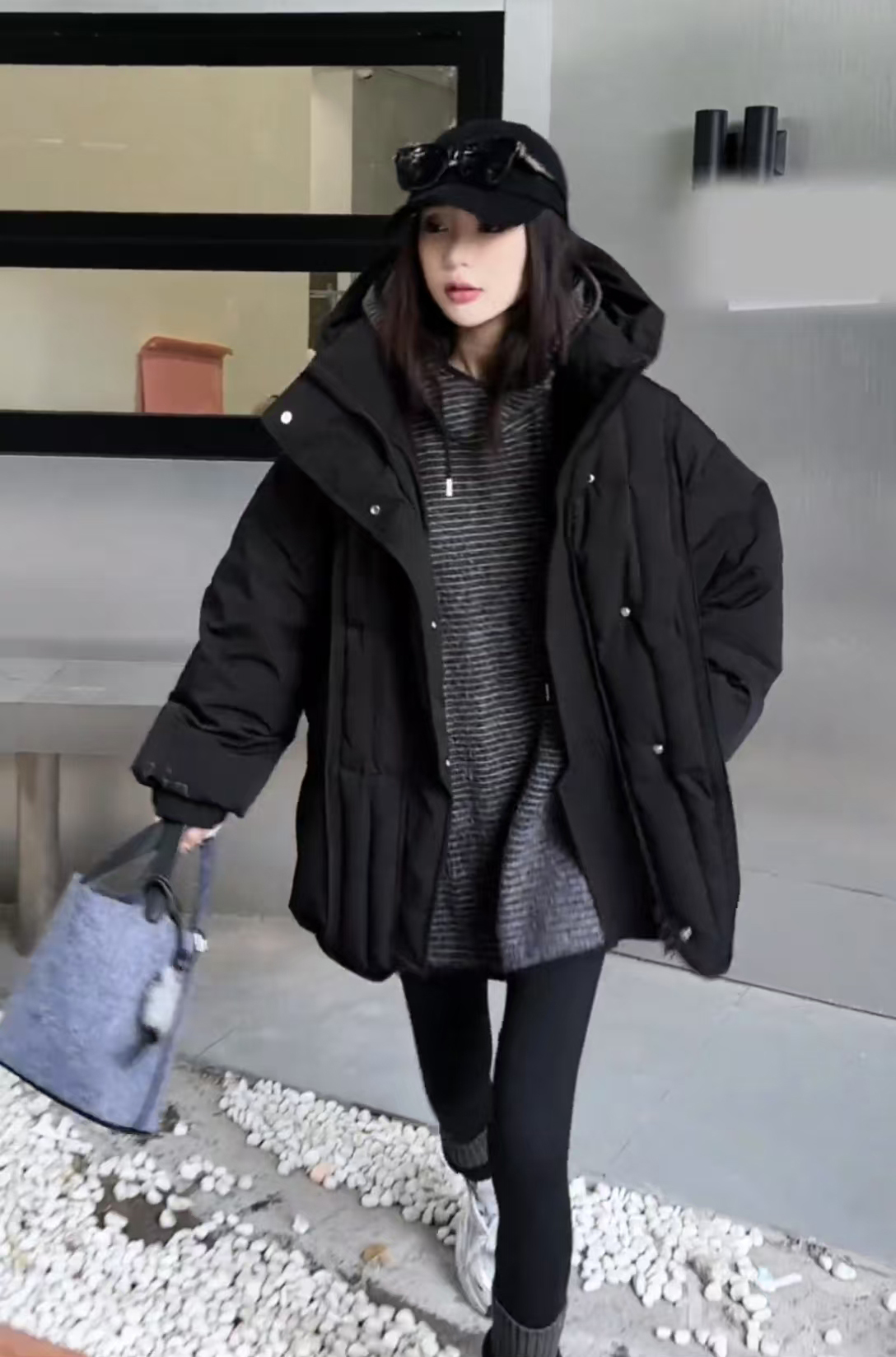 今年流行爆款外套歐貨冬季長袖設計感時尚龜背短款加厚連帽羽絨服