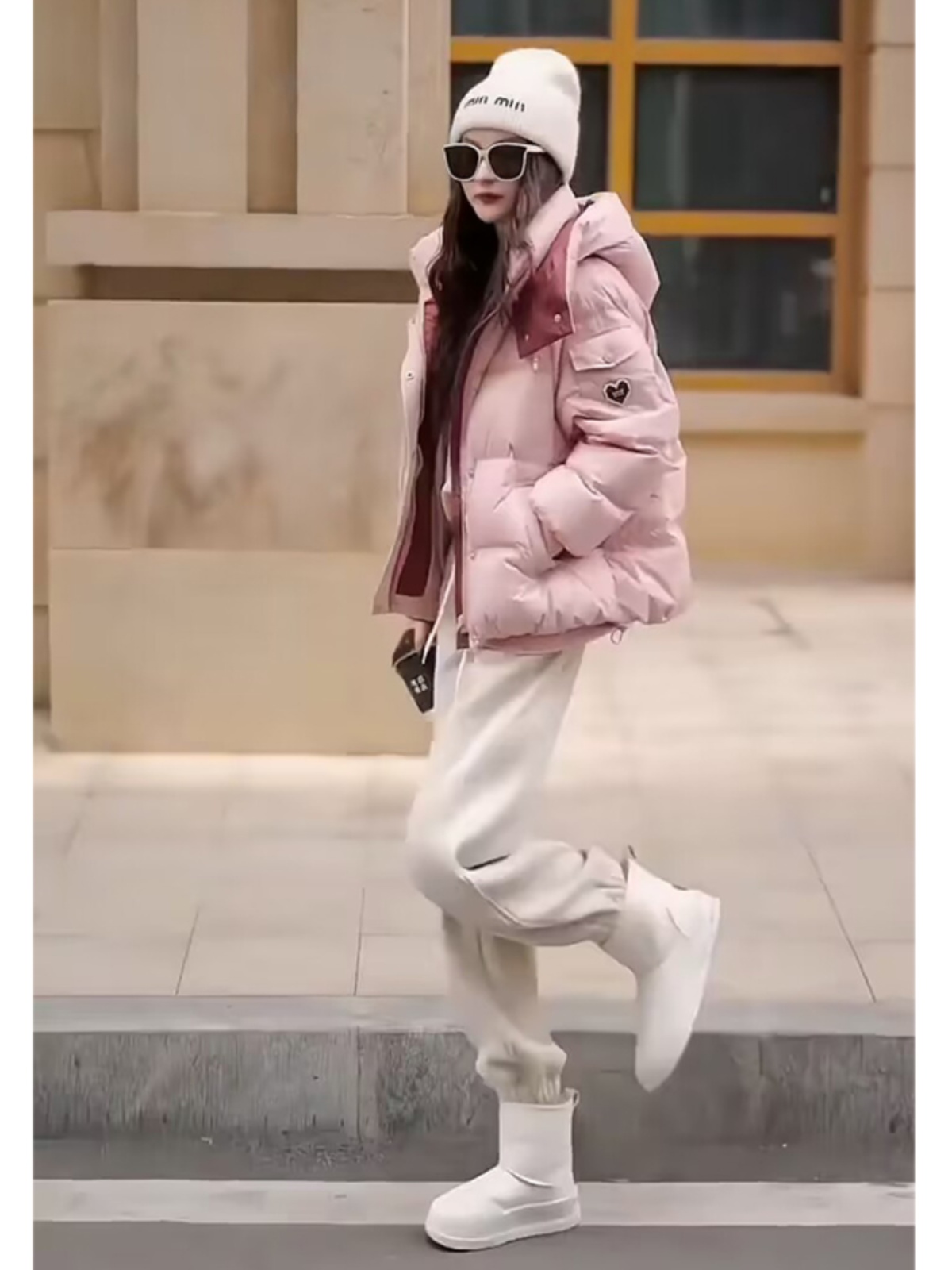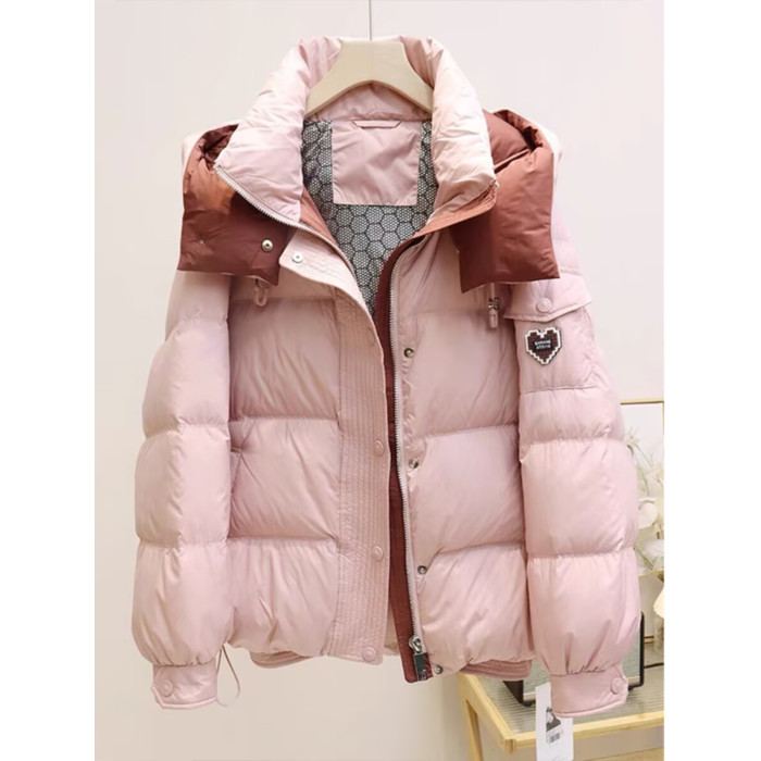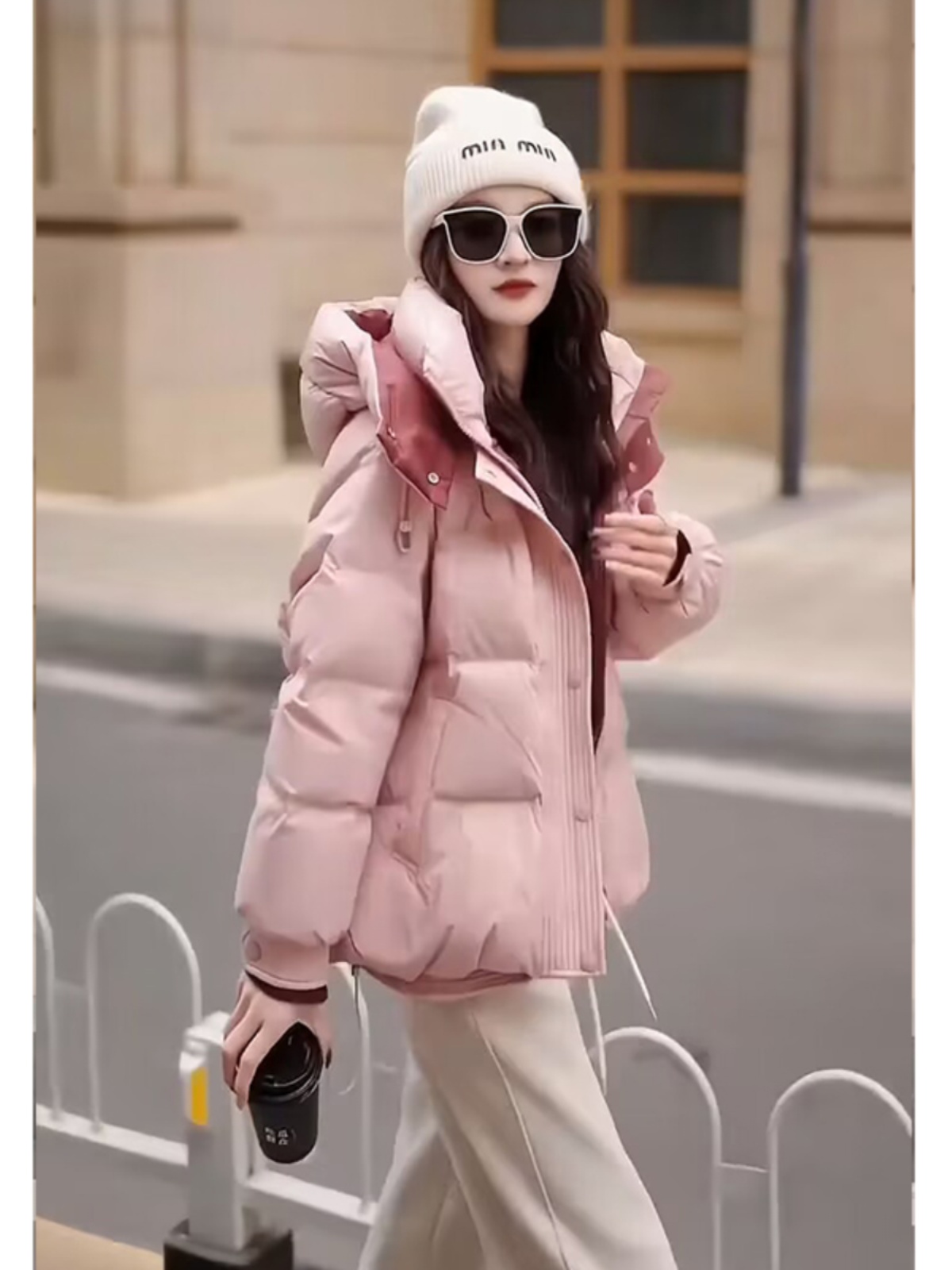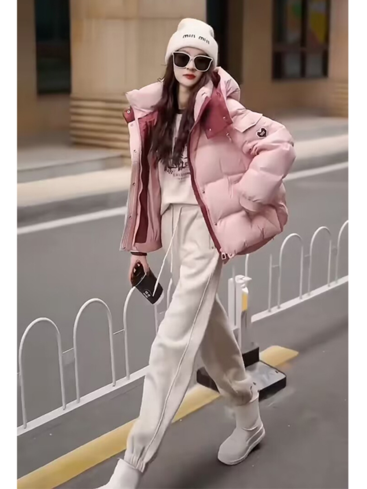 洋氣小香風羽絨棉棉服女秋冬裝多巴胺撞色輕薄白鴨絨加厚保暖外套