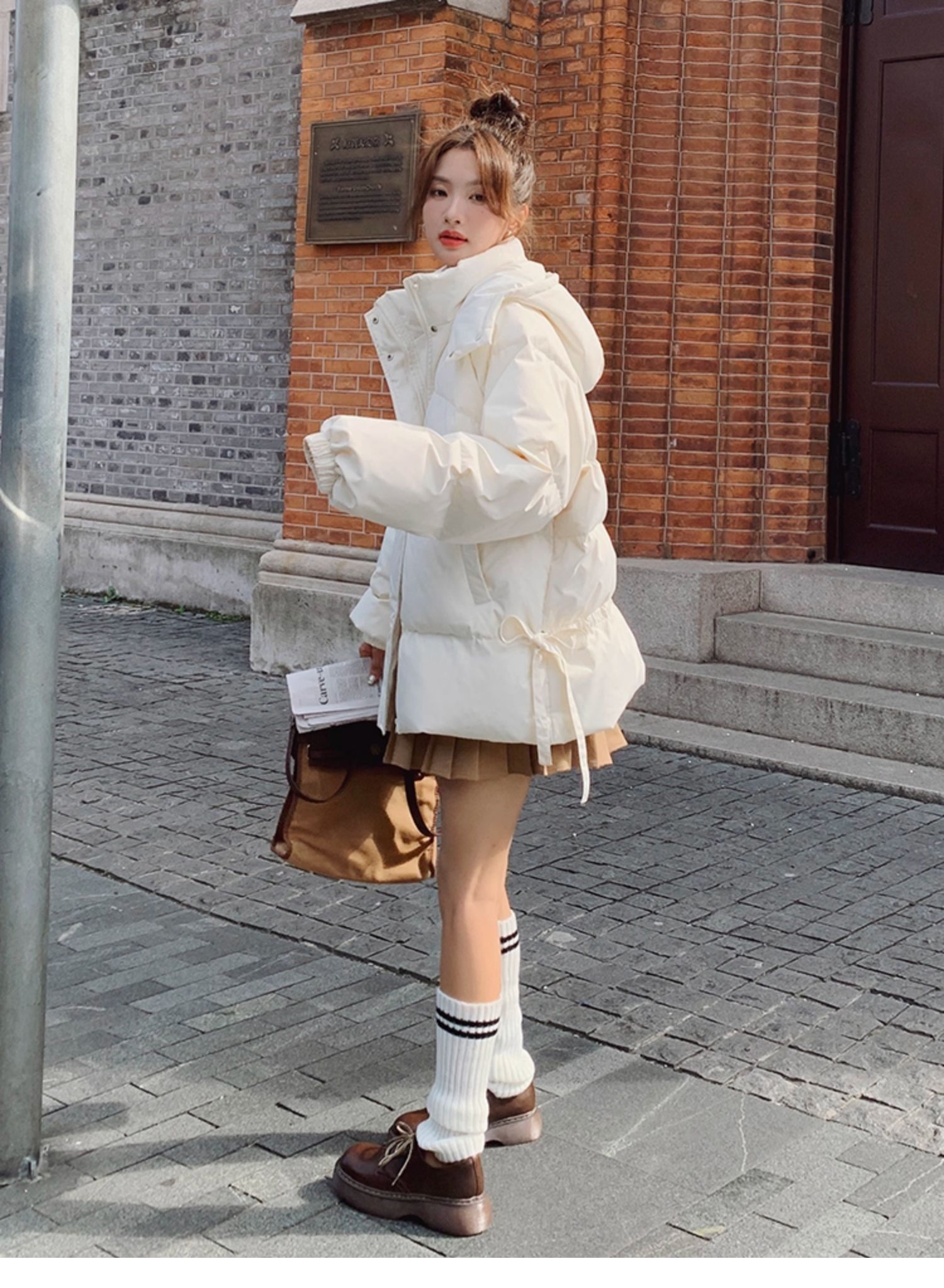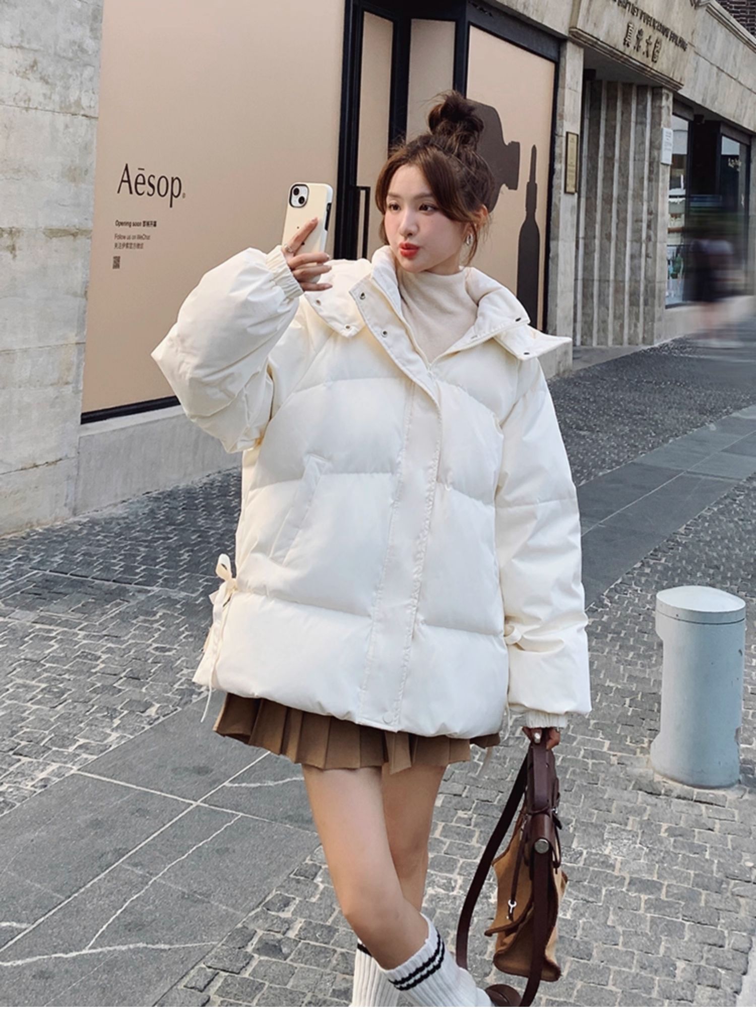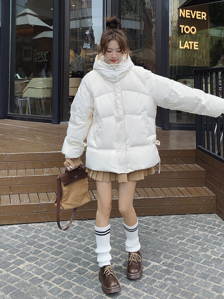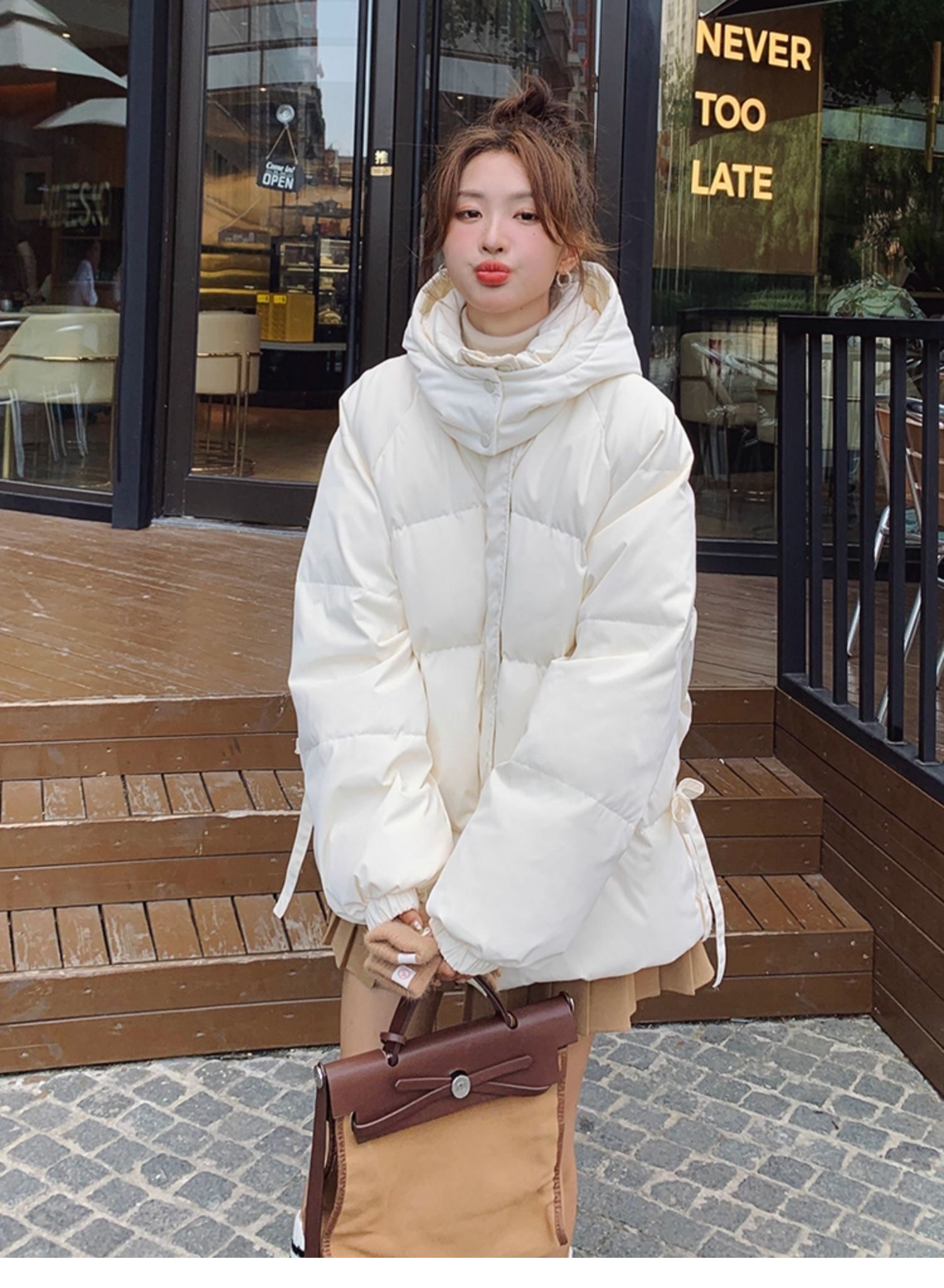 羽絨服女冬季2025新款加厚白鴨絨短款寬松連帽小個子時尚工裝外套