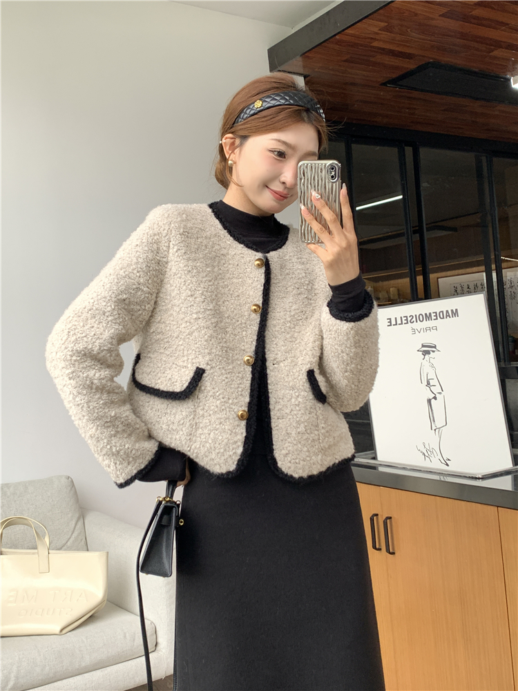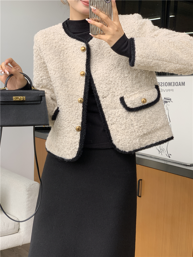 圈圈羊毛90白鴨絨小香風羽絨服外套女2025年冬季新韓版小個子上衣