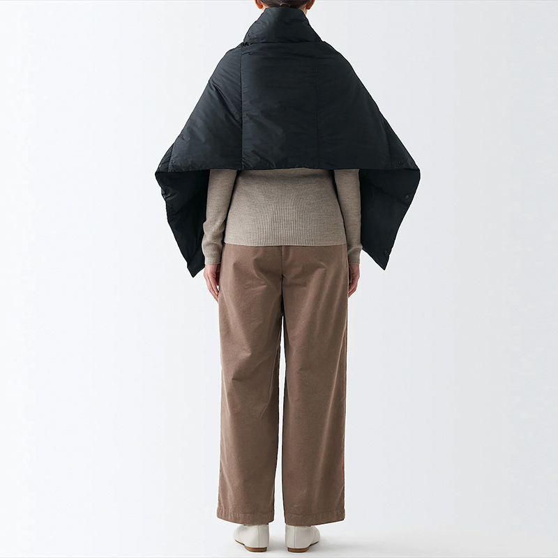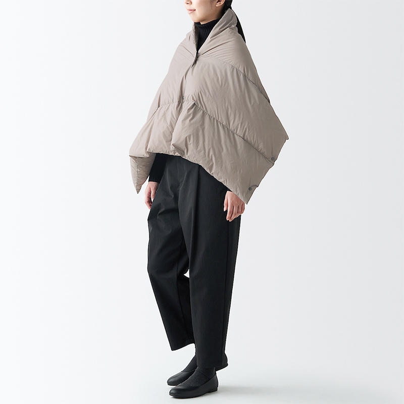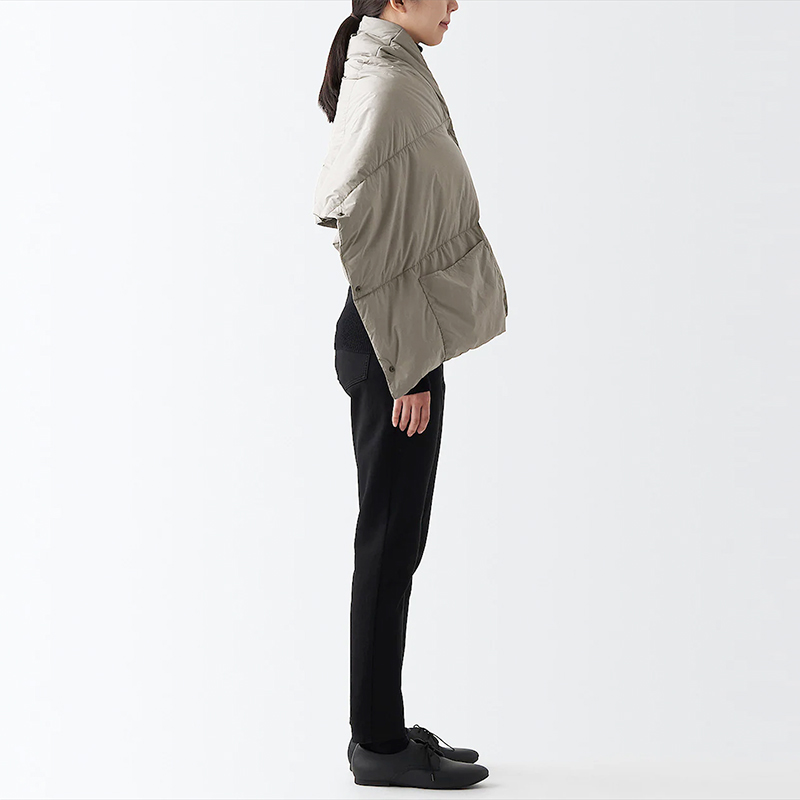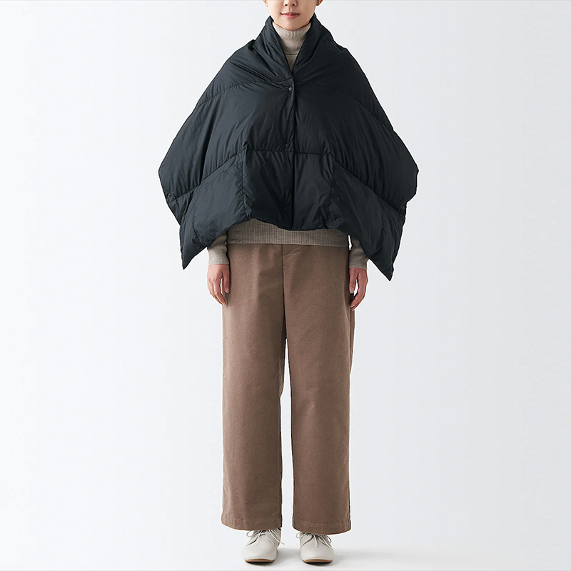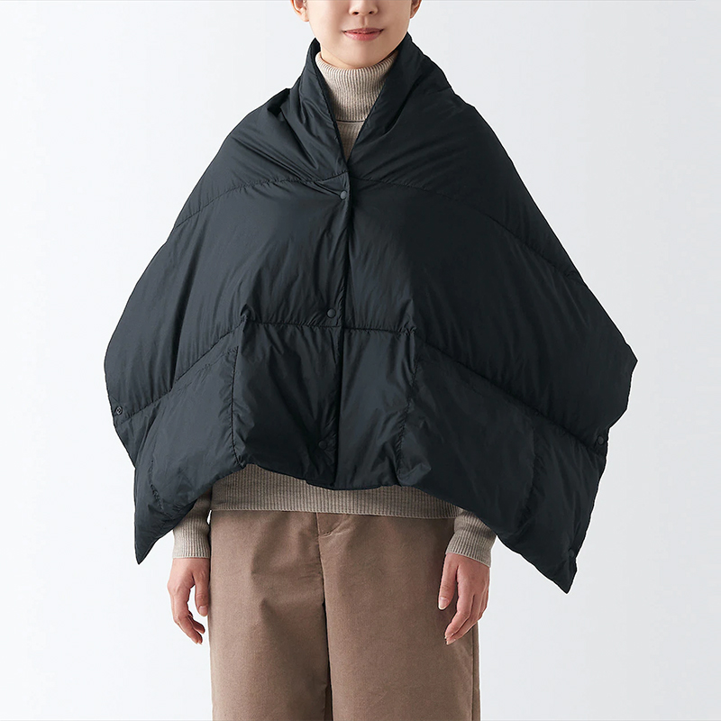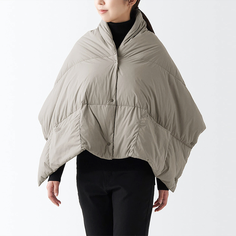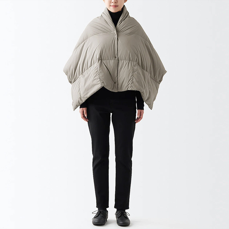 無印日式風披肩女秋冬新款輕量可攜式羽絨外搭加厚保暖鬭篷圍巾