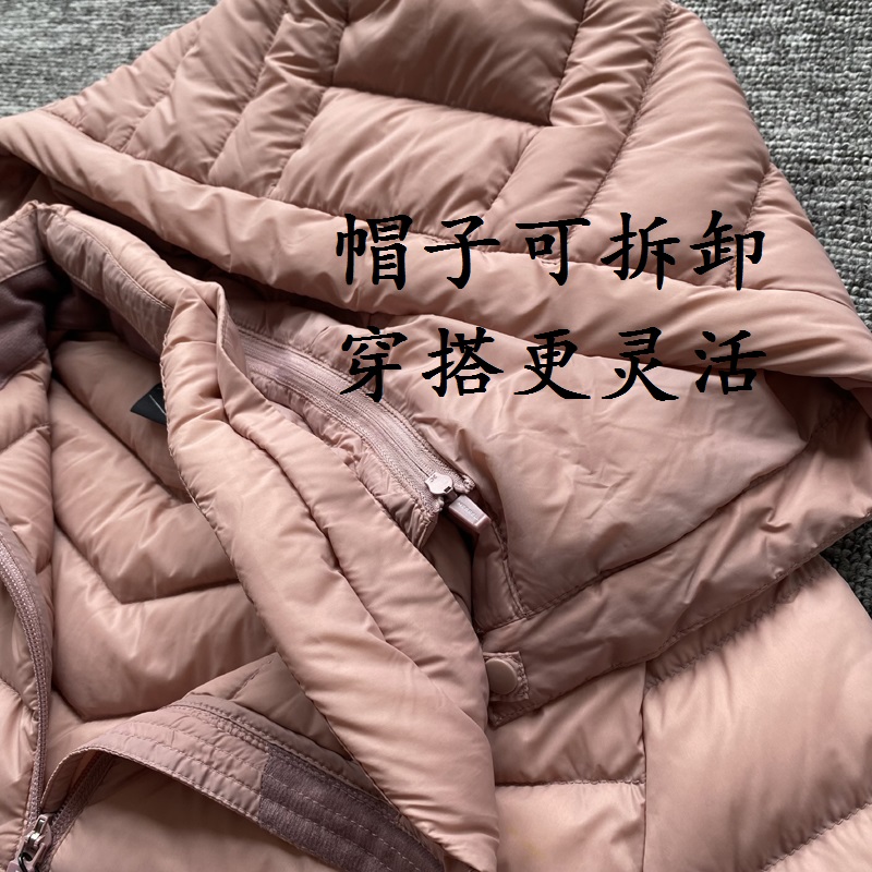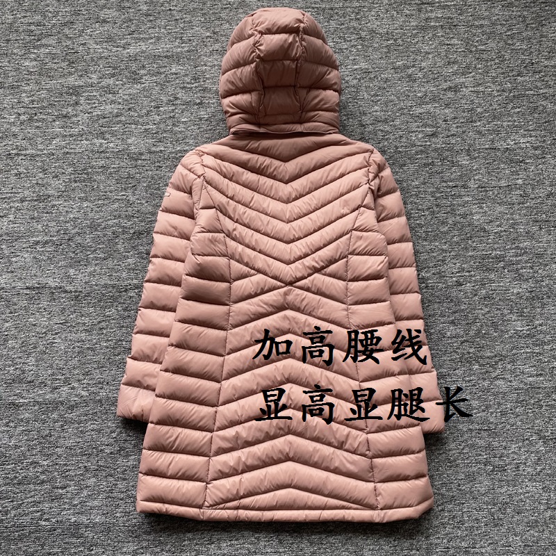 韓國原單 女款鴨絨中長款可拆卸帽羽絨服 輕薄上衣百搭顯瘦