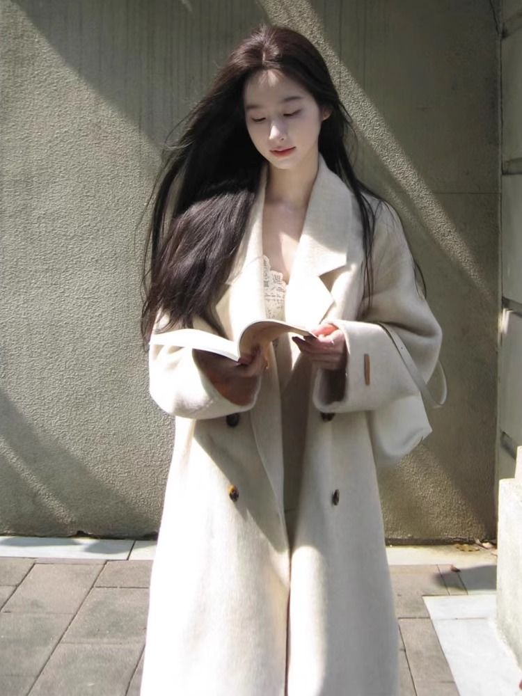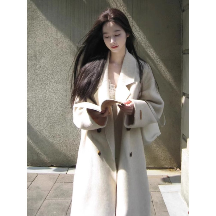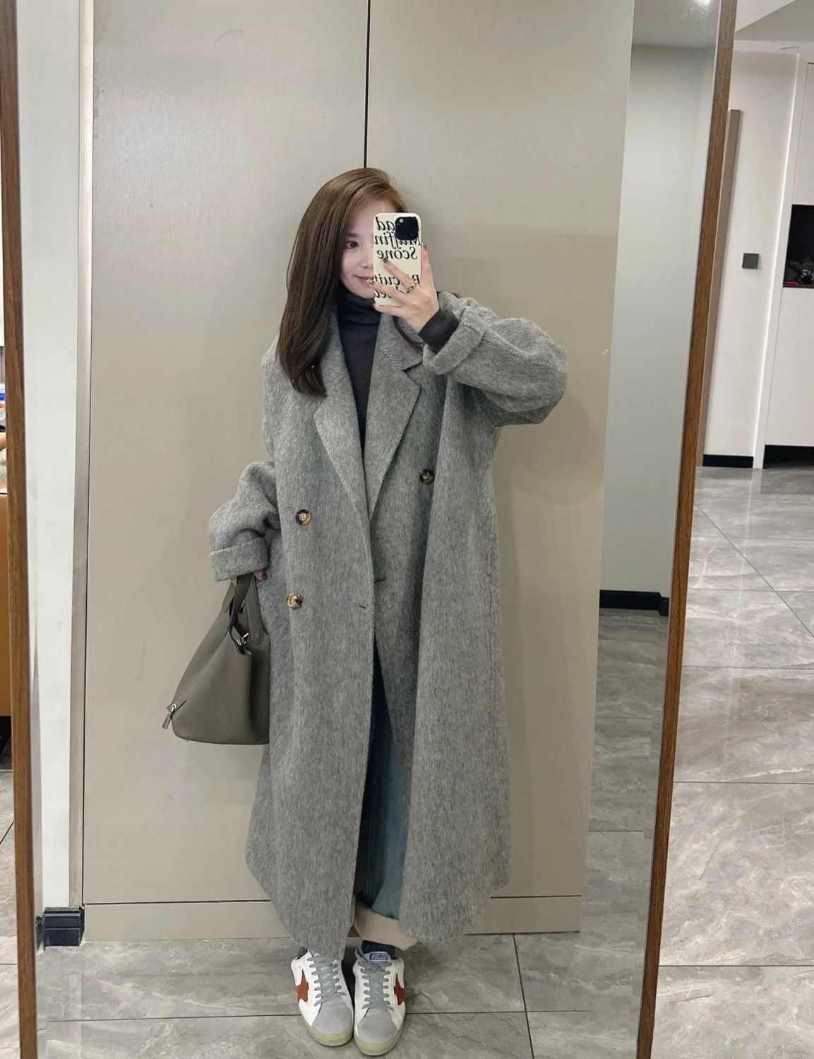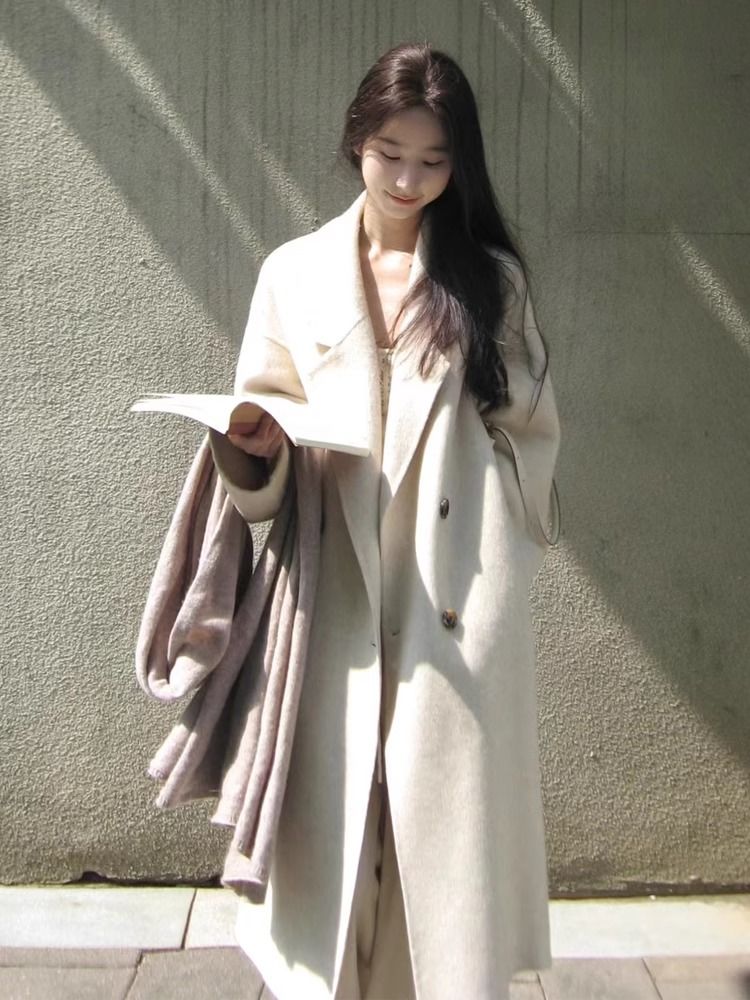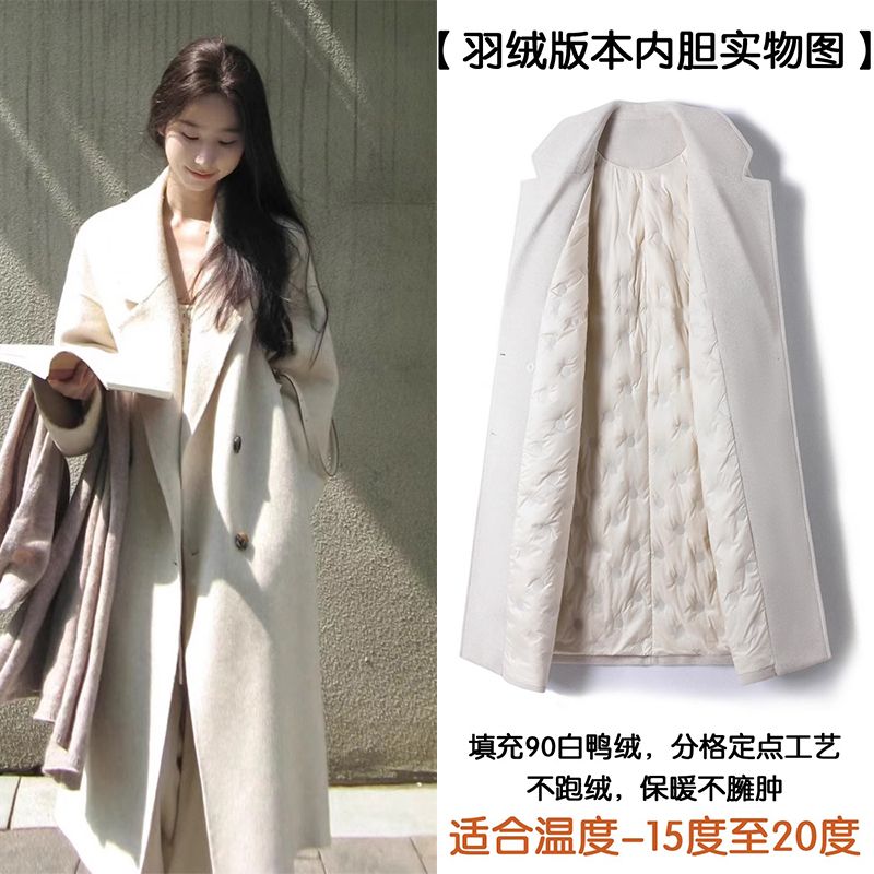 韓系燕麥色羽絨服內膽毛呢外套女秋冬季中長款小個子寬松呢子大衣