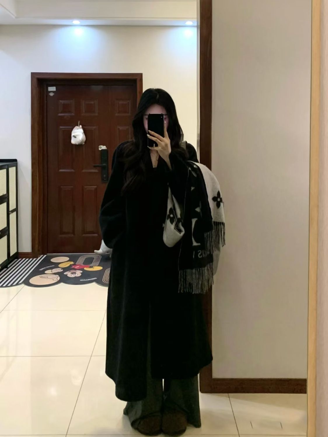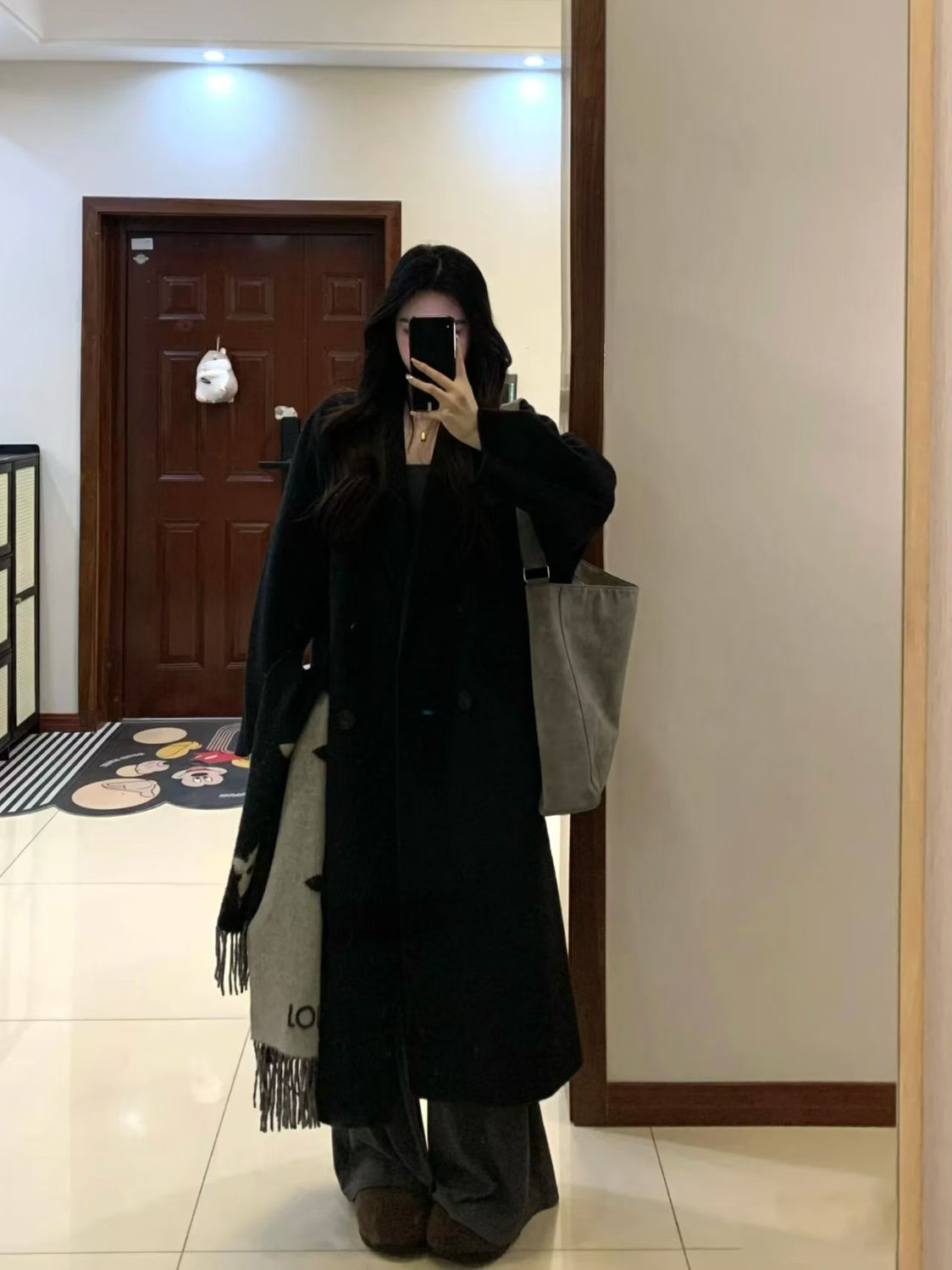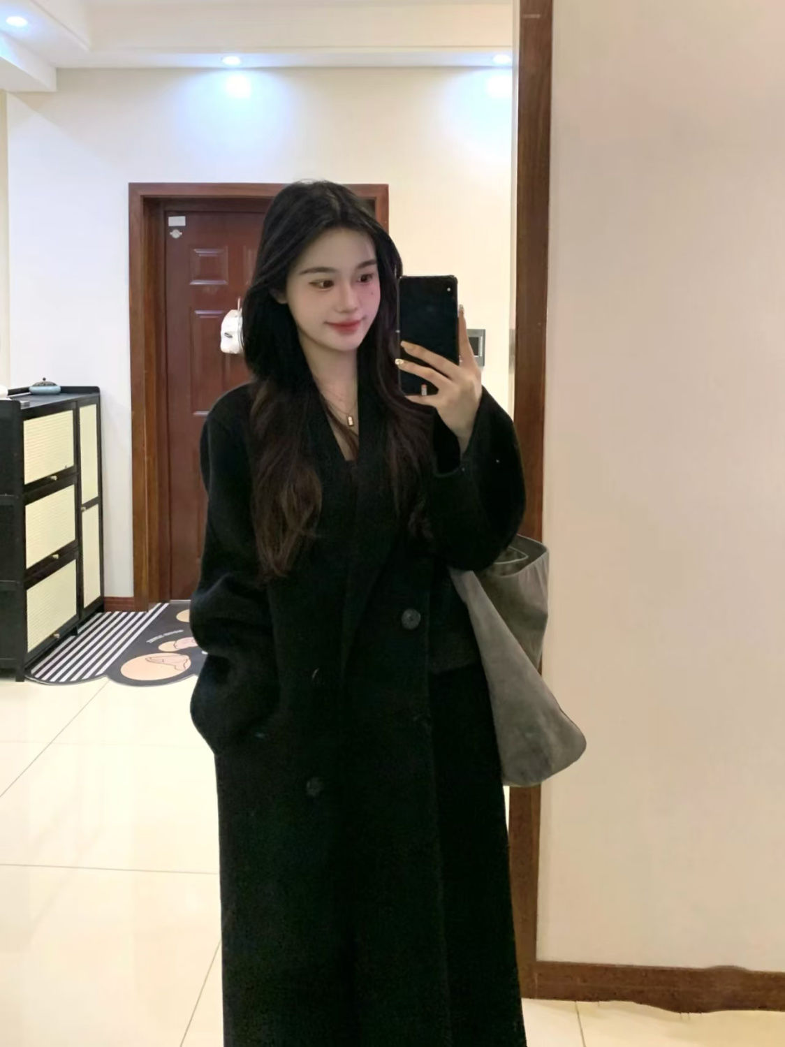 韓系燕麥色羽絨服內膽毛呢外套女秋冬季中長款小個子寬松呢子大衣