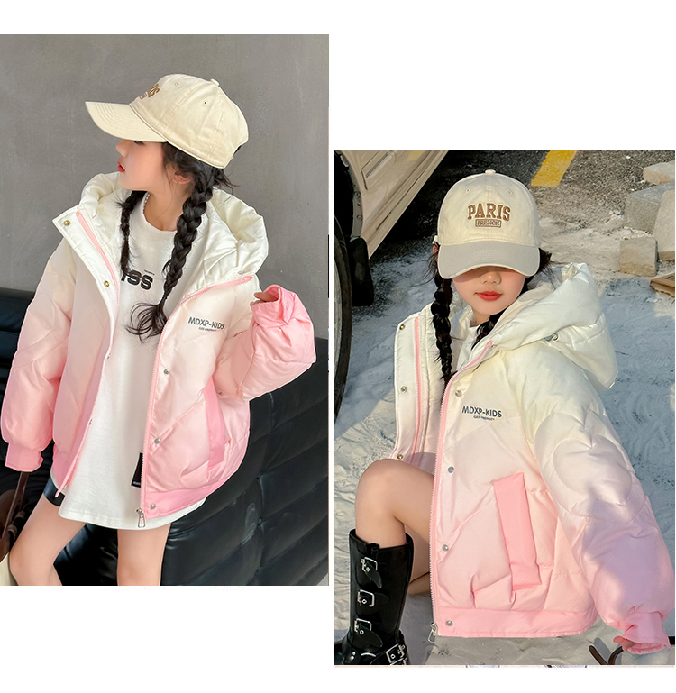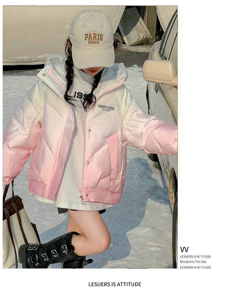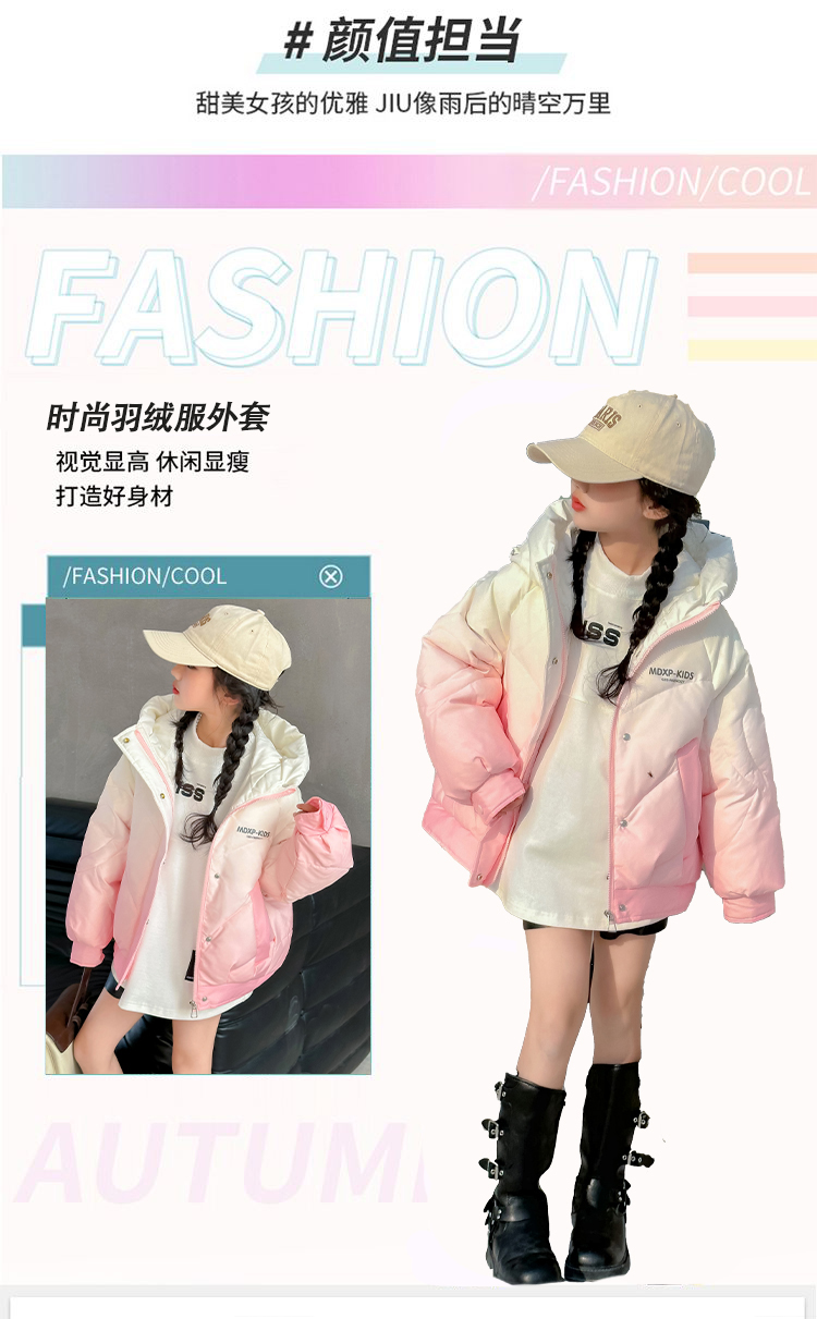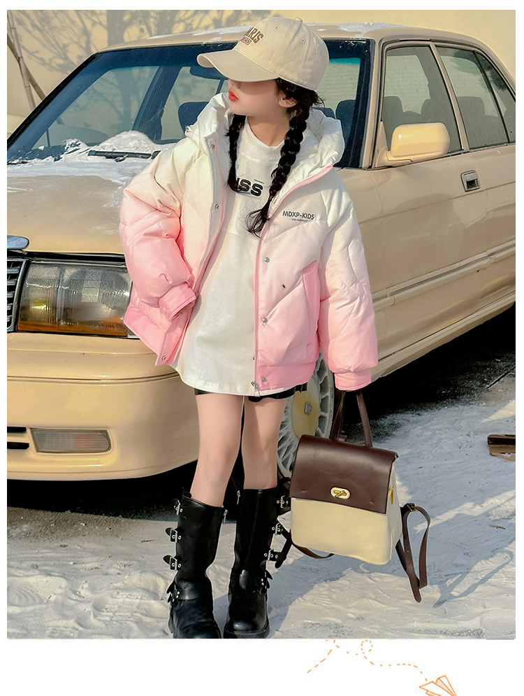 女大童漸變色白鴨絨羽絨服冬季2025新款洋氣女孩短款加厚冬裝外套