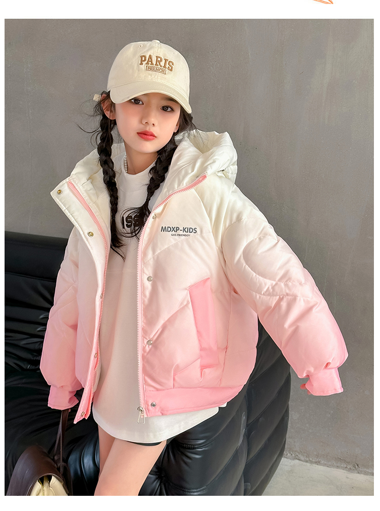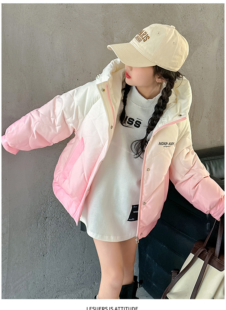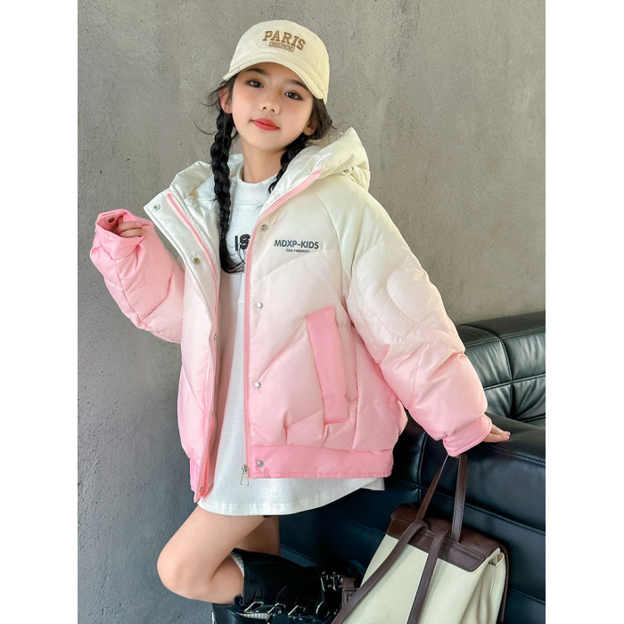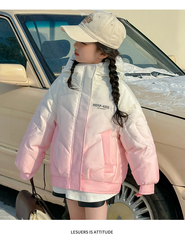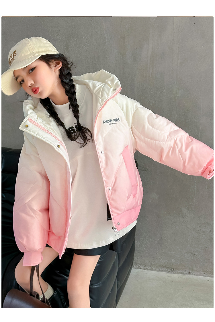女大童漸變色白鴨絨羽絨服冬季2025新款洋氣女孩短款加厚冬裝外套