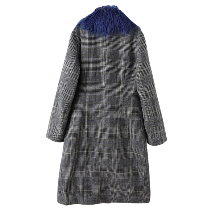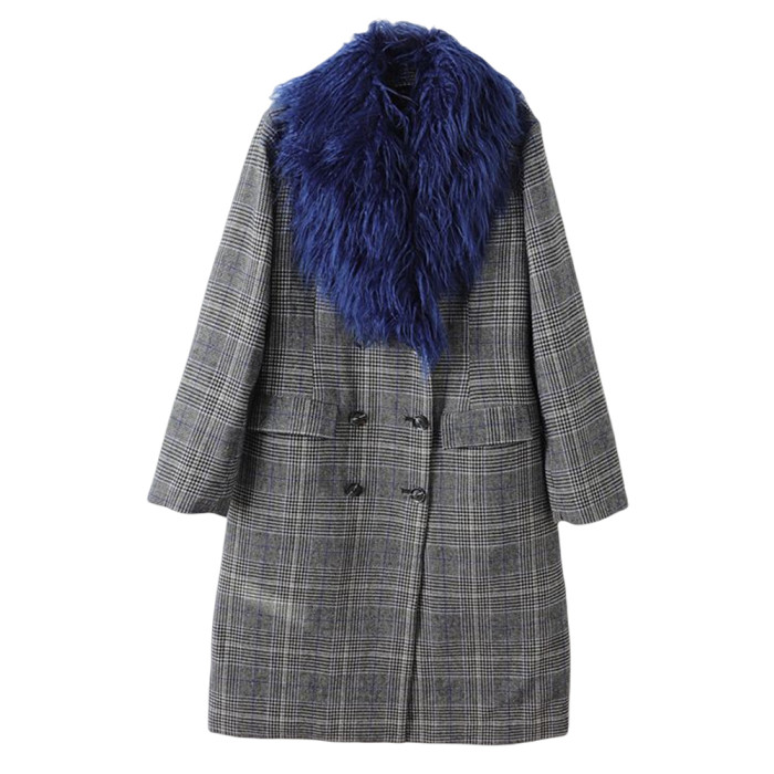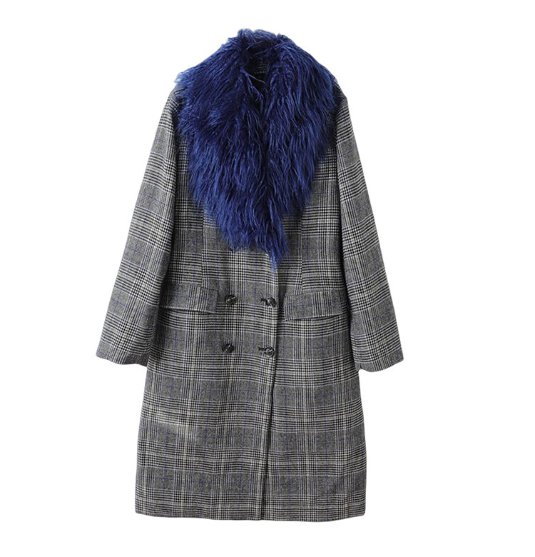 諾諾E站【GS】冬裝 女式雙排口毛呢外套毛領可拆休閒長款外套