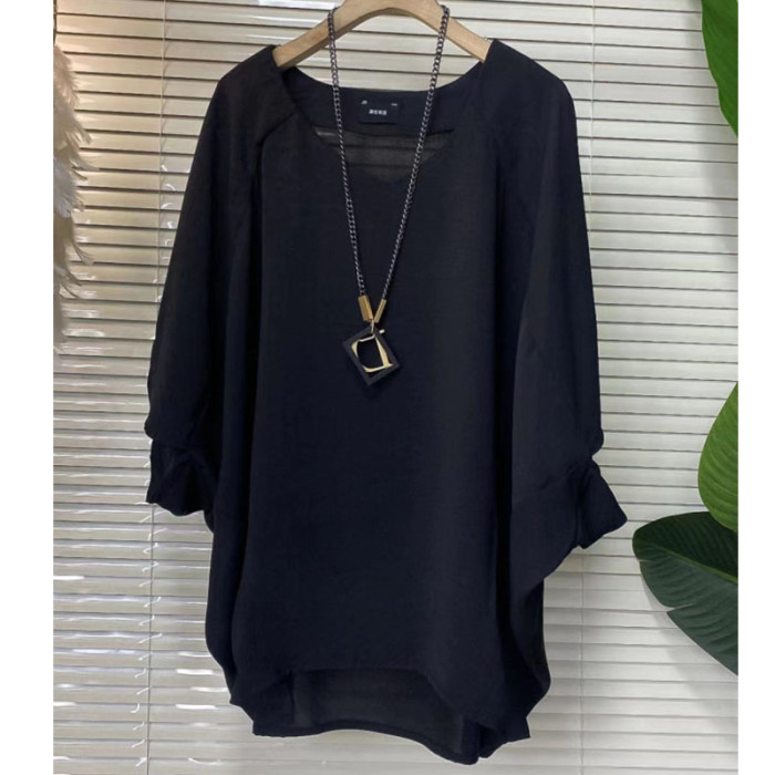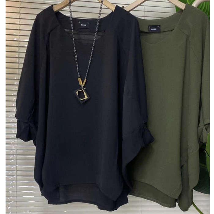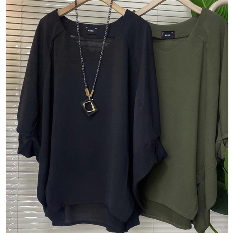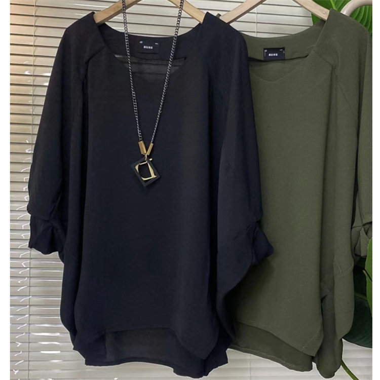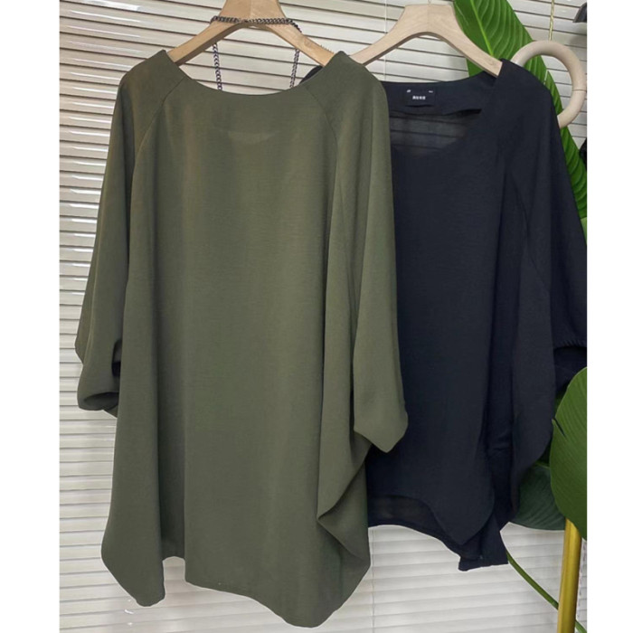 胖妹妹夏季休閒時尚洋氣大衫女韓版大碼遮肉減齡蝴蝶袖純色懶人衫