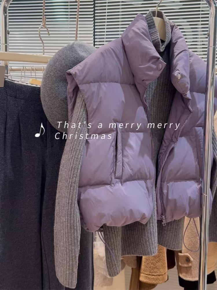 牛X貨 巨炸裂!紫色短款羽絨服外套女冬季寬松立領白鴨絨背心馬甲