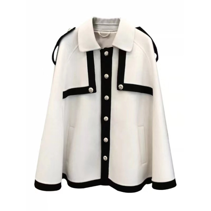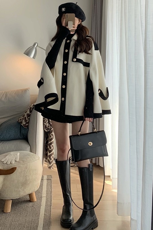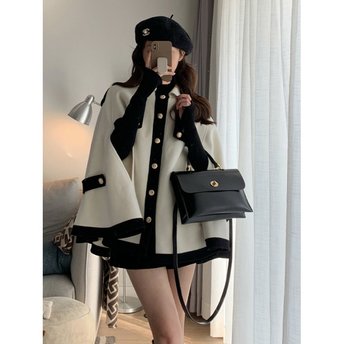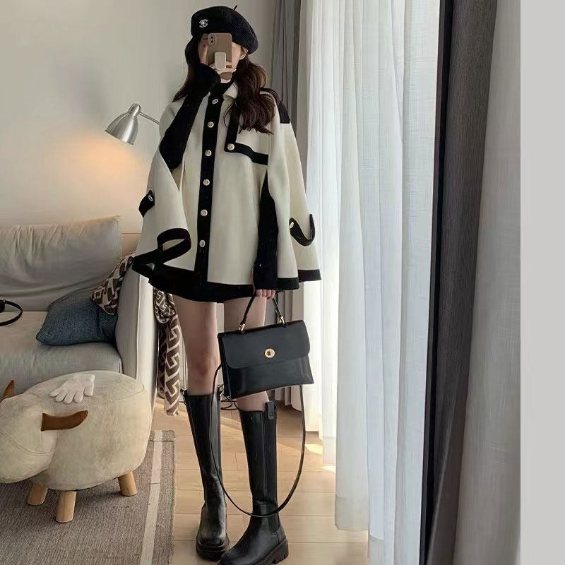 小香風鬭篷外套女2025秋冬新款赫本風高級感寬松羊絨法式短款大衣