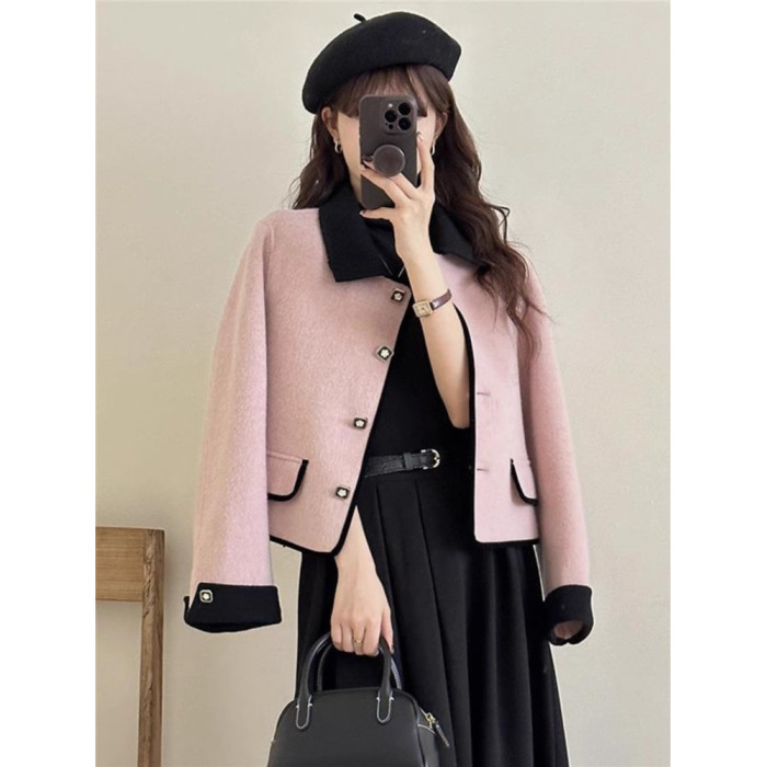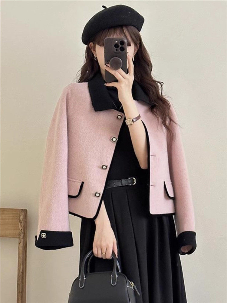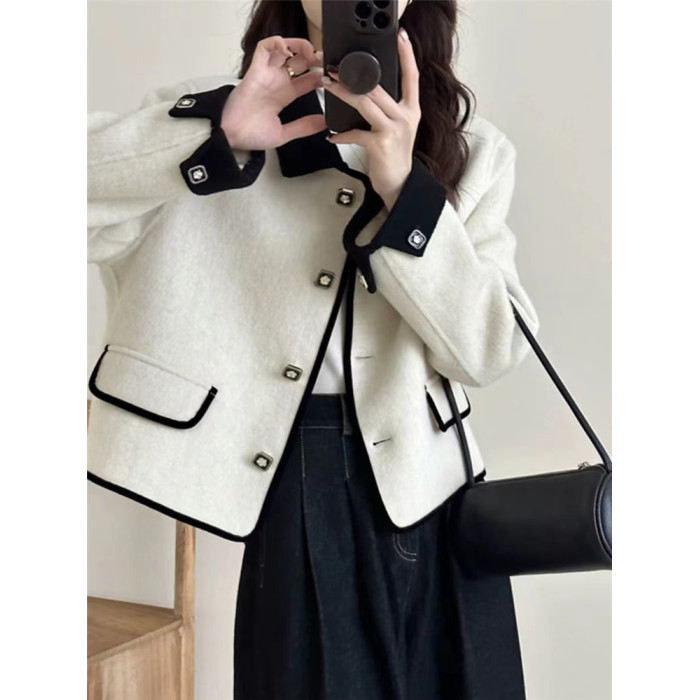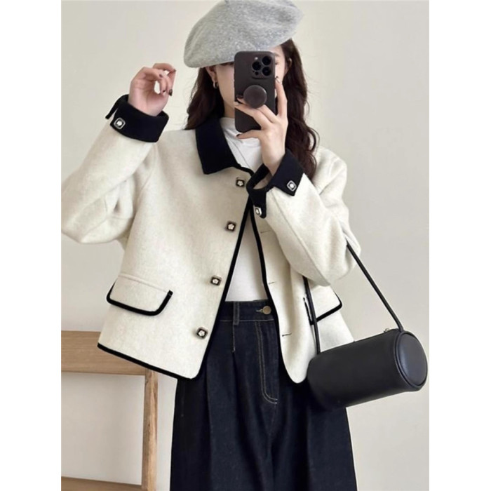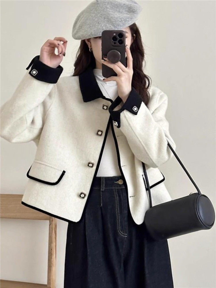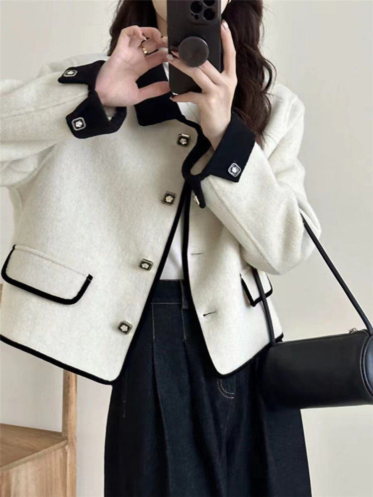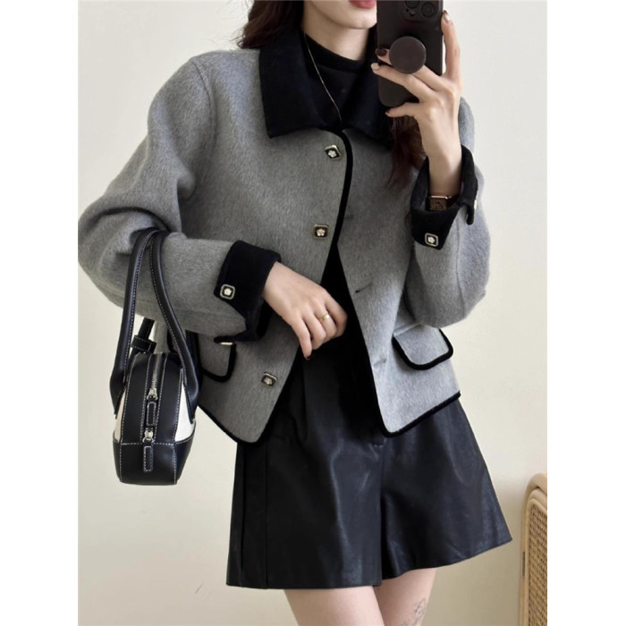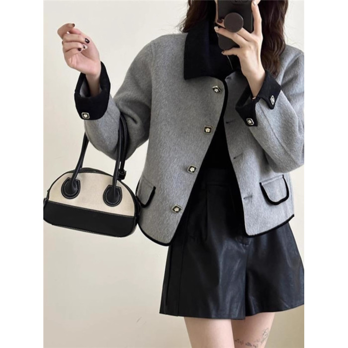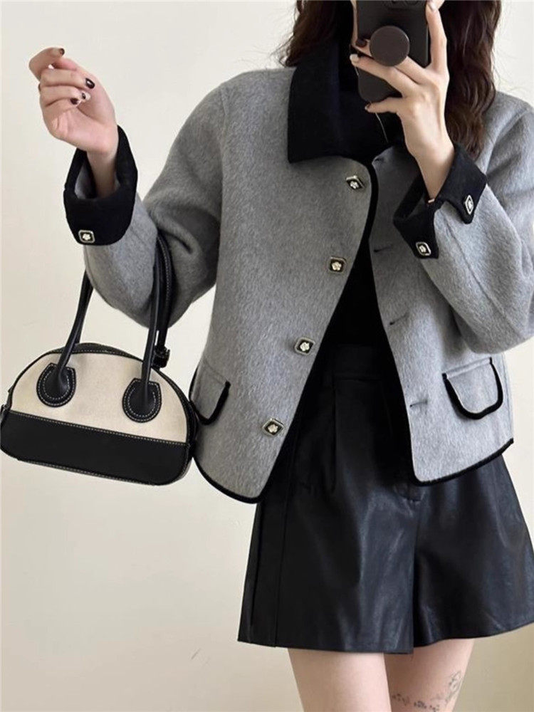 灰色小香風毛呢外套女短款翻領2025秋冬新款小個子高級感開衫上衣