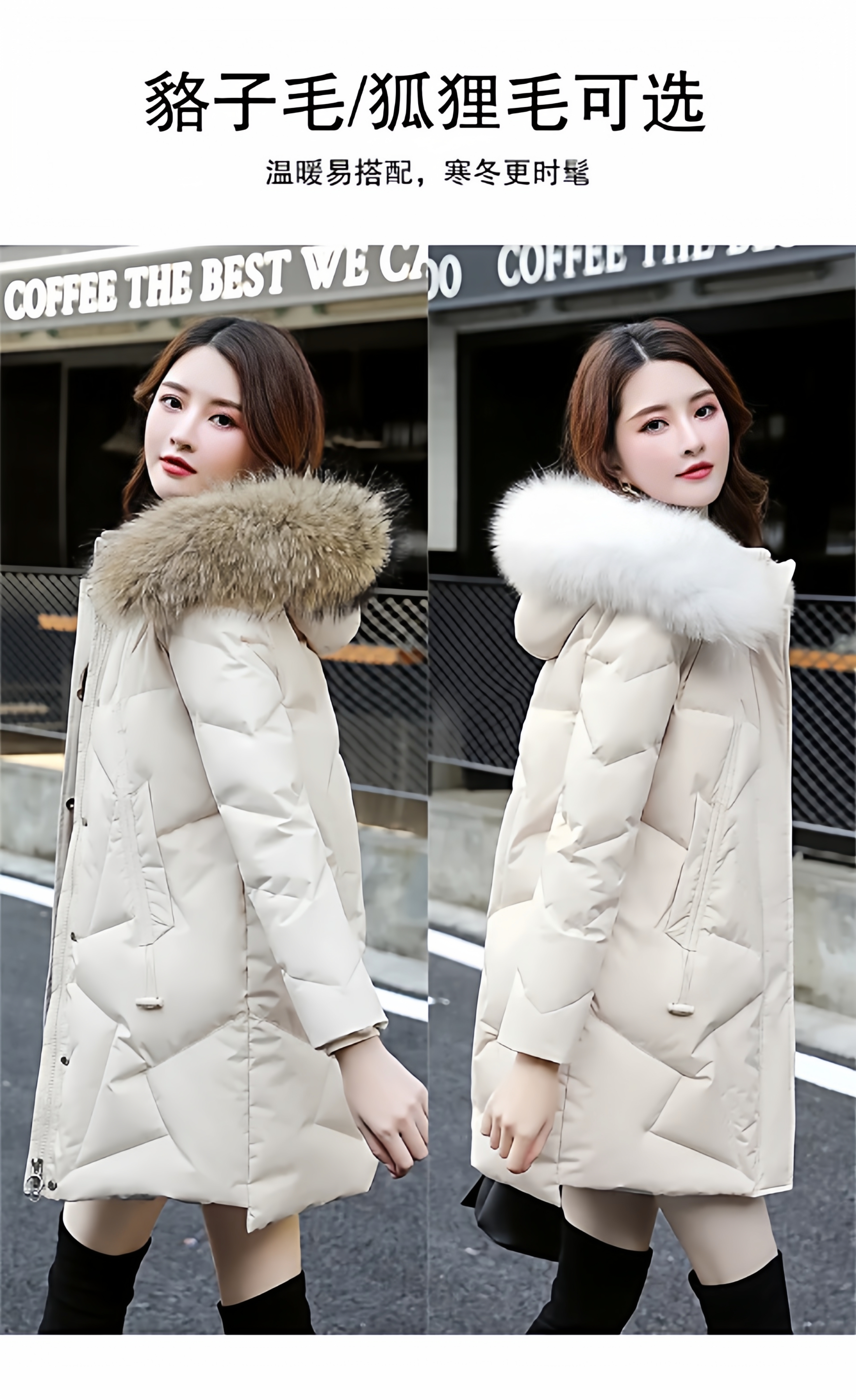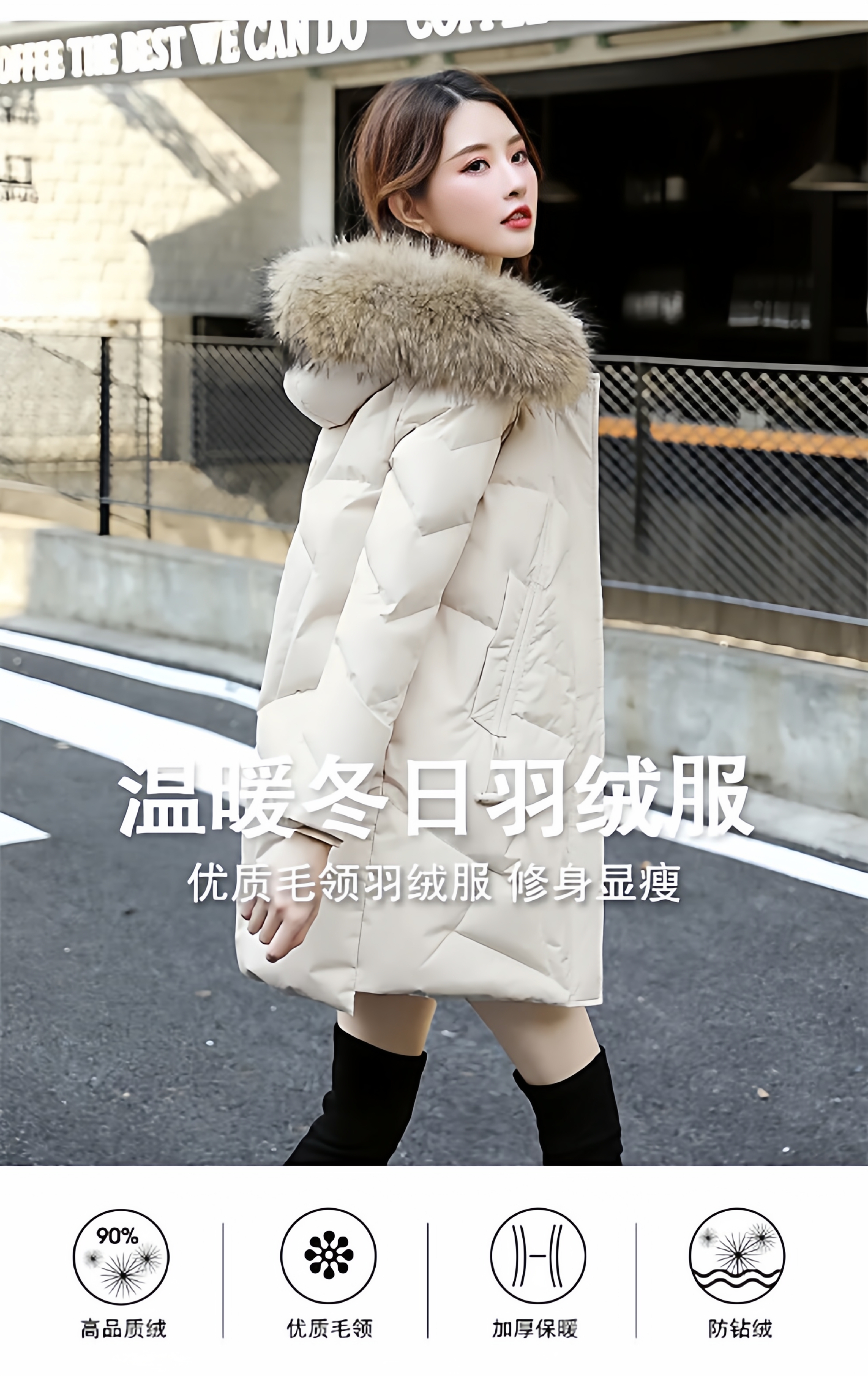 雅鹿官方旗艦店羽絨服女中長款白鴨絨高級時尚氣質加厚外套真毛領