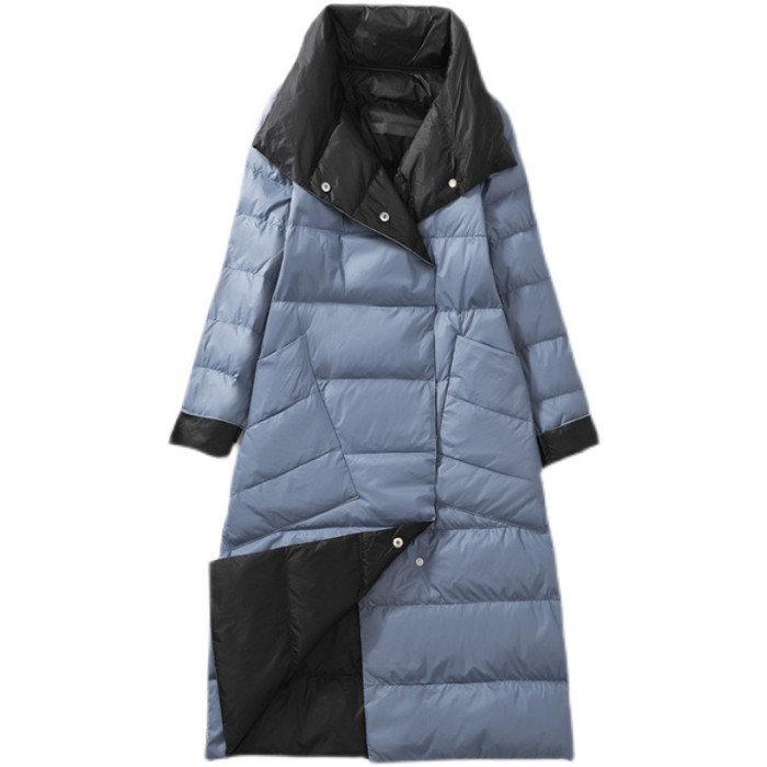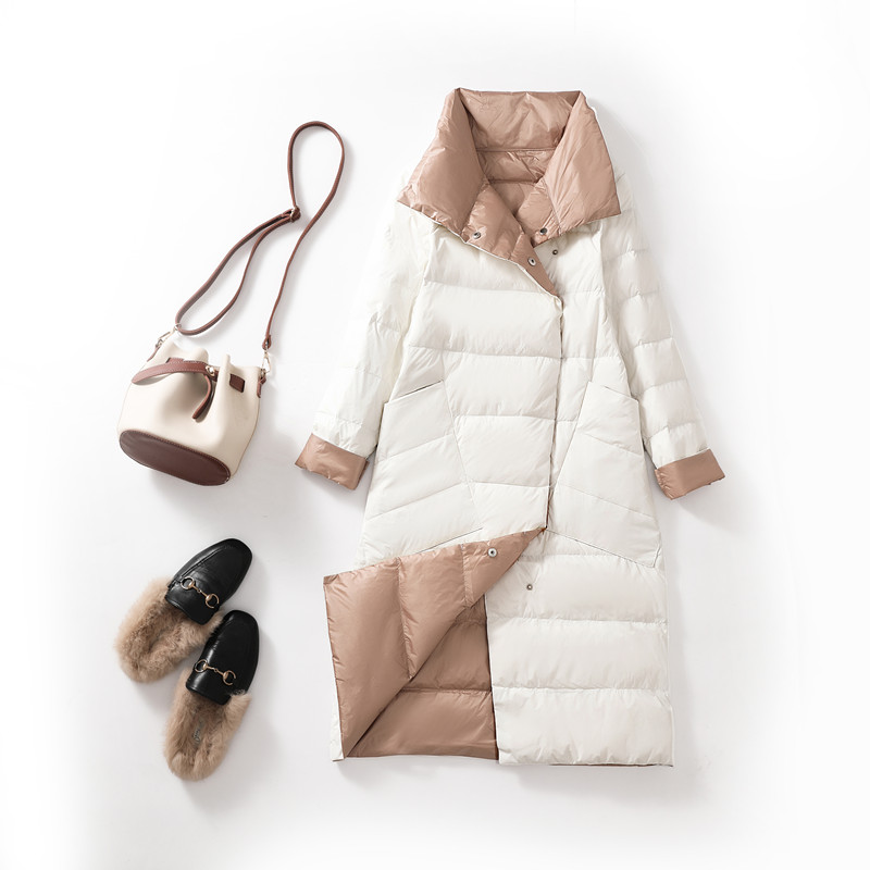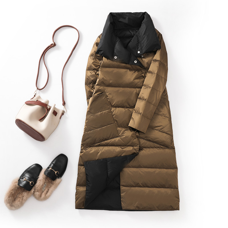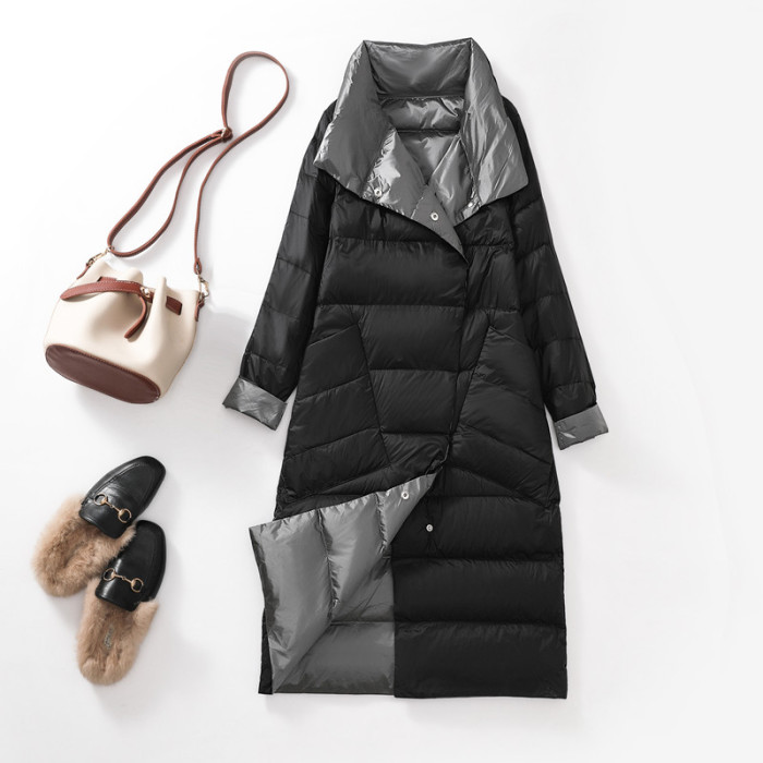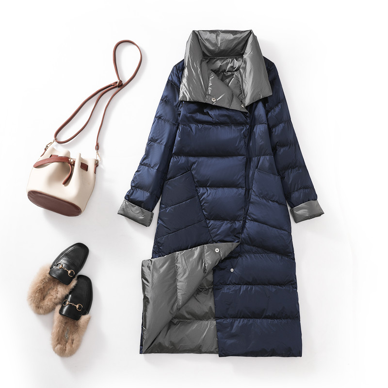 冬兩面穿輕薄羽絨服女中長款過膝白鴨絨反季大碼媽媽中老年雙面穿
