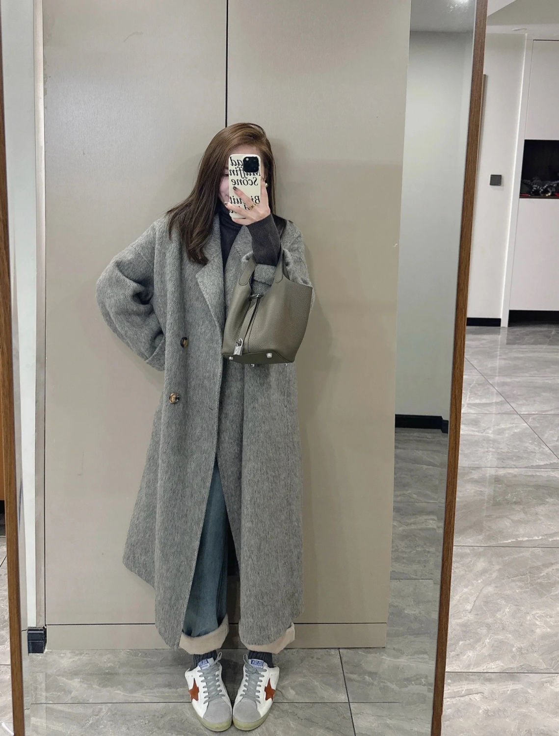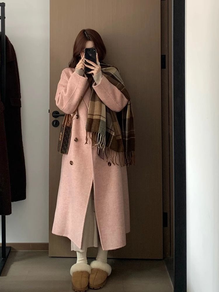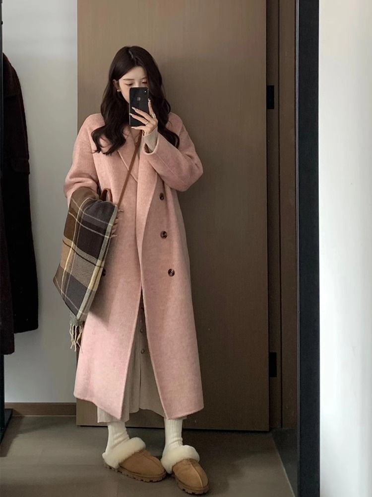 燕麥羽絨服內膽呢子大衣女2025新款秋冬韓系小個子中長款毛呢外套