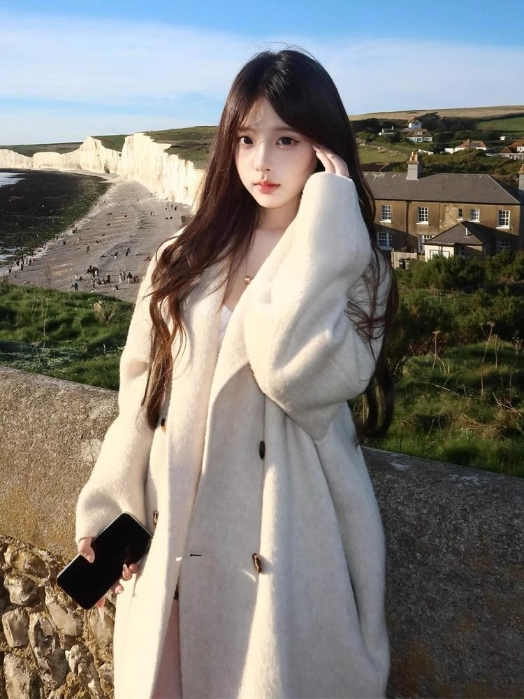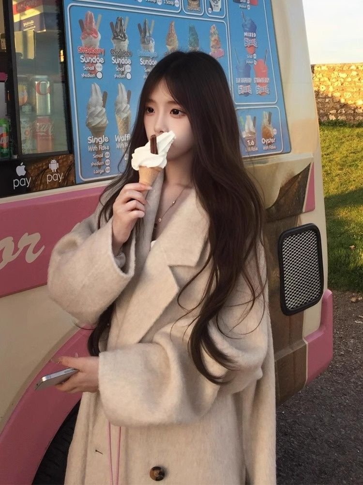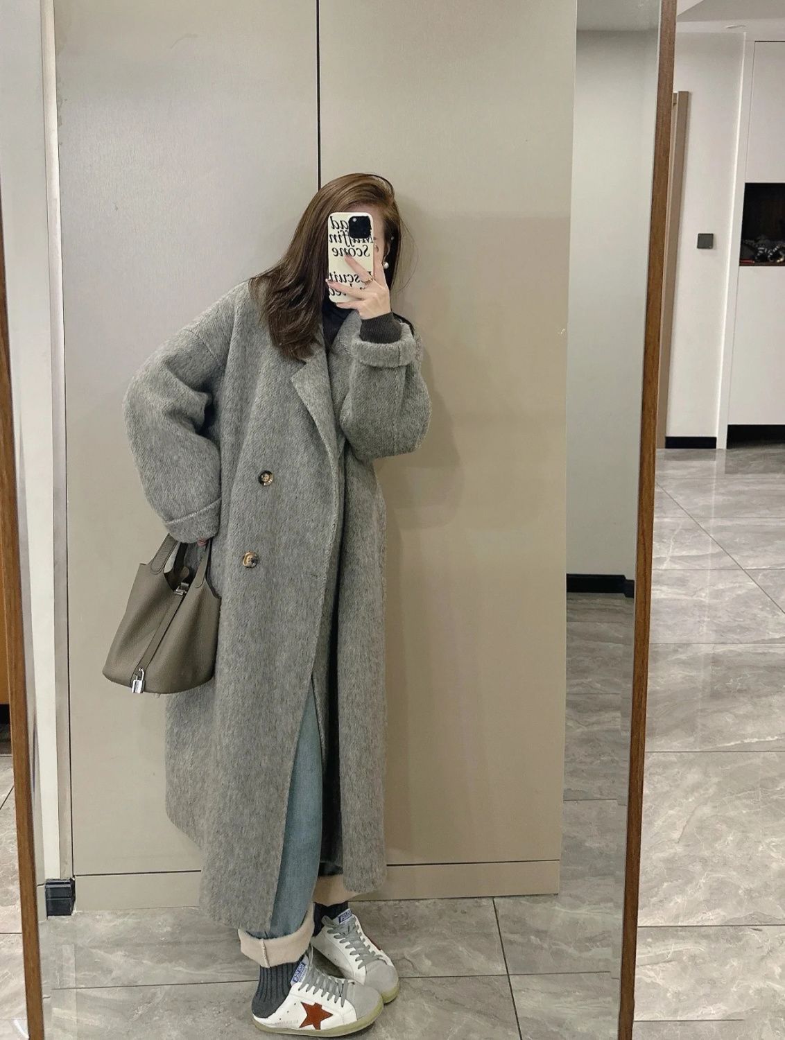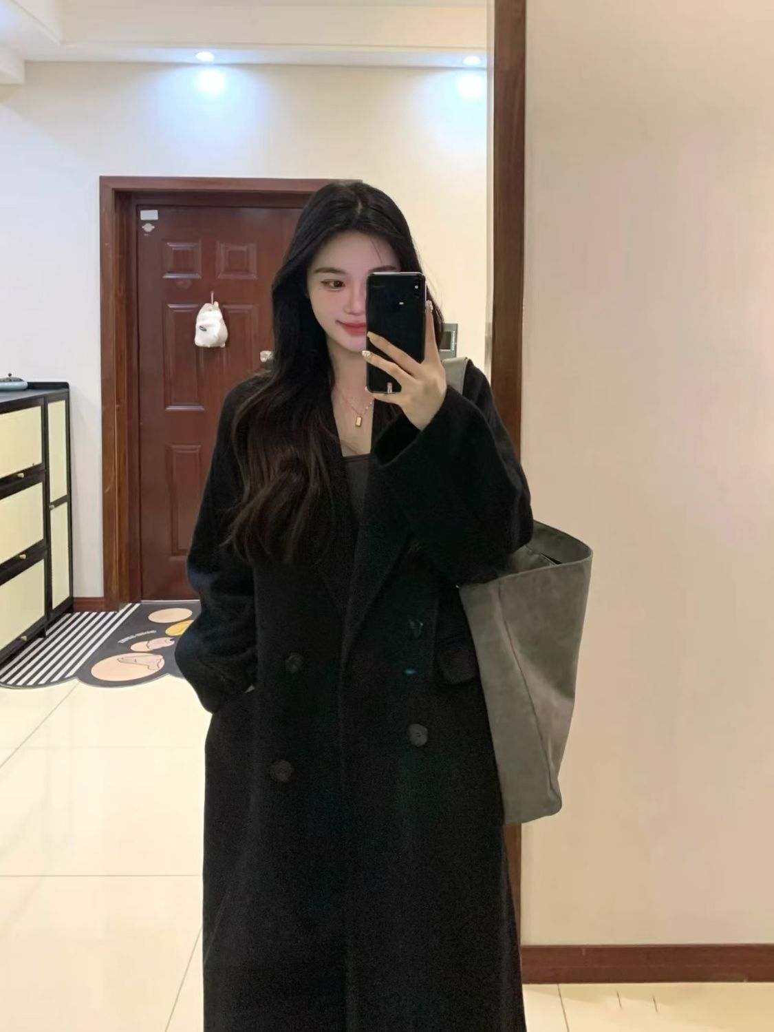 燕麥羽絨服內膽呢子大衣女2025新款秋冬韓系小個子中長款毛呢外套
