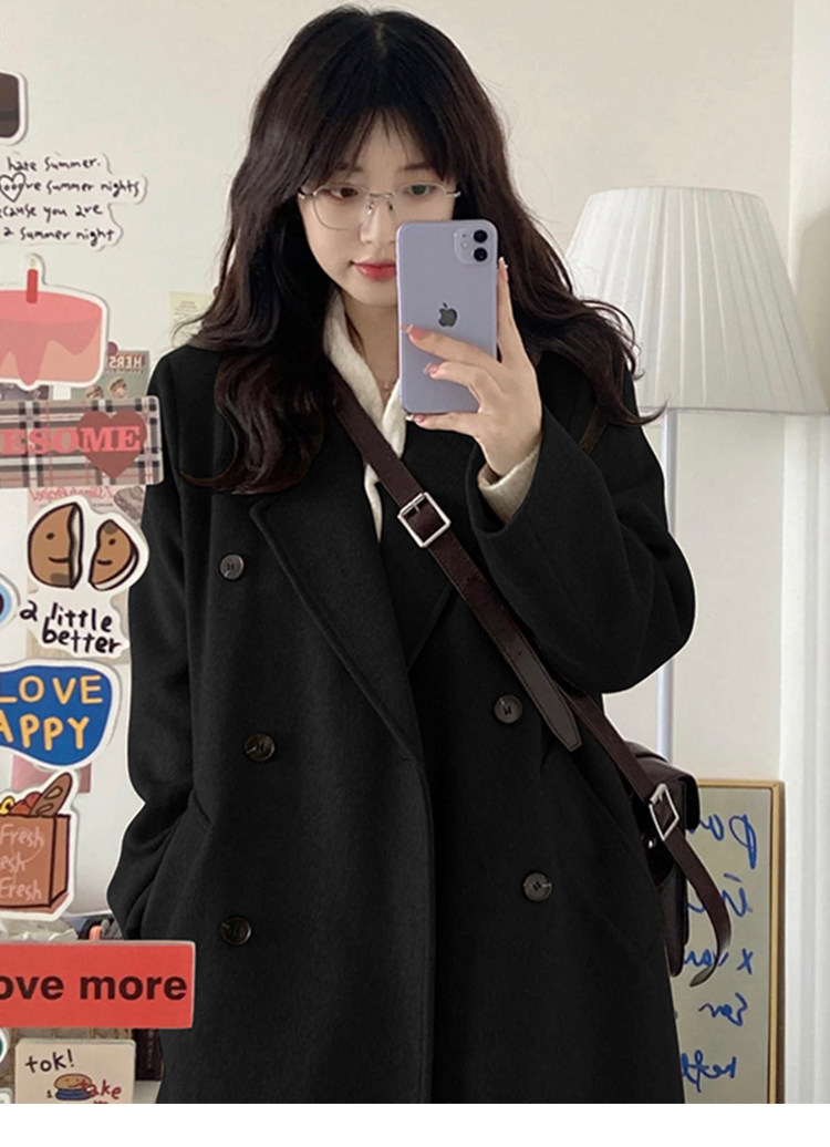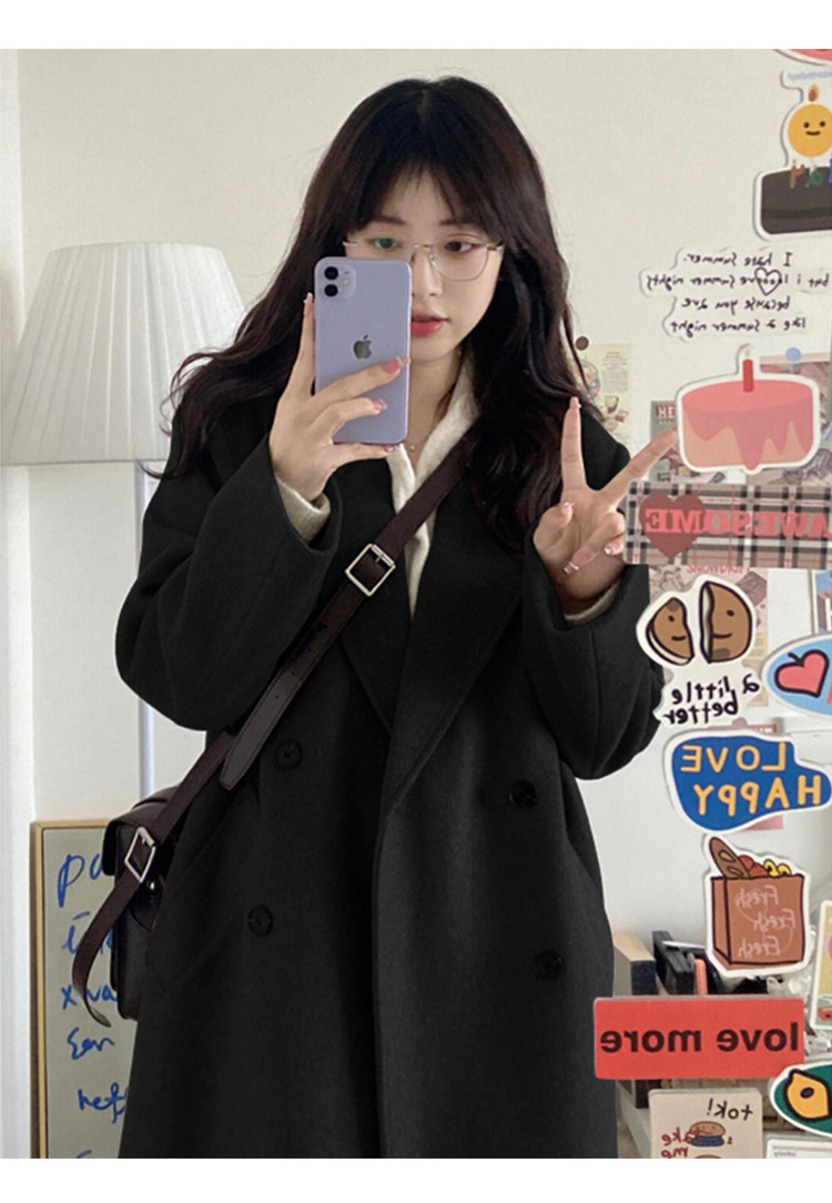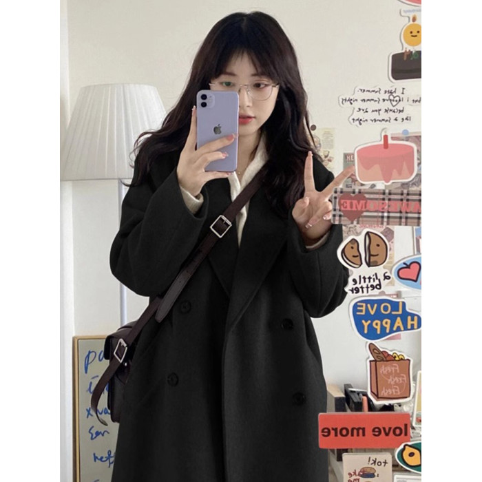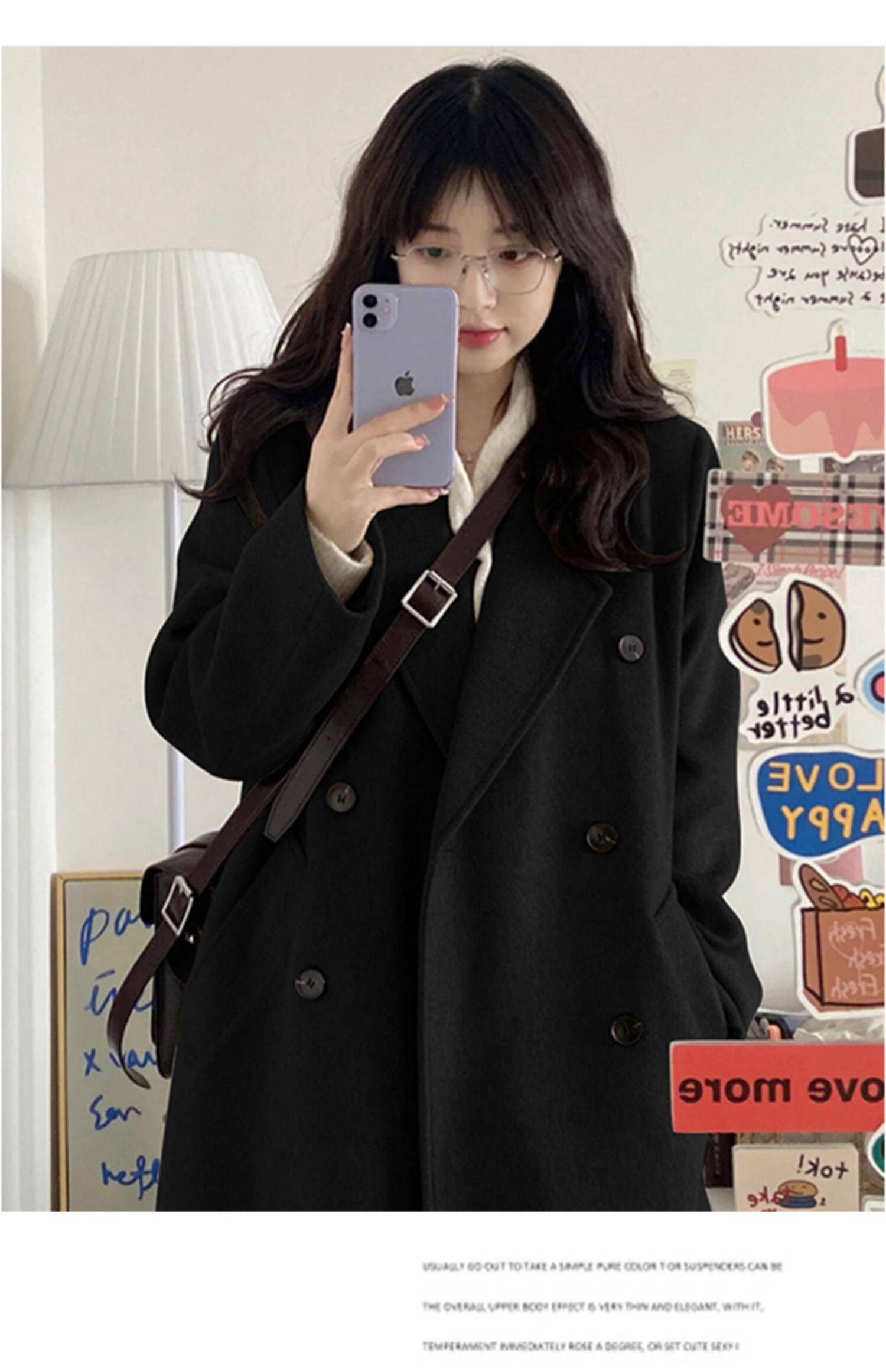 高級感黑色毛呢外套女冬季2025新款韓系小個子中長款呢子大衣加厚