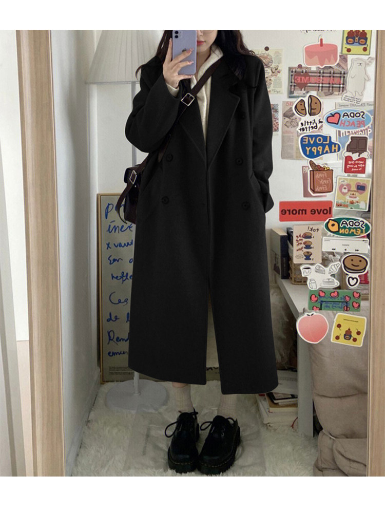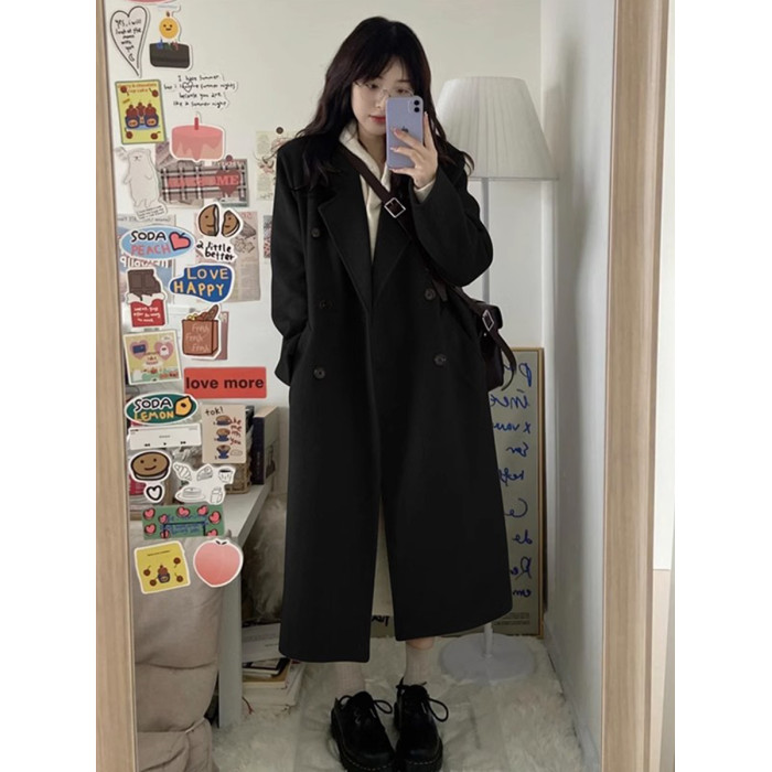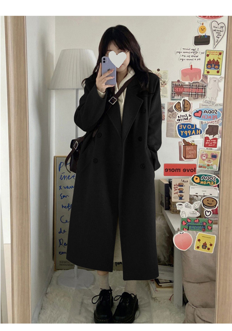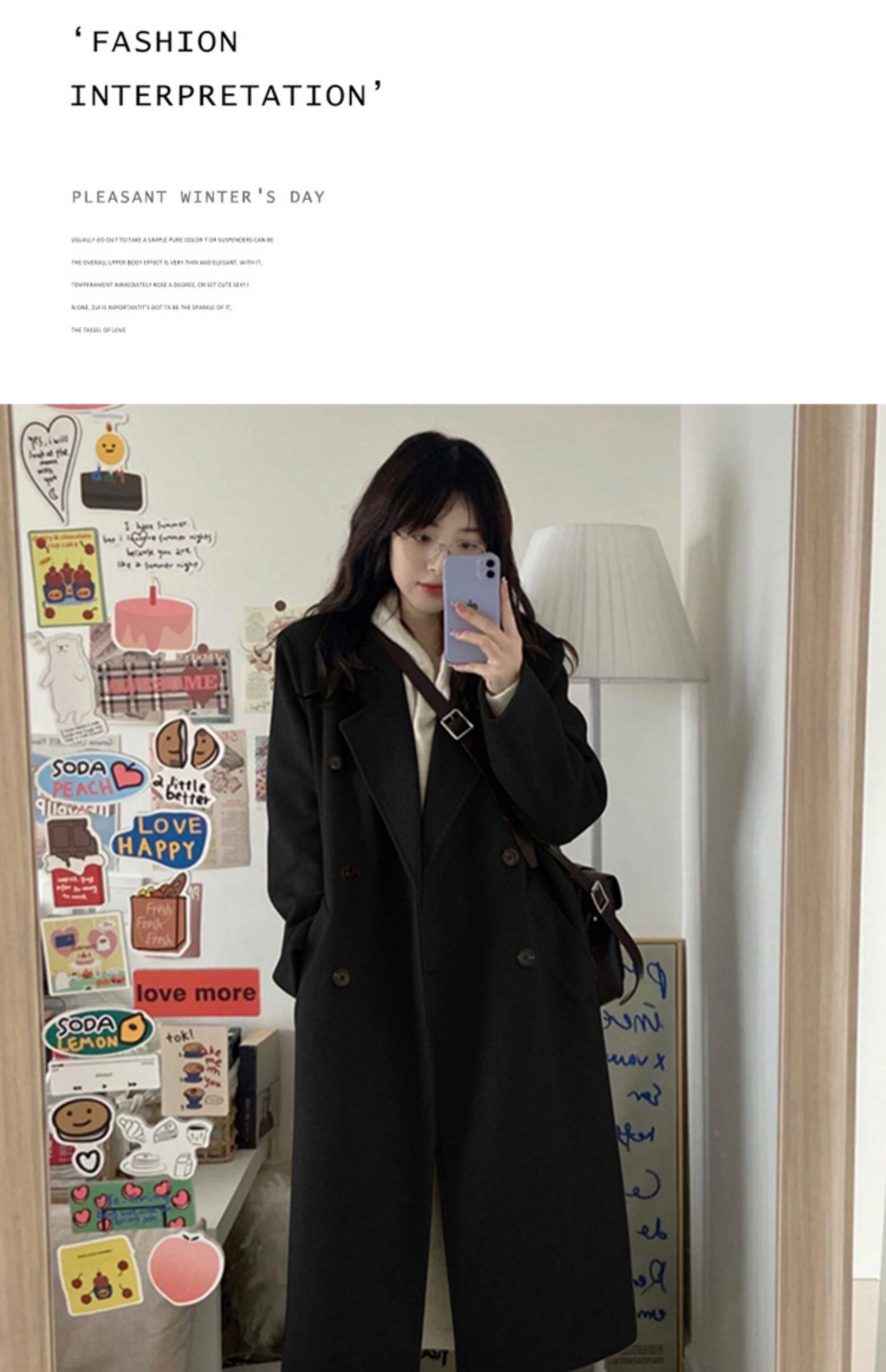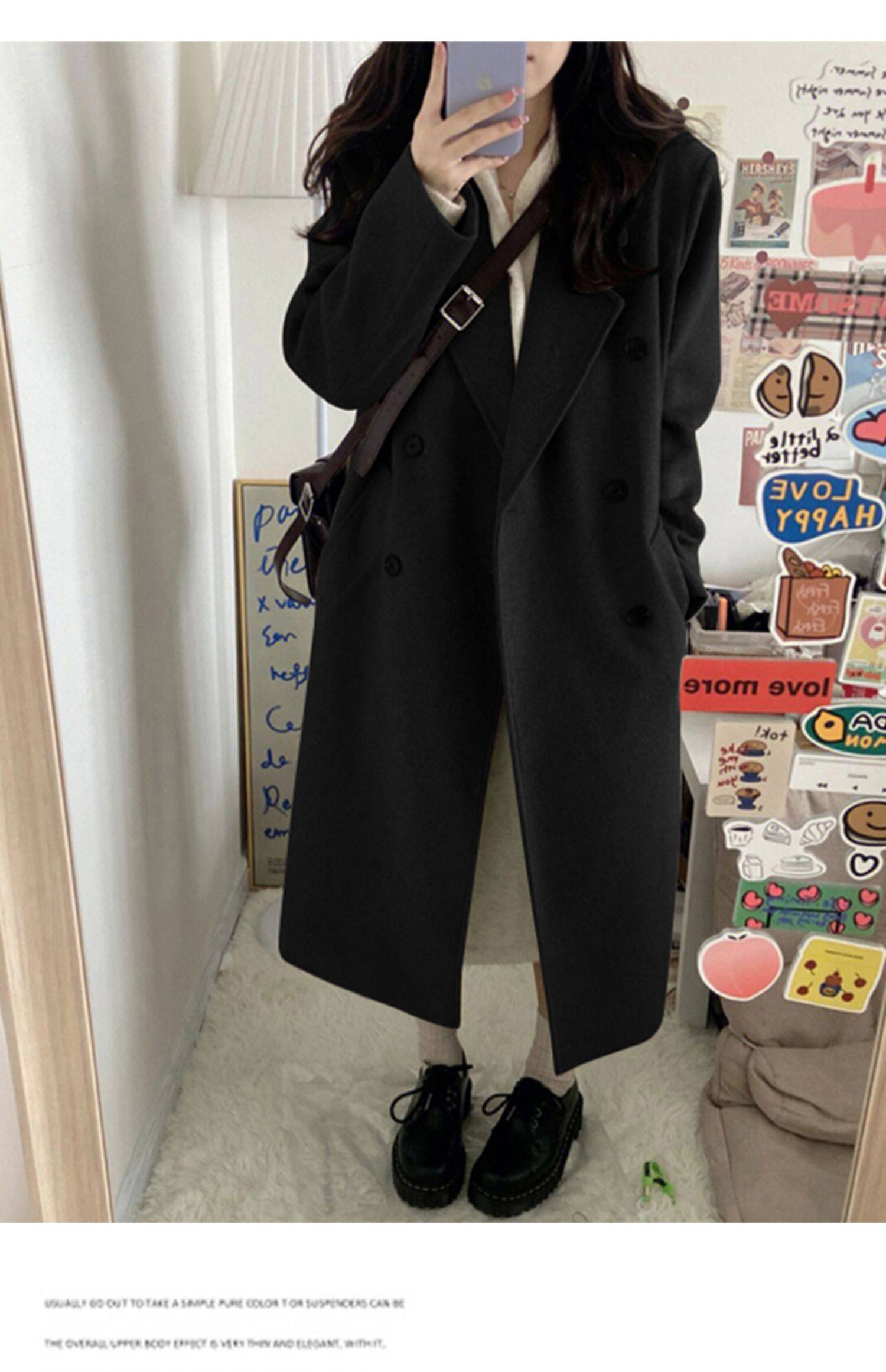 高級感黑色毛呢外套女冬季2025新款韓系小個子中長款呢子大衣加厚