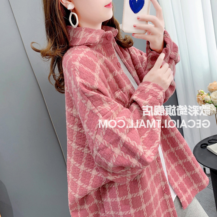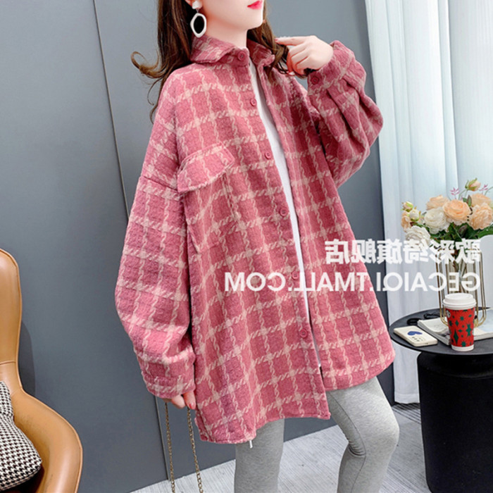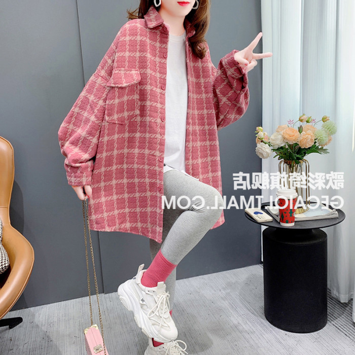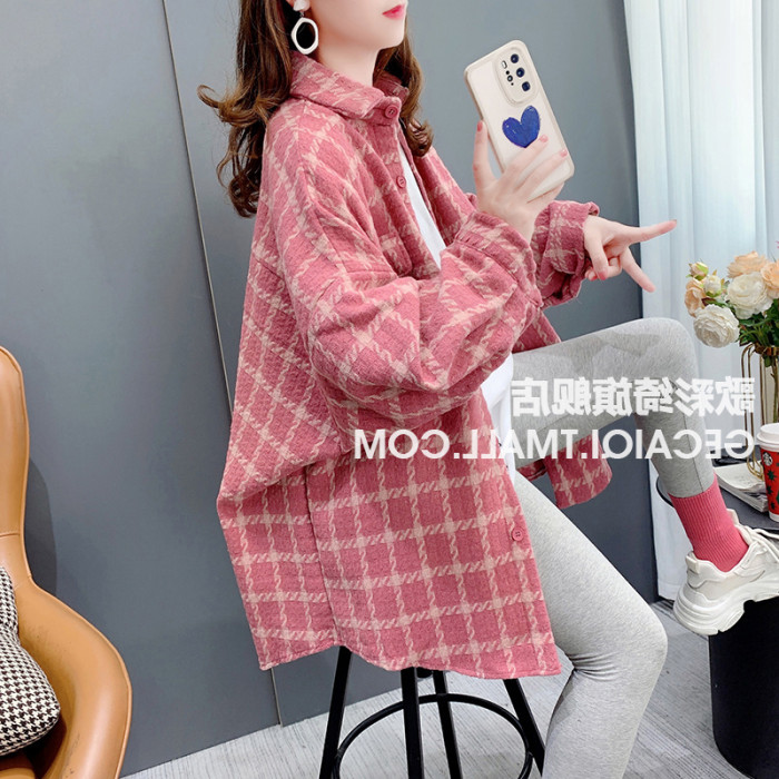 大碼女裝中長款襯衫2025年春秋季新款設計感小衆開衫格子上衣外套