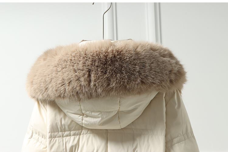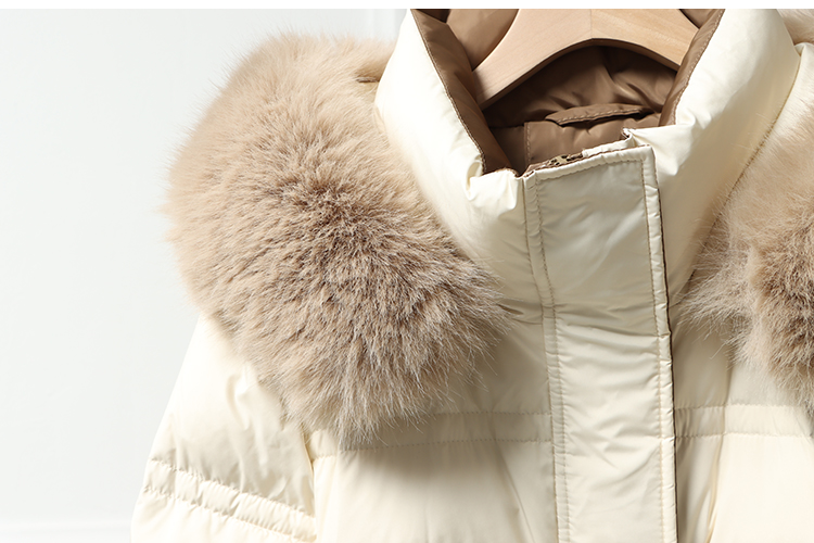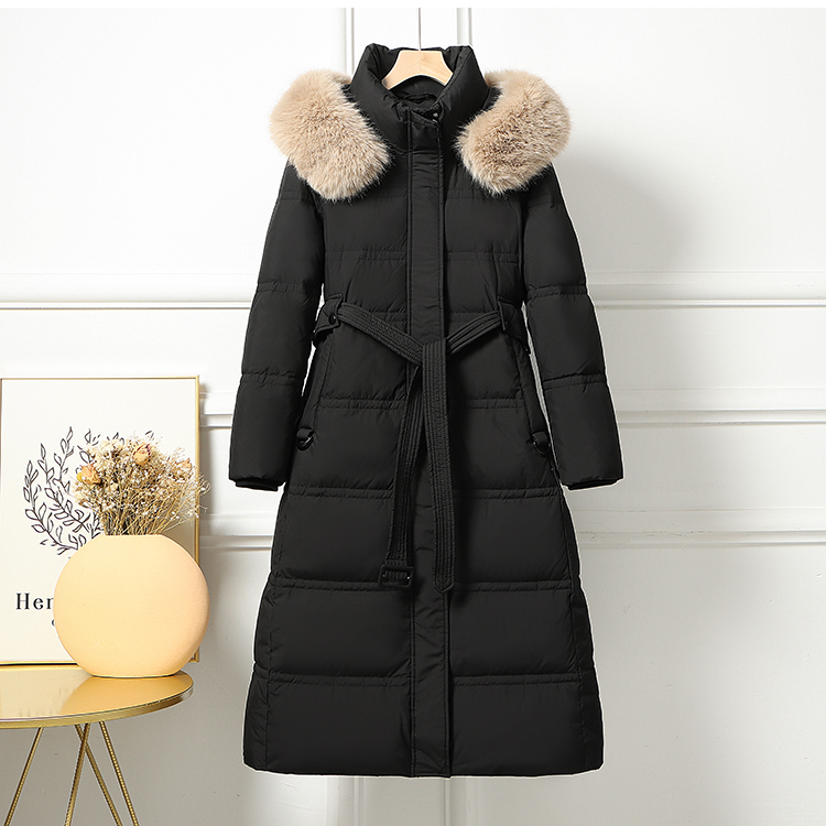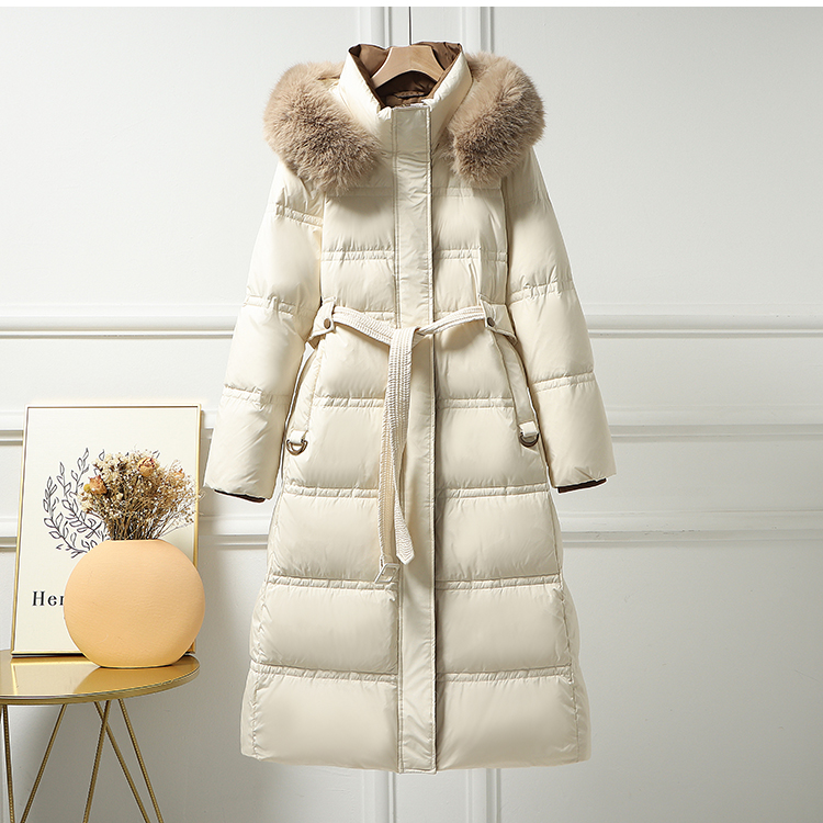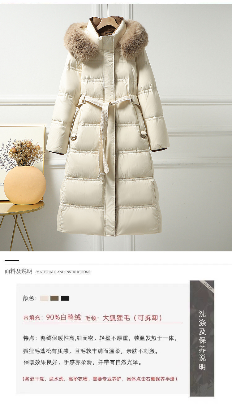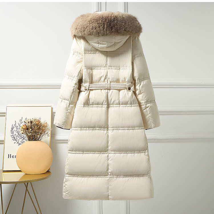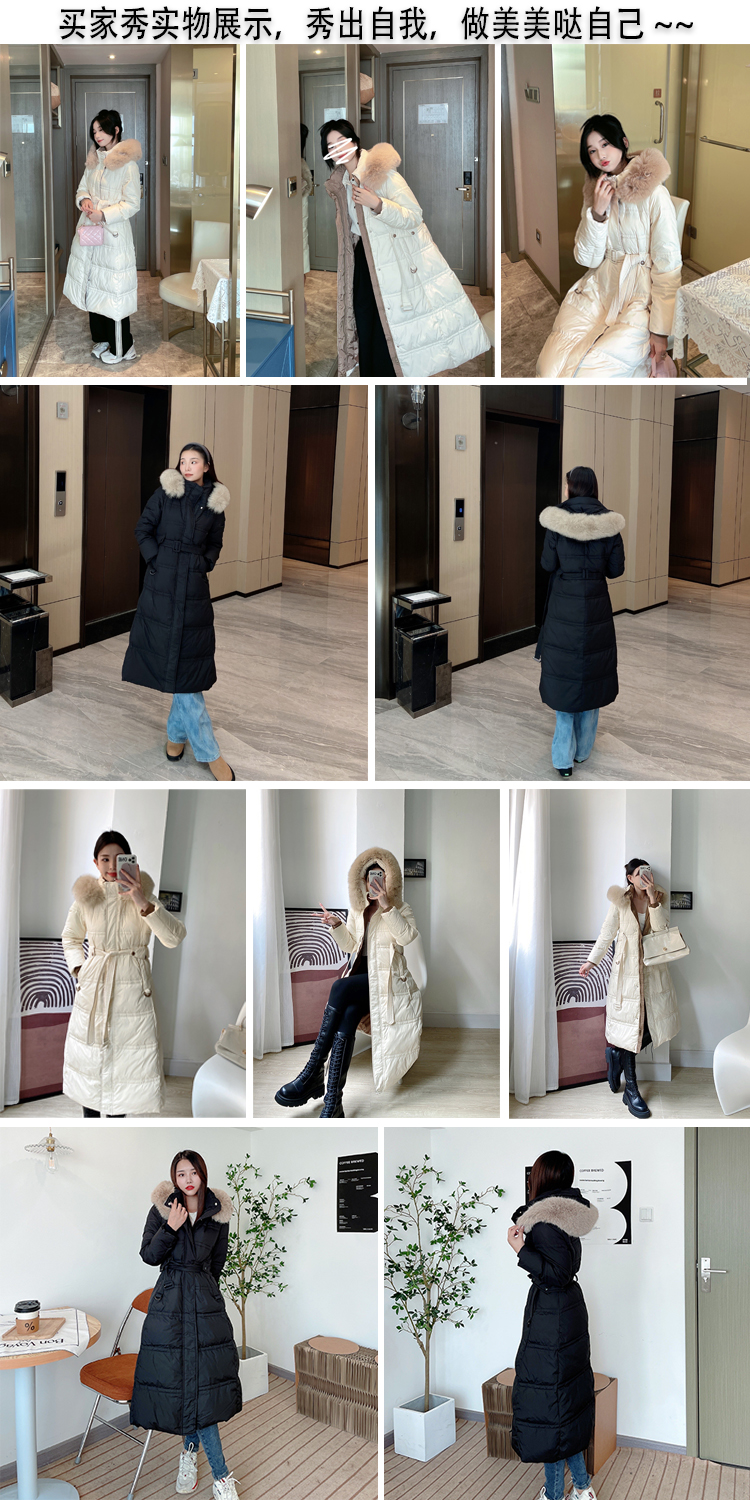 真狐狸毛領羽絨服女2025年爆款新款收腰顯瘦中長款過膝白鴨絨外套