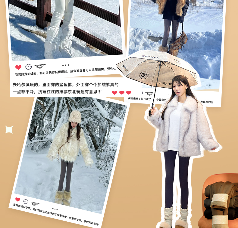 東北抗寒保暖穿搭2025新款鯊魚褲提臀打底羽絨服女款漠河零下40度
