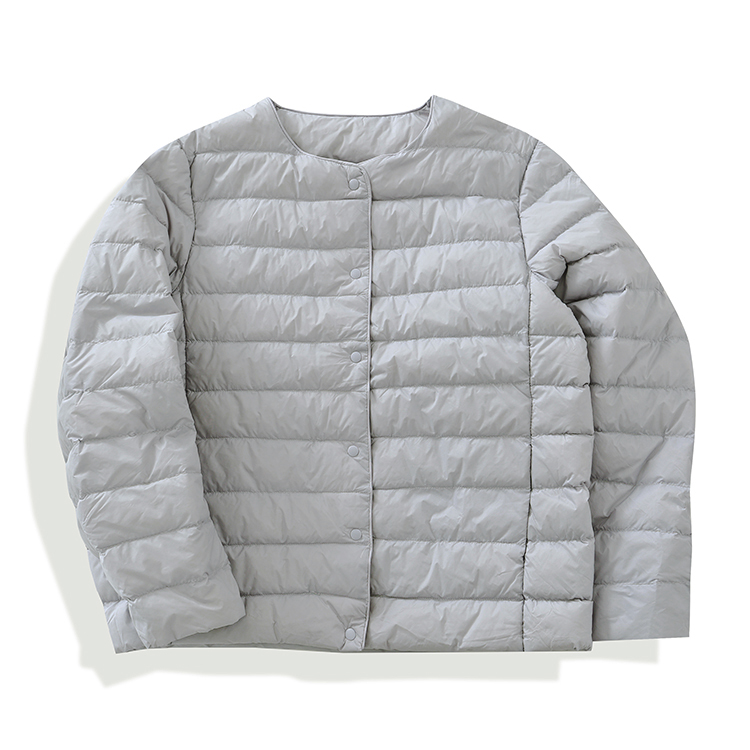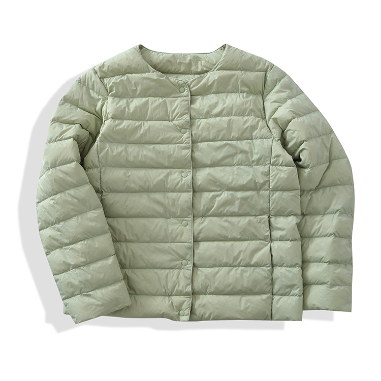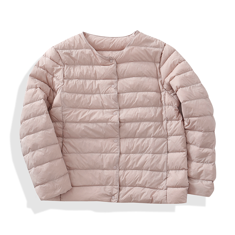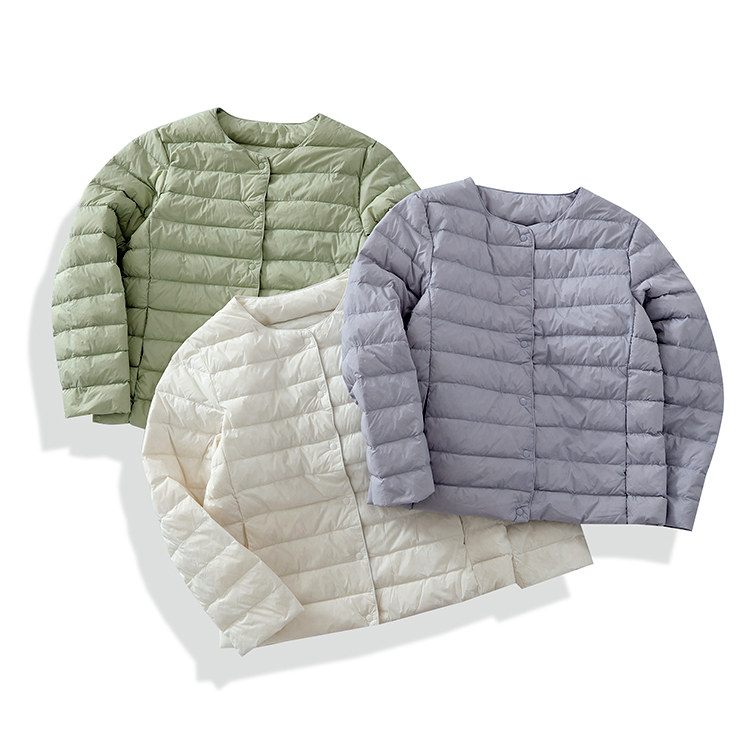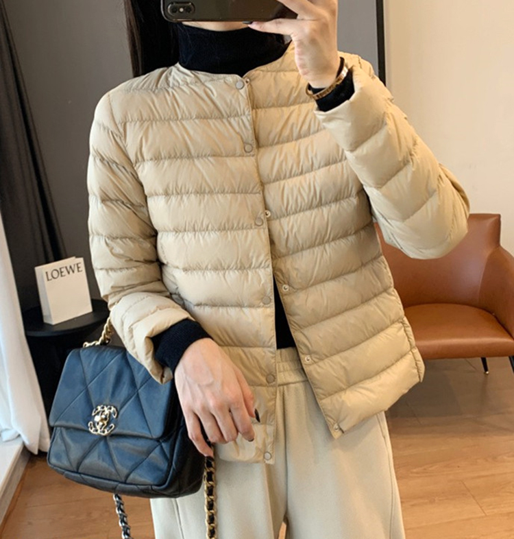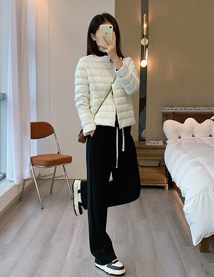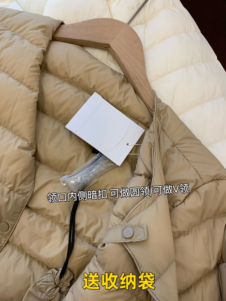 原單 高級輕薄圓領羽絨服女輕型無領內膽白鴨絨可攜式保暖外套