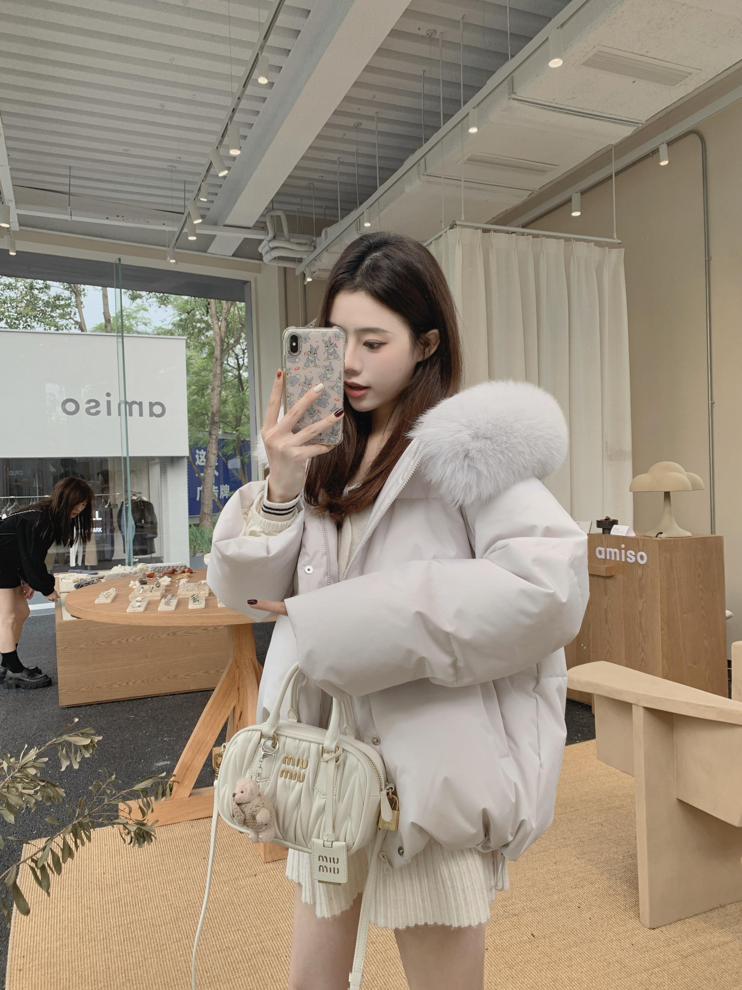 粉色羽絨服女冬季2025新款韓版寬松加厚保暖大毛領麵包服外套女款