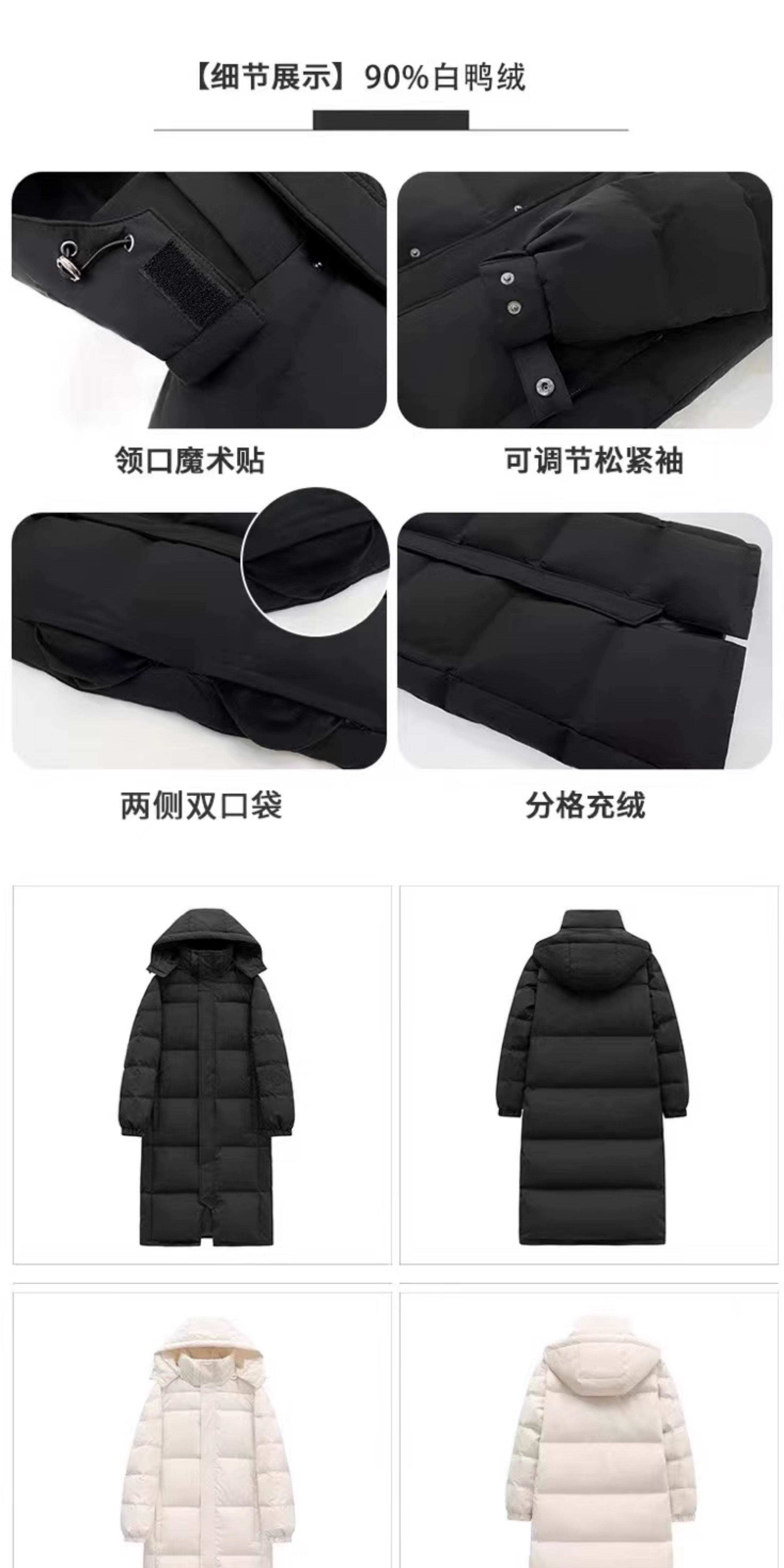 2025新款中戯同款羽絨服男女情侶長款過膝反季白鴨絨寬松爆款校服